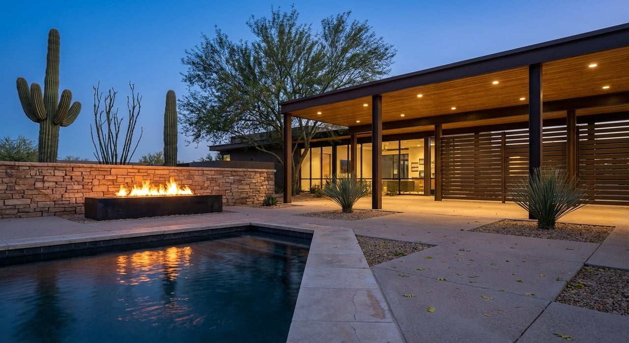 Surrounded by desert on a 1.2-acre parcel with compelling views of the mountains and sunset--yet close to the city center and abundant amenities. 5445 N Yvon Heights Place is tucked away in a small, gated enclave of only 12 homes that blends modern living with surrounding historic charm. With ope...