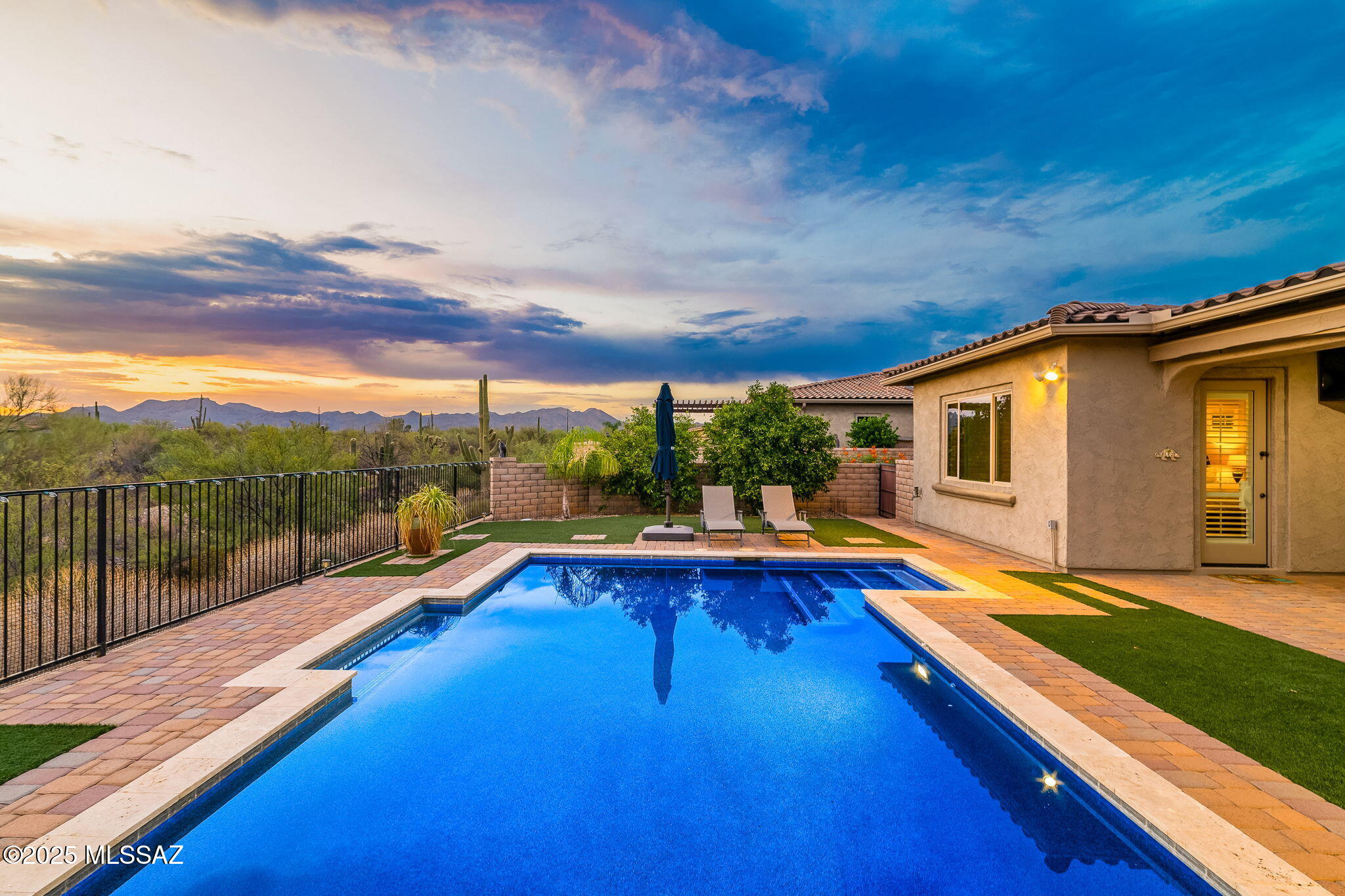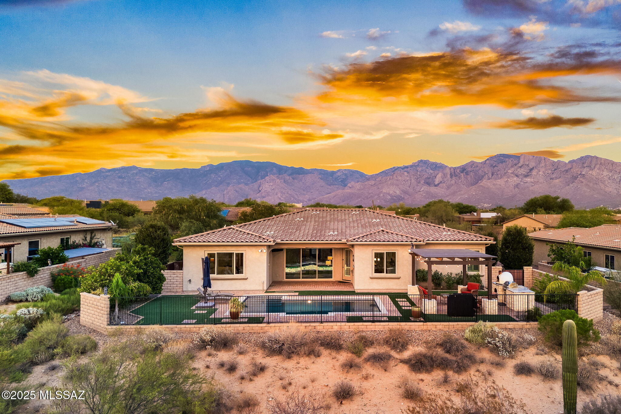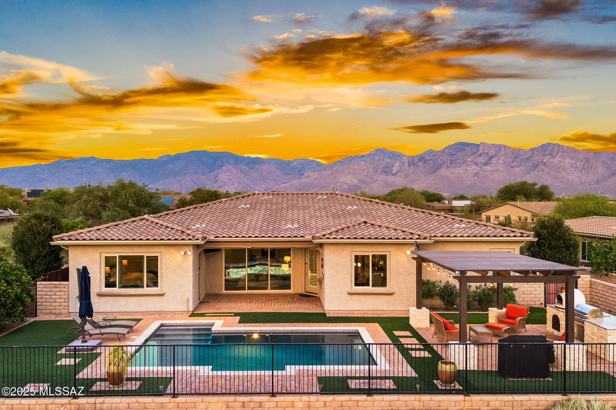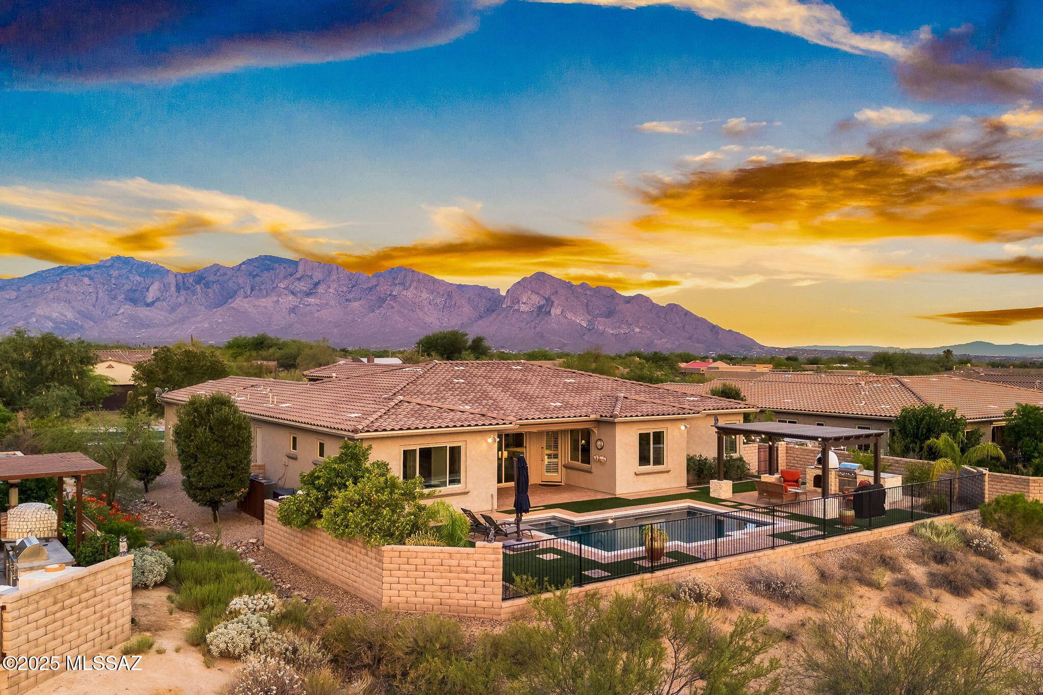 Inside the small, gated community of Rancho Del Colbre in Oro Valley, a turn-key home awaits at 11767 N Luzon Court. This enclave was thoughtfully designed with larger lots for more space & privacy, while maintaining a neighborhood feel. Sitting on a 1/2 acre, the home backs up to open space, showcasing stunning sunsets and views of both the Tucson & Tortolita Mountains. Many upgraded features were included in the 2015 build, yet the property was enhanced with additional improvements following construction. With 3,526 sq ft, there is ample space to spread out in a well-designed split floor plan that includes 4 bedrooms, 3 1/2 bathrooms, and a separate den.
