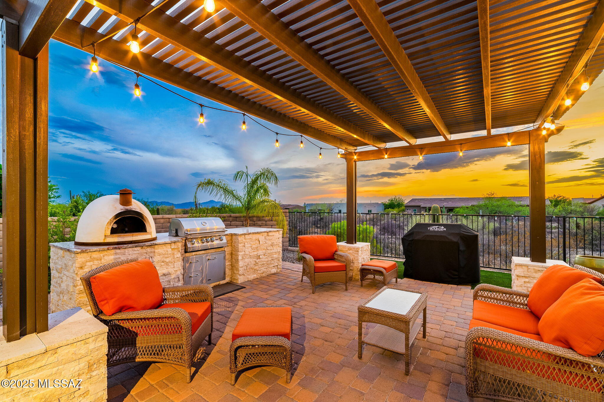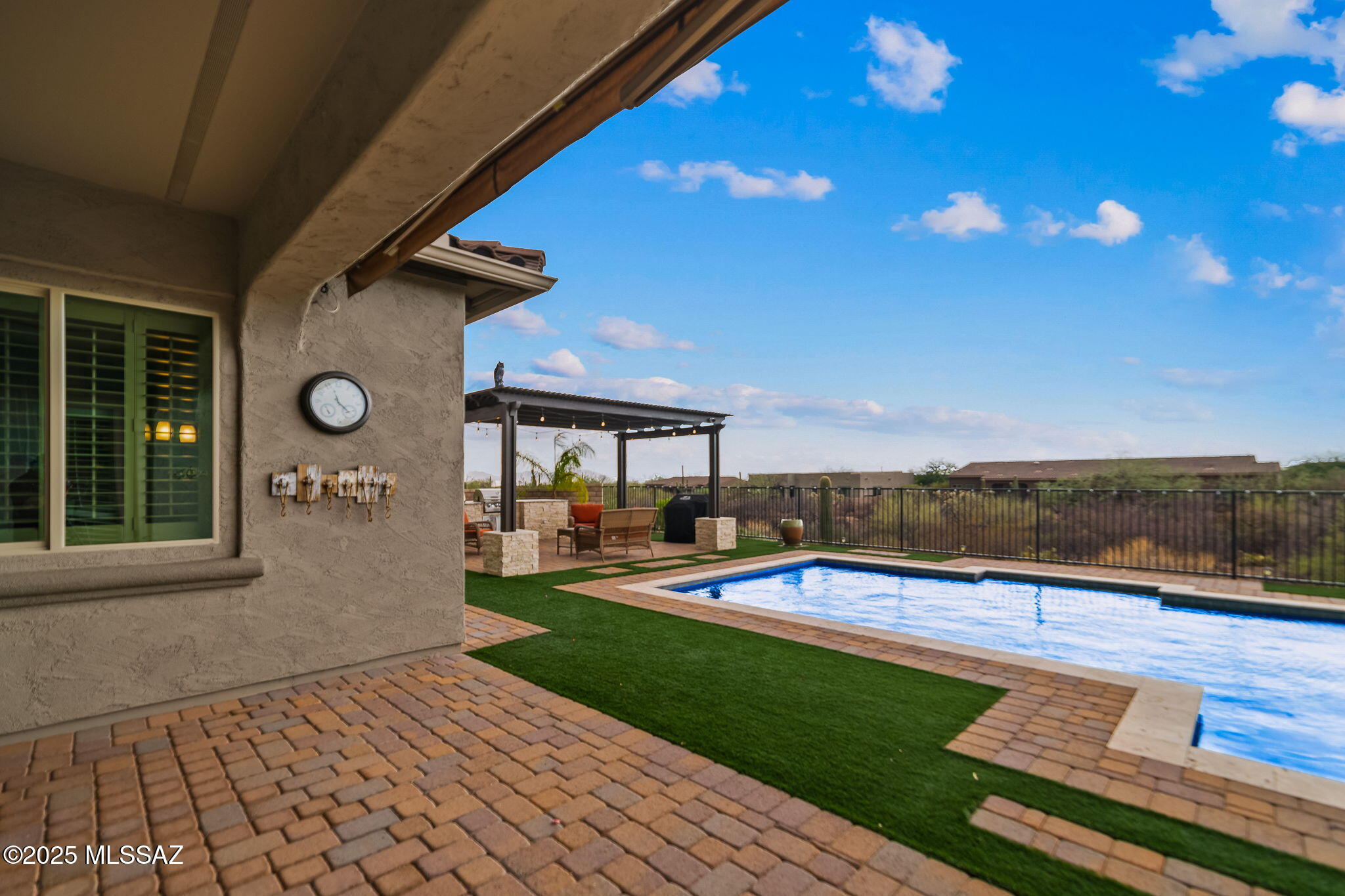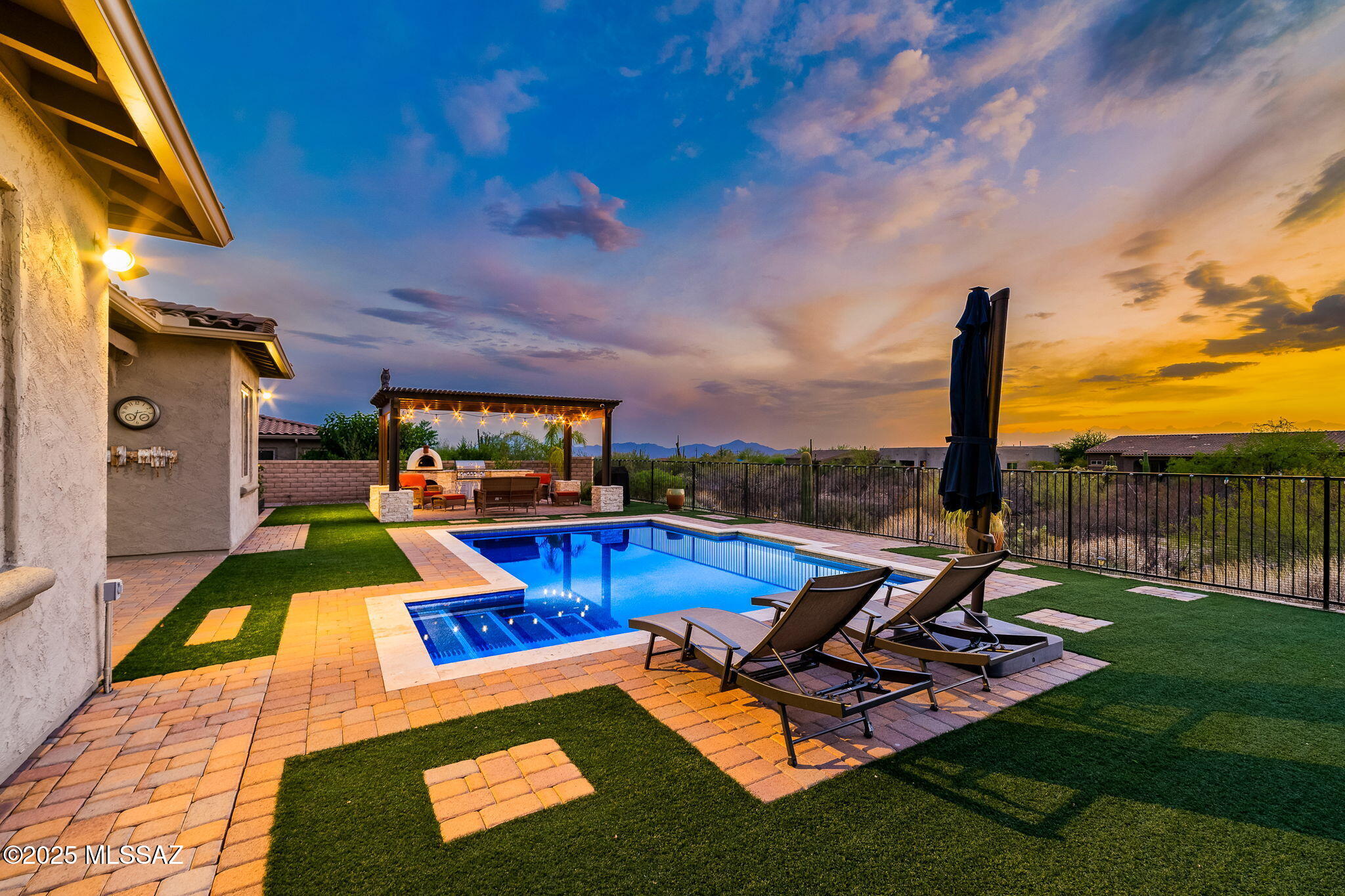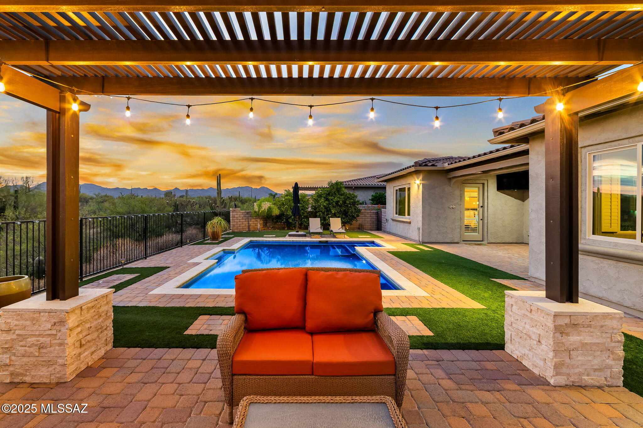 Inside the small, gated community of Rancho Del Colbre in Oro Valley, a turn-key home awaits at 11767 N Luzon Court. This enclave was thoughtfully designed with larger lots for more space & privacy, while maintaining a neighborhood feel. Sitting on a 1/2 acre, the home backs up to open space, showcasing stunning sunsets and views of both the Tucson & Tortolita Mountains. Many upgraded features were included in the 2015 build, yet the property was enhanced with additional improvements following construction. With 3,526 sq ft, there is ample space to spread out in a well-designed split floor plan that includes 4 bedrooms, 3 1/2 bathrooms, and a separate den.