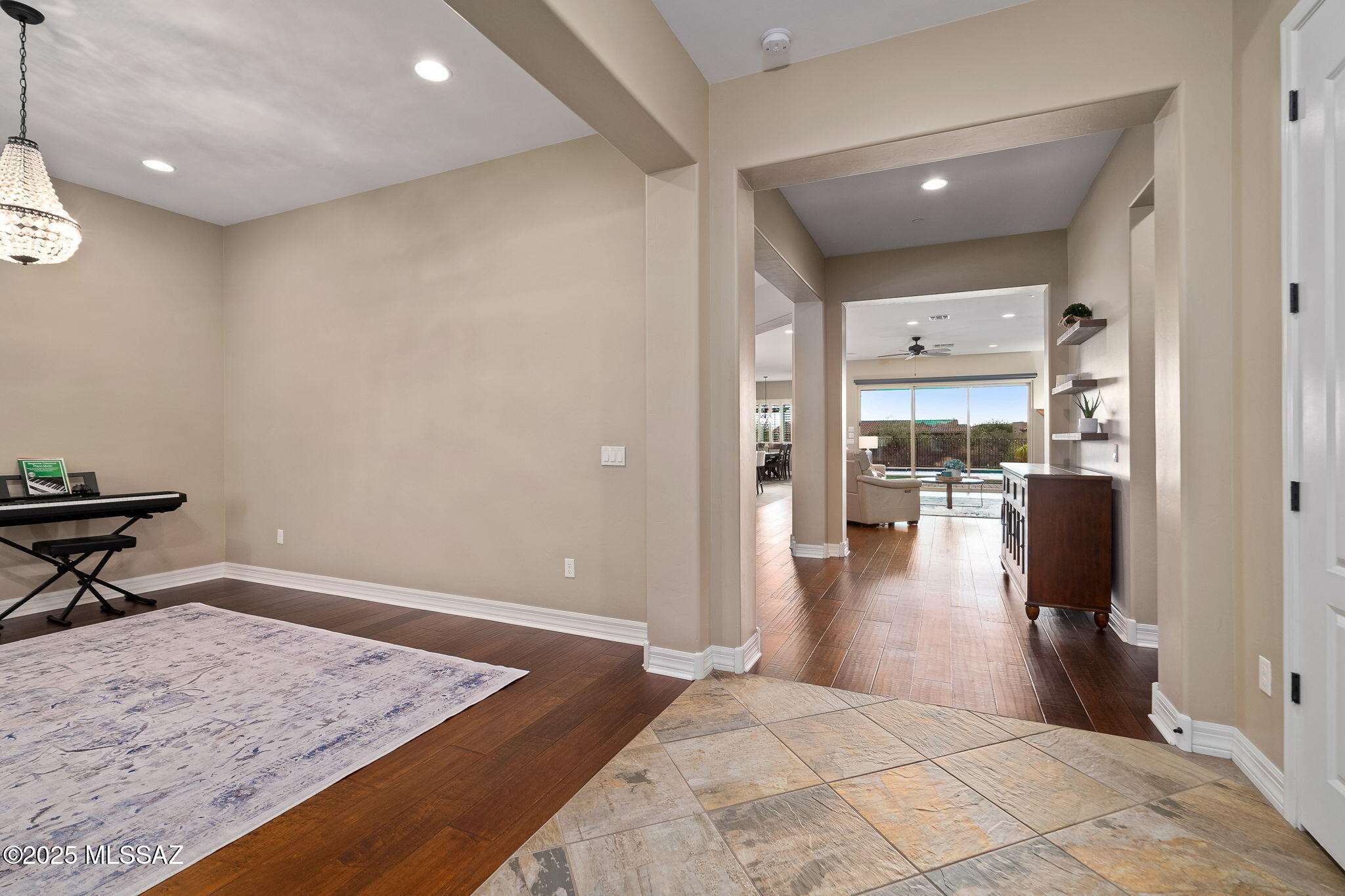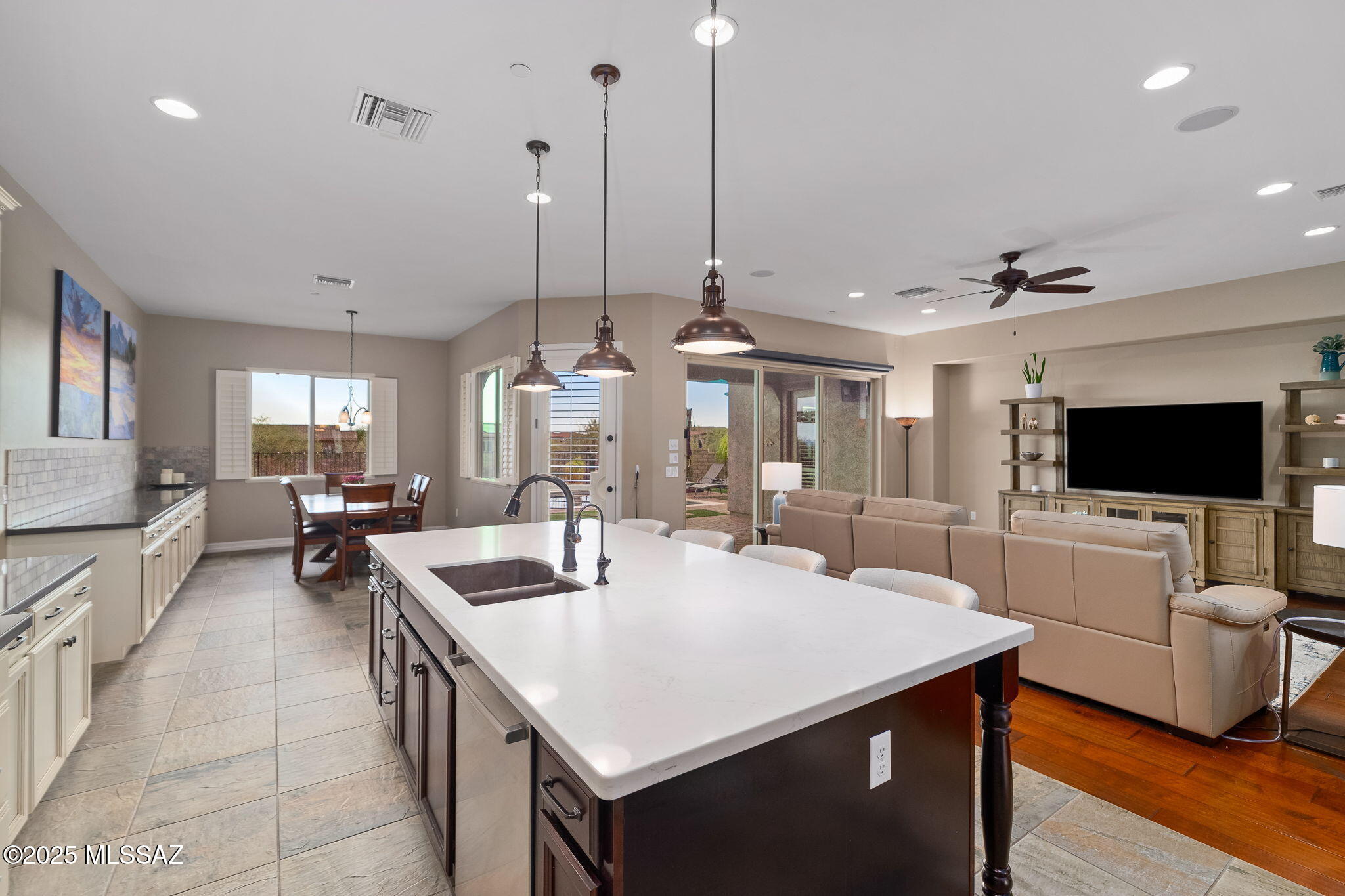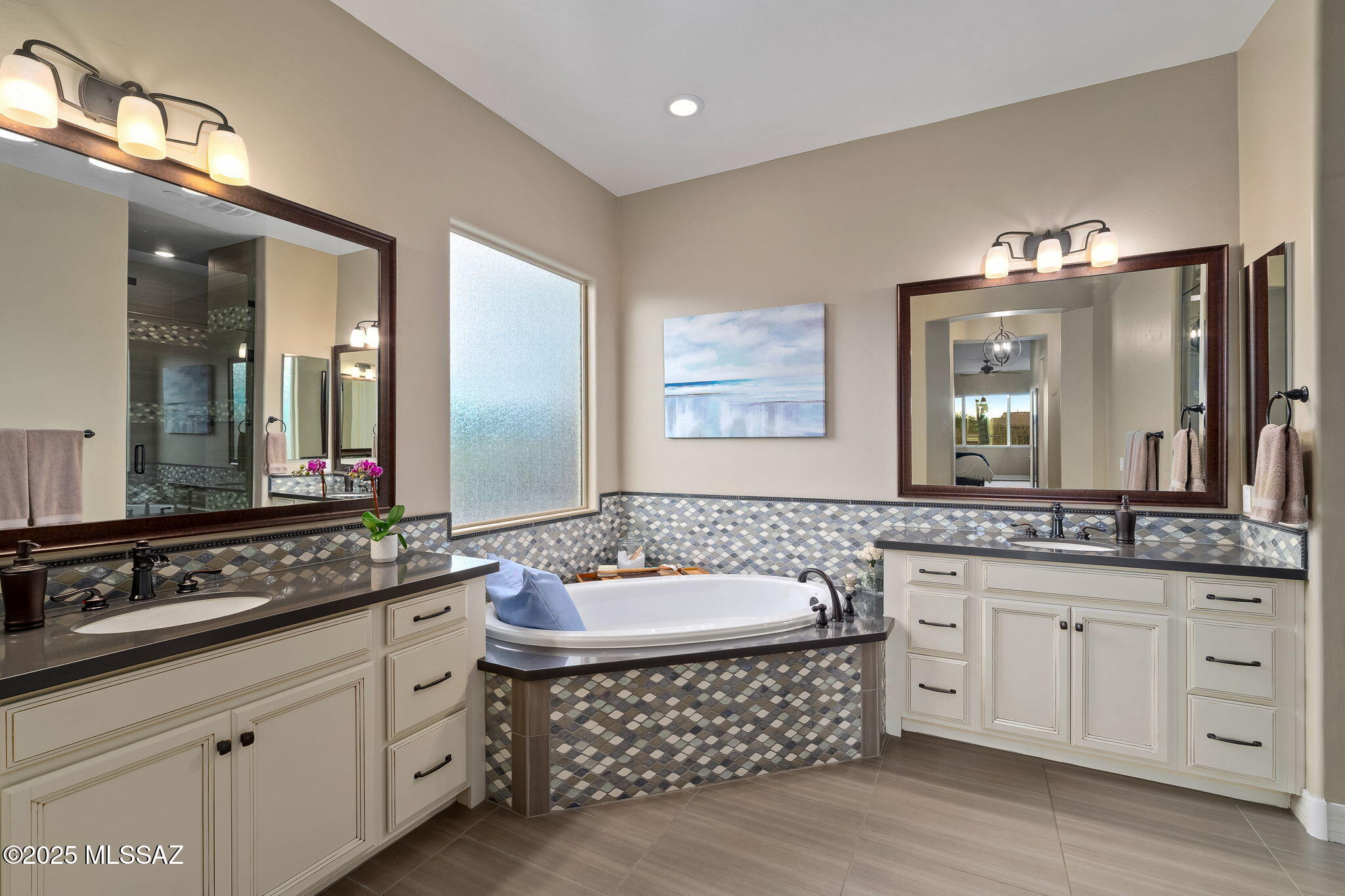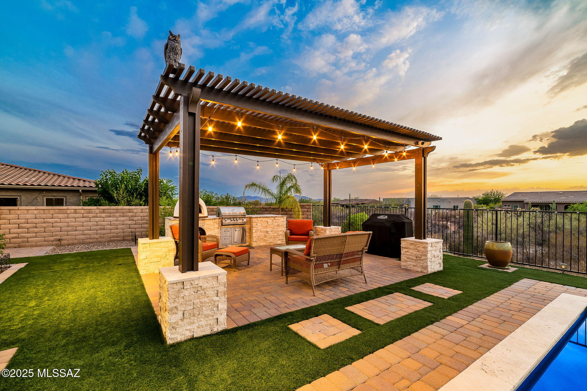Inside the small, gated community of Rancho Del Colbre in Oro Valley, a turn-key home awaits at 11767 N Luzon Court. This enclave was thoughtfully designed with larger lots for more space & privacy, while maintaining a neighborhood feel. Sitting on a 1/2 acre, the home backs up to open space, showcasing stunning sunsets and views of both the Tucson & Tortolita Mountains. Many upgraded features were included in the 2015 build, yet the property was enhanced with additional improvements following construction. With 3,526 sq ft, there is ample space to spread out in a well-designed split floor plan that includes 4 bedrooms, 3 1/2 bathrooms, and a separate den.