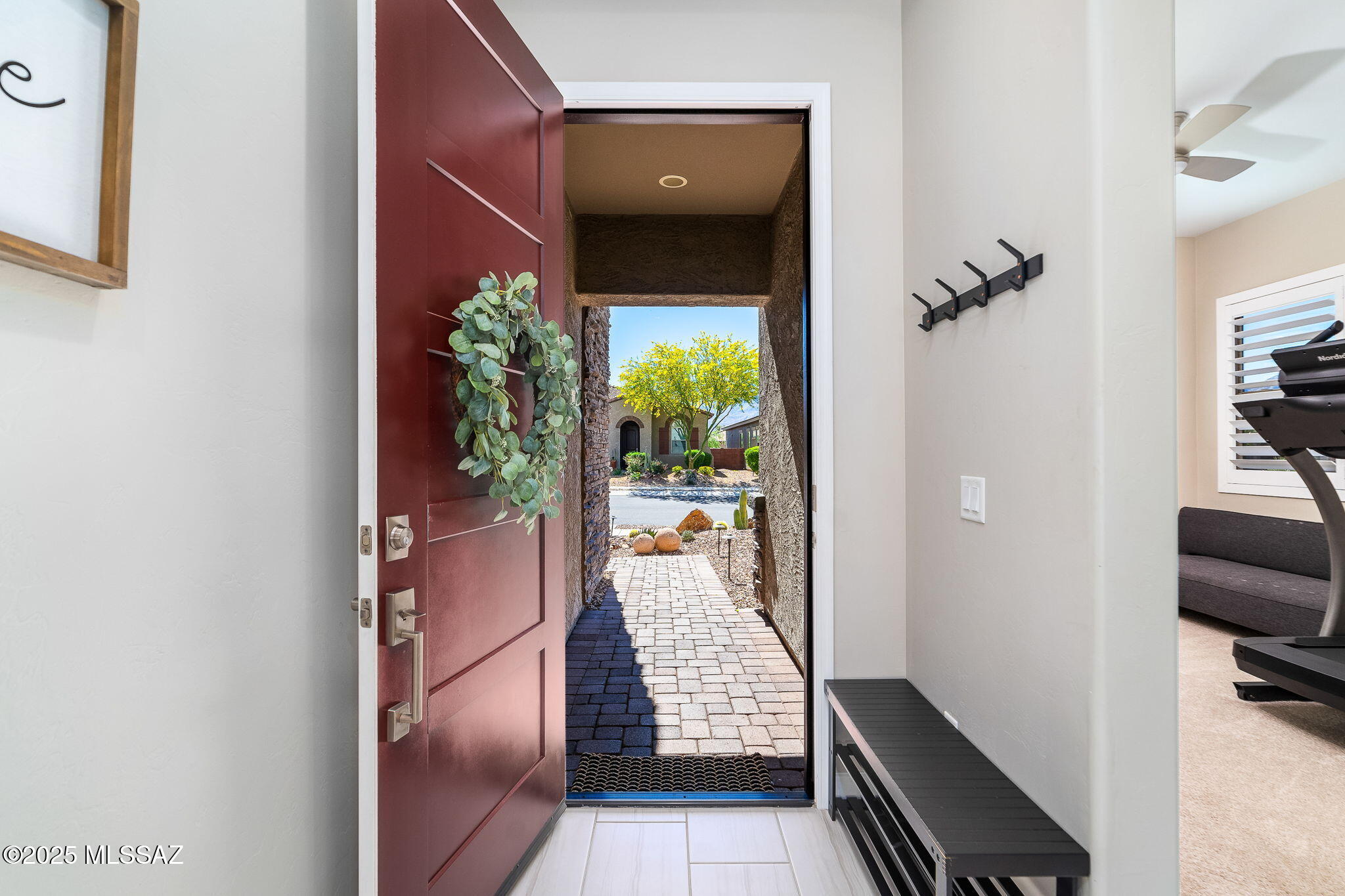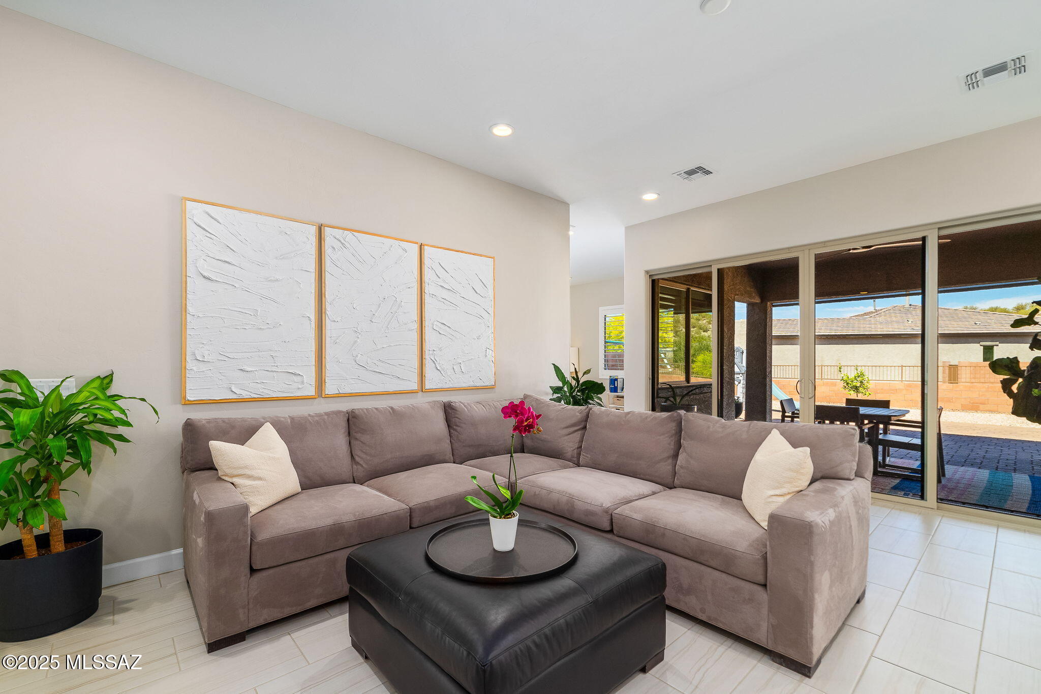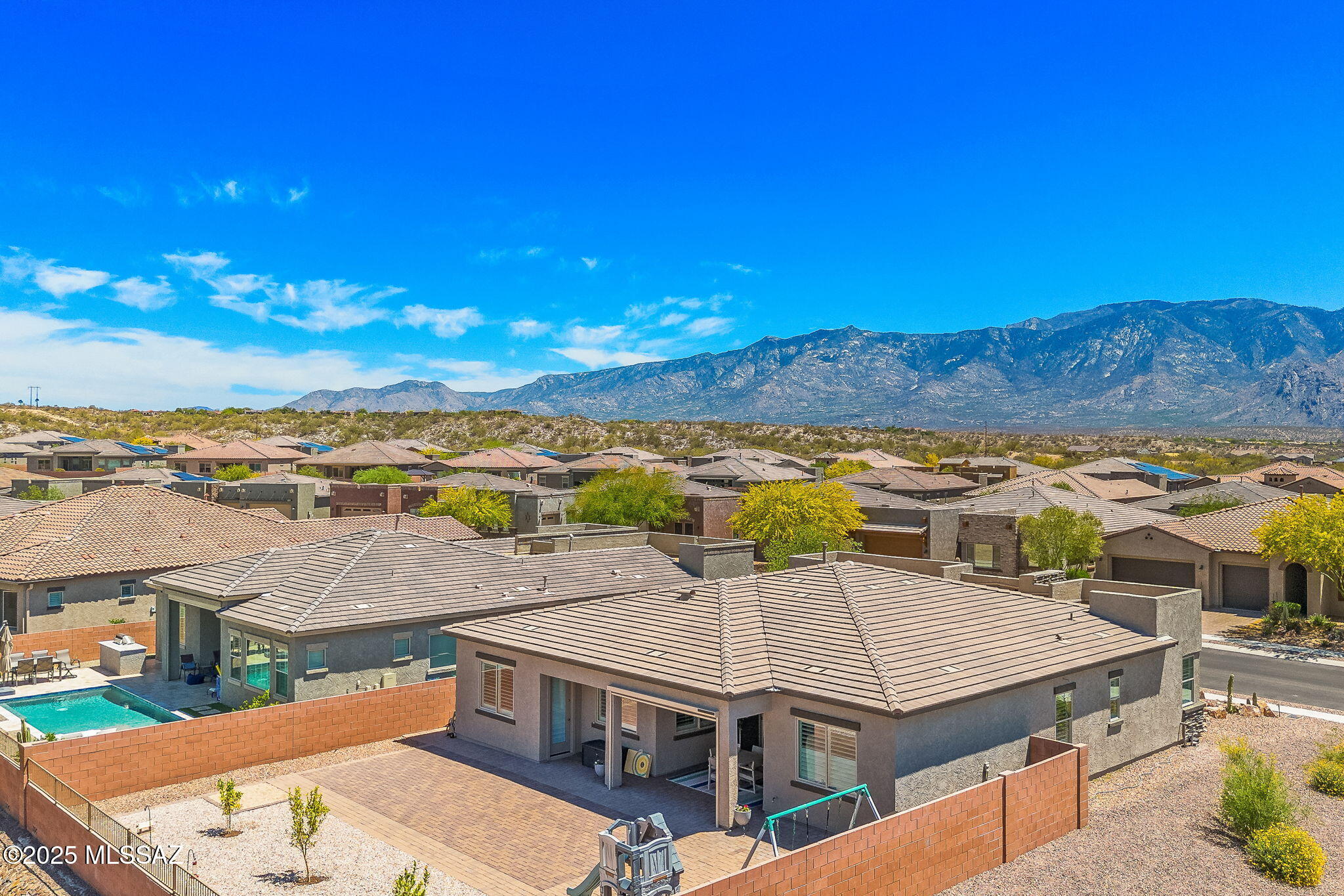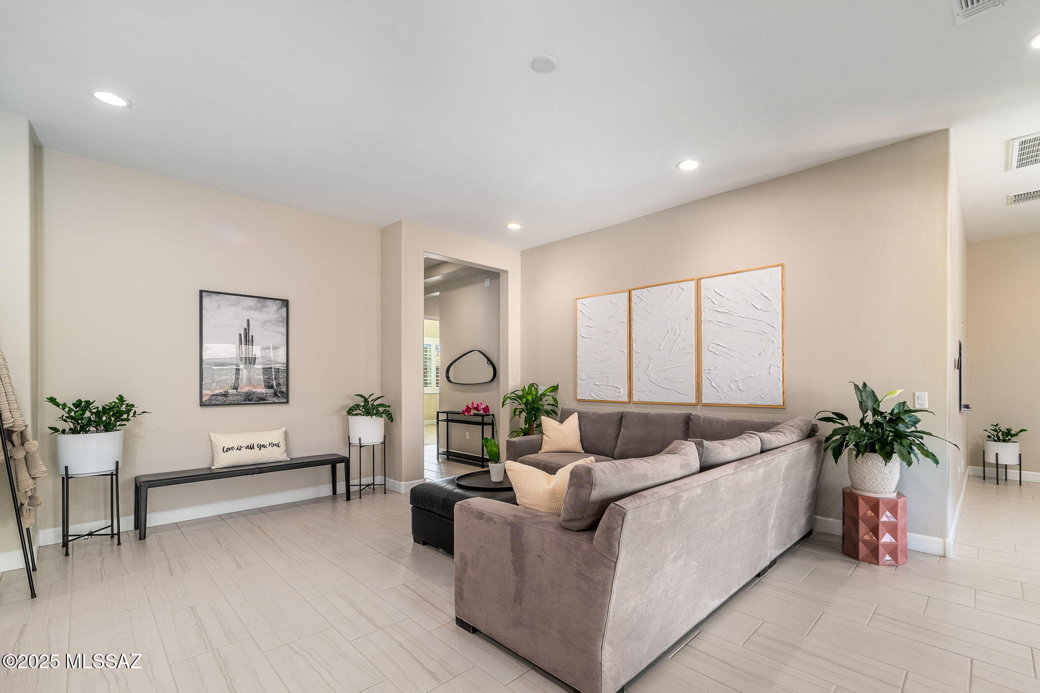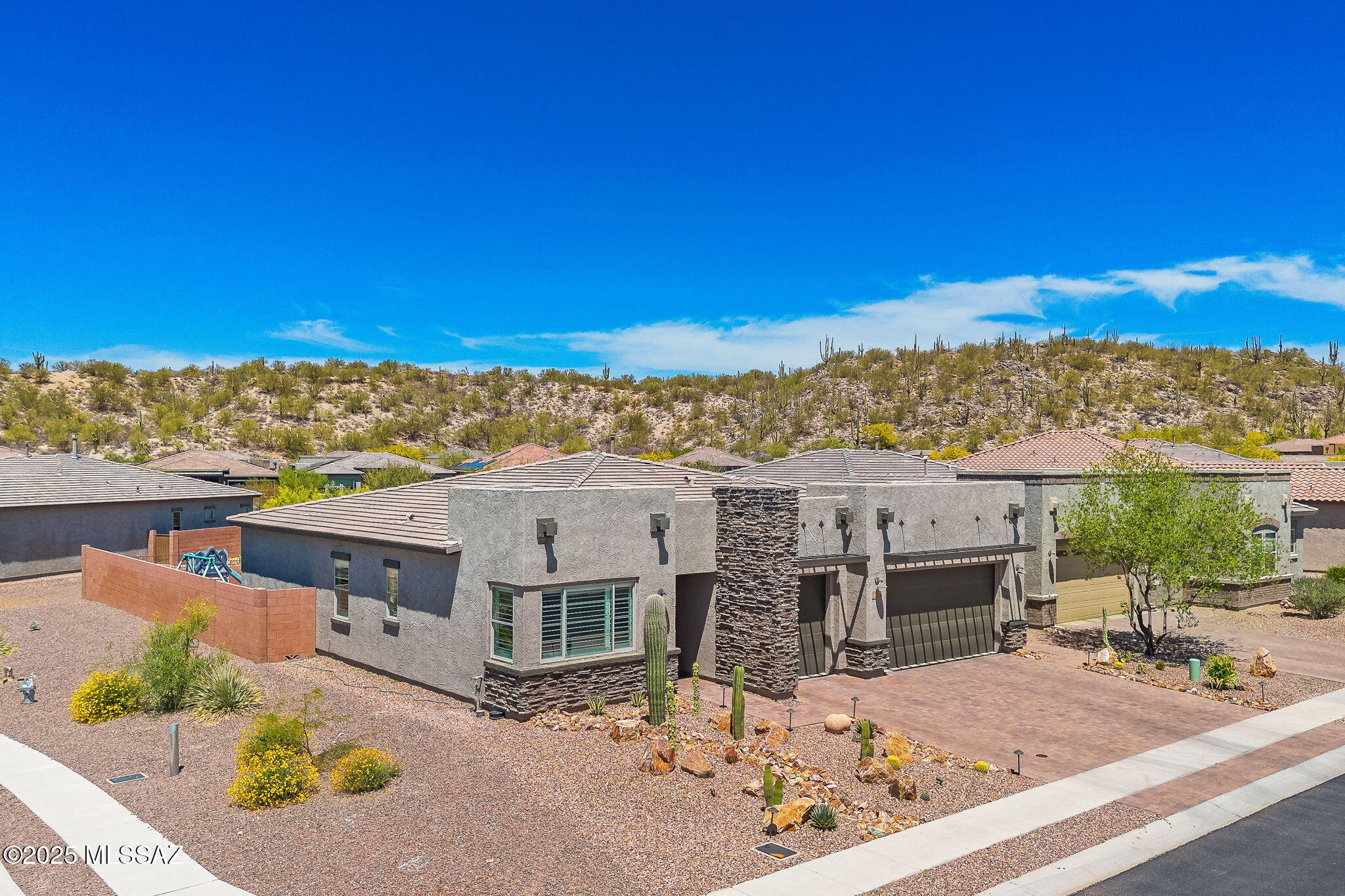 Located in the heart of Oro Valley in a small, gated community, Alterra at Vistoso Trails, 13415 N Fiesta Flower Drive offers residents a move-in-ready home with great amenities close by. Situated on a corner lot and abutting open land, the property is well positioned. Inside the 1928 square foot residence, you will find 3 bedrooms, 2 bathrooms and a separate den. The split floor plan works well for a variety of uses. While the home was constructed in 2020, the space has been meticulously cared for and feels new. In 2025, the exterior was professionally sealed and painted with high quality Sherwin Williams products, and the roof was resealed. In the kitchen and baths, you will find higher tier cabinetry, quartz counters, and stainless appliances.