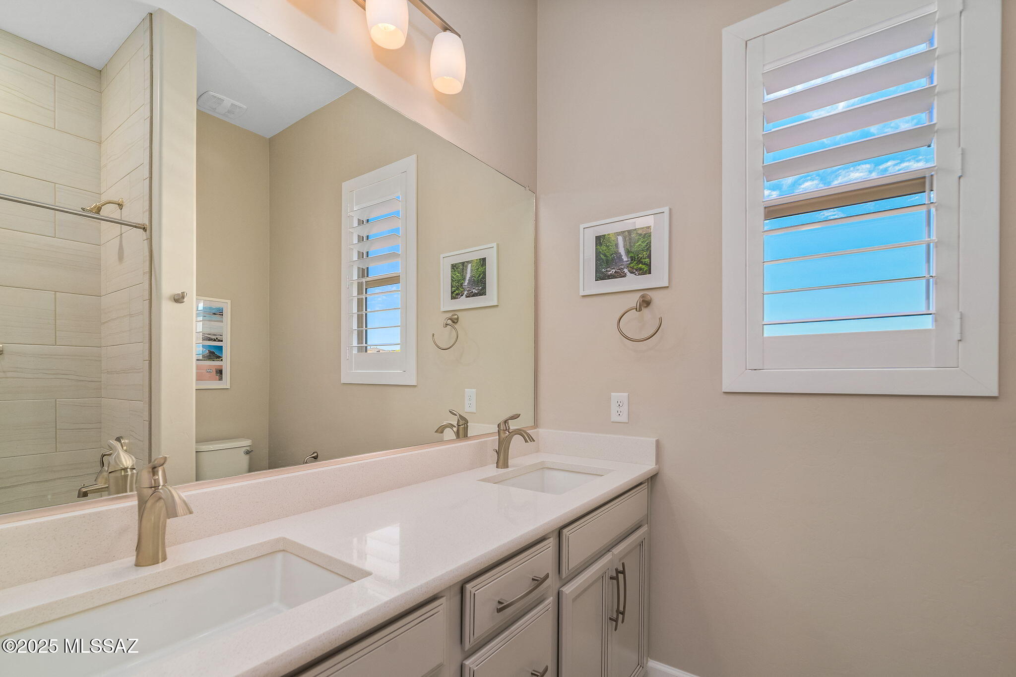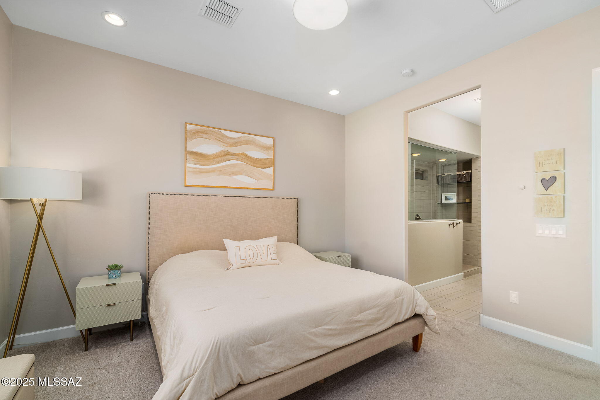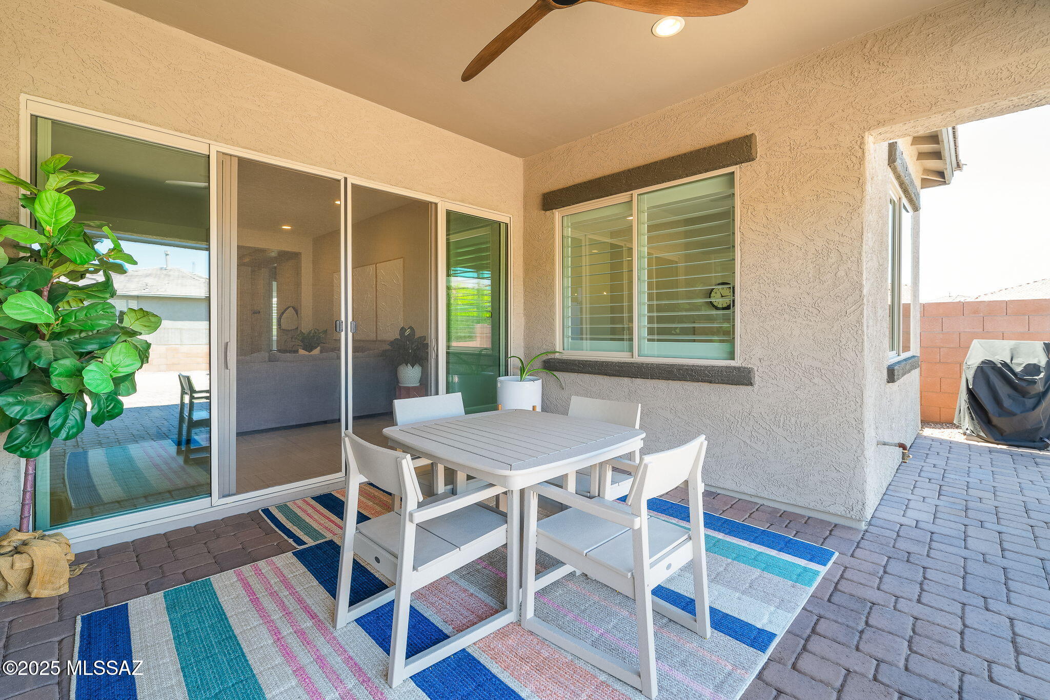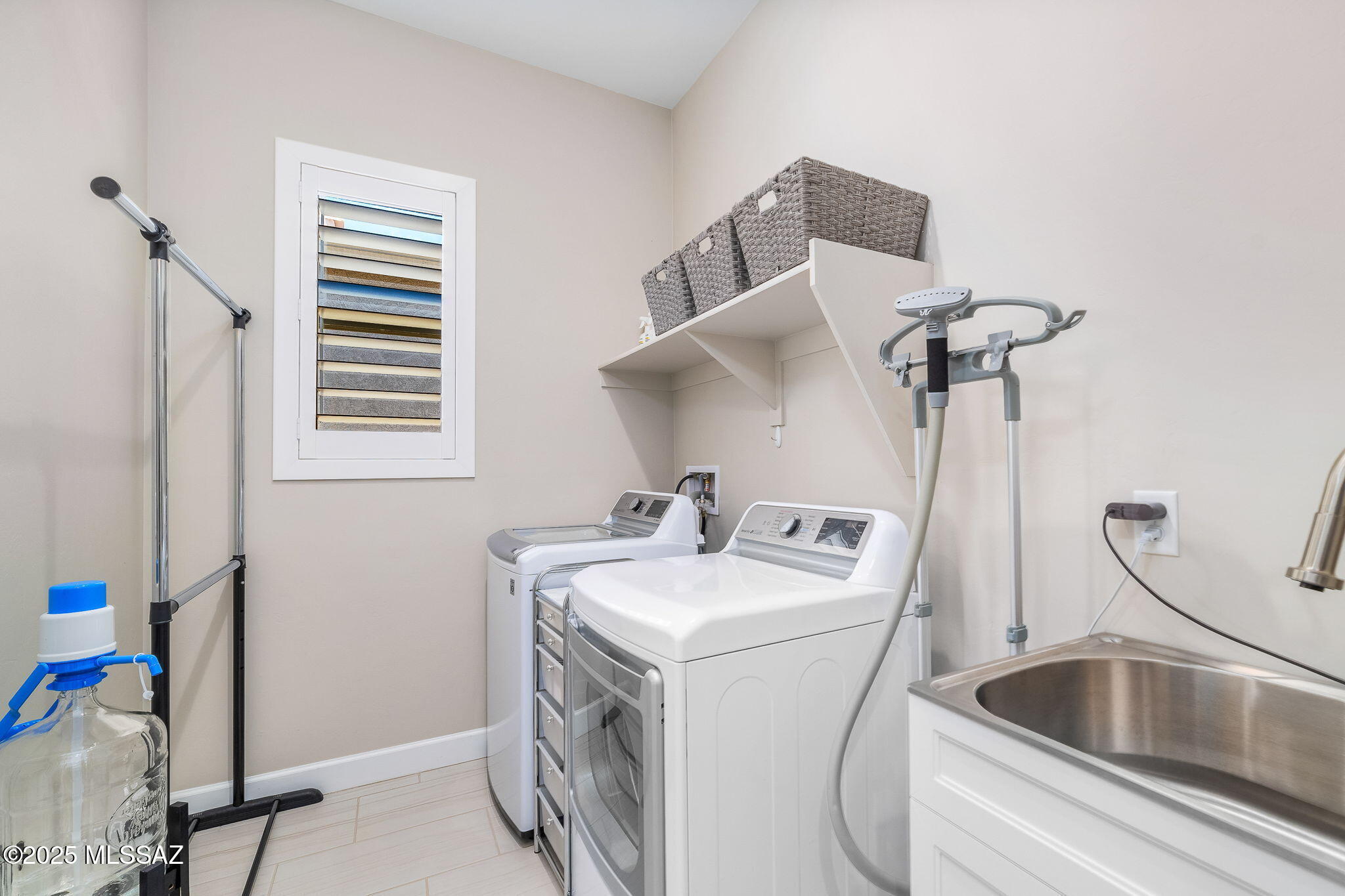 Located in the heart of Oro Valley in a small, gated community, Alterra at Vistoso Trails, 13415 N Fiesta Flower Drive offers residents a move-in-ready home with great amenities close by. Situated on a corner lot and abutting open land, the property is well positioned. Inside the 1928 square foot residence, you will find 3 bedrooms, 2 bathrooms and a separate den. The split floor plan works well for a variety of uses. While the home was constructed in 2020, the space has been meticulously cared for and feels new. In 2025, the exterior was professionally sealed and painted with high quality Sherwin Williams products, and the roof was resealed. In the kitchen and baths, you will find higher tier cabinetry, quartz counters, and stainless appliances.
