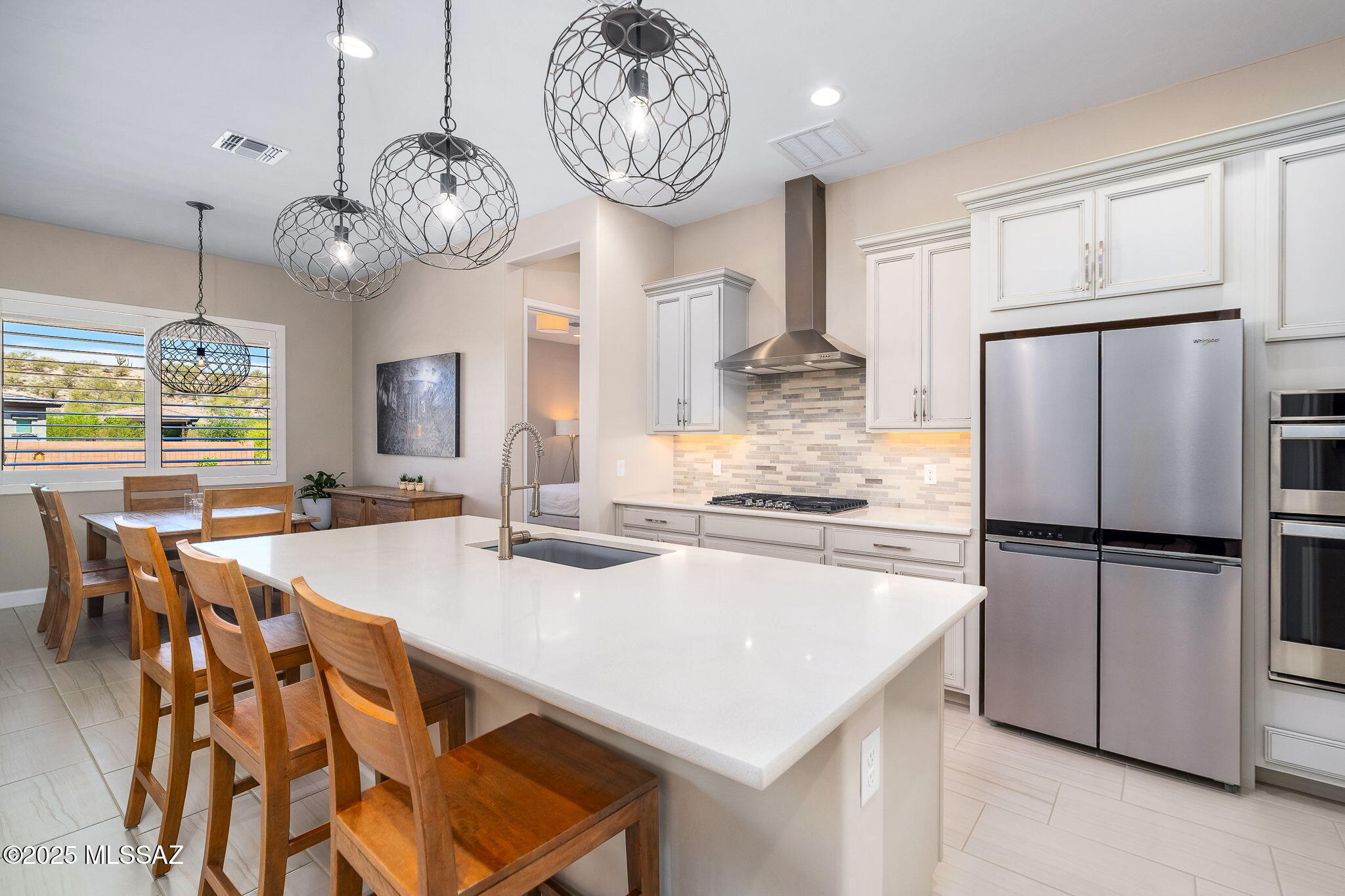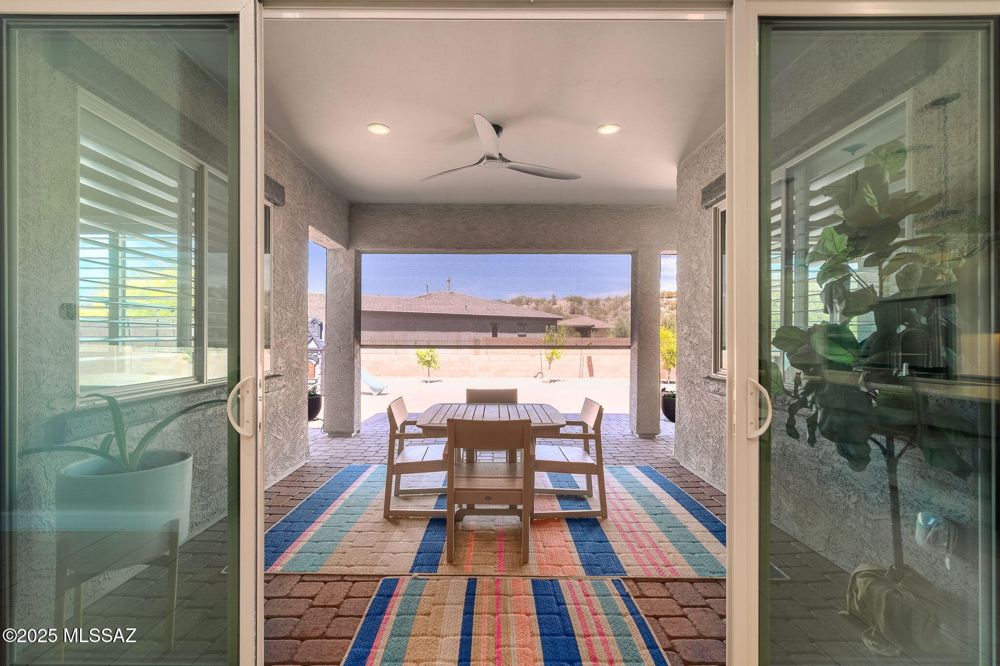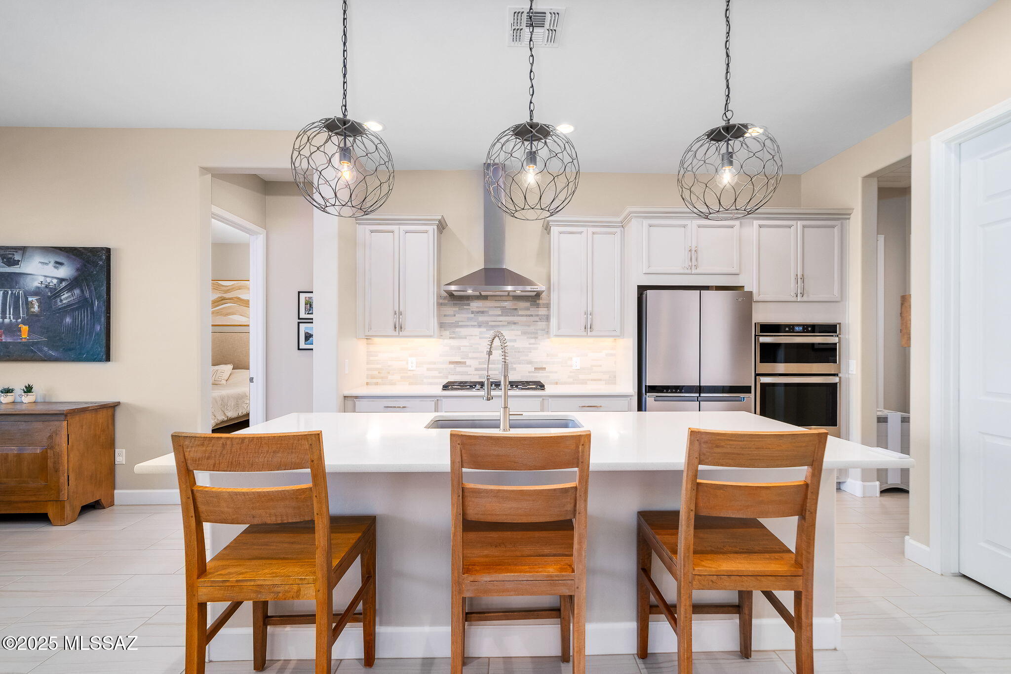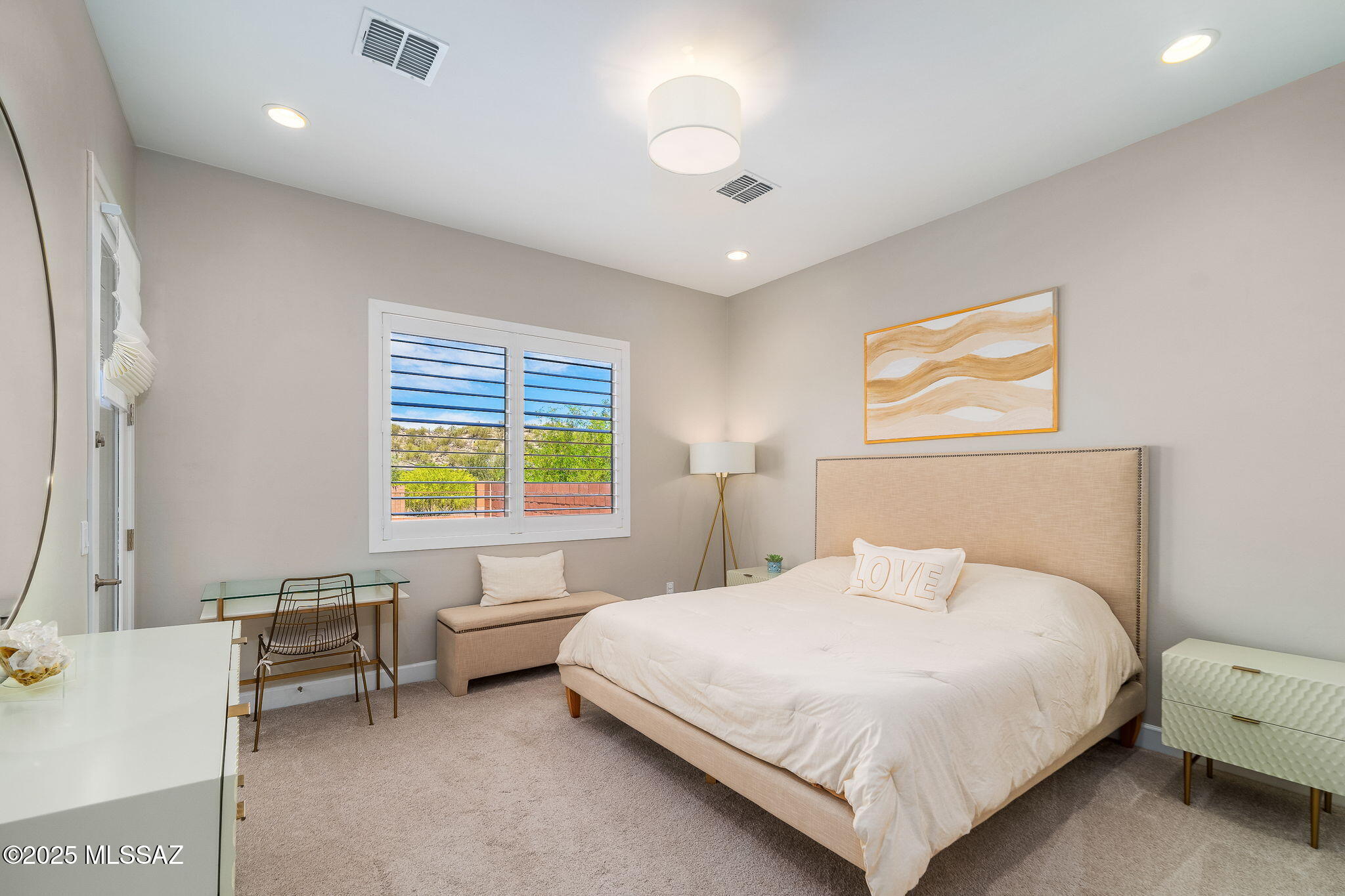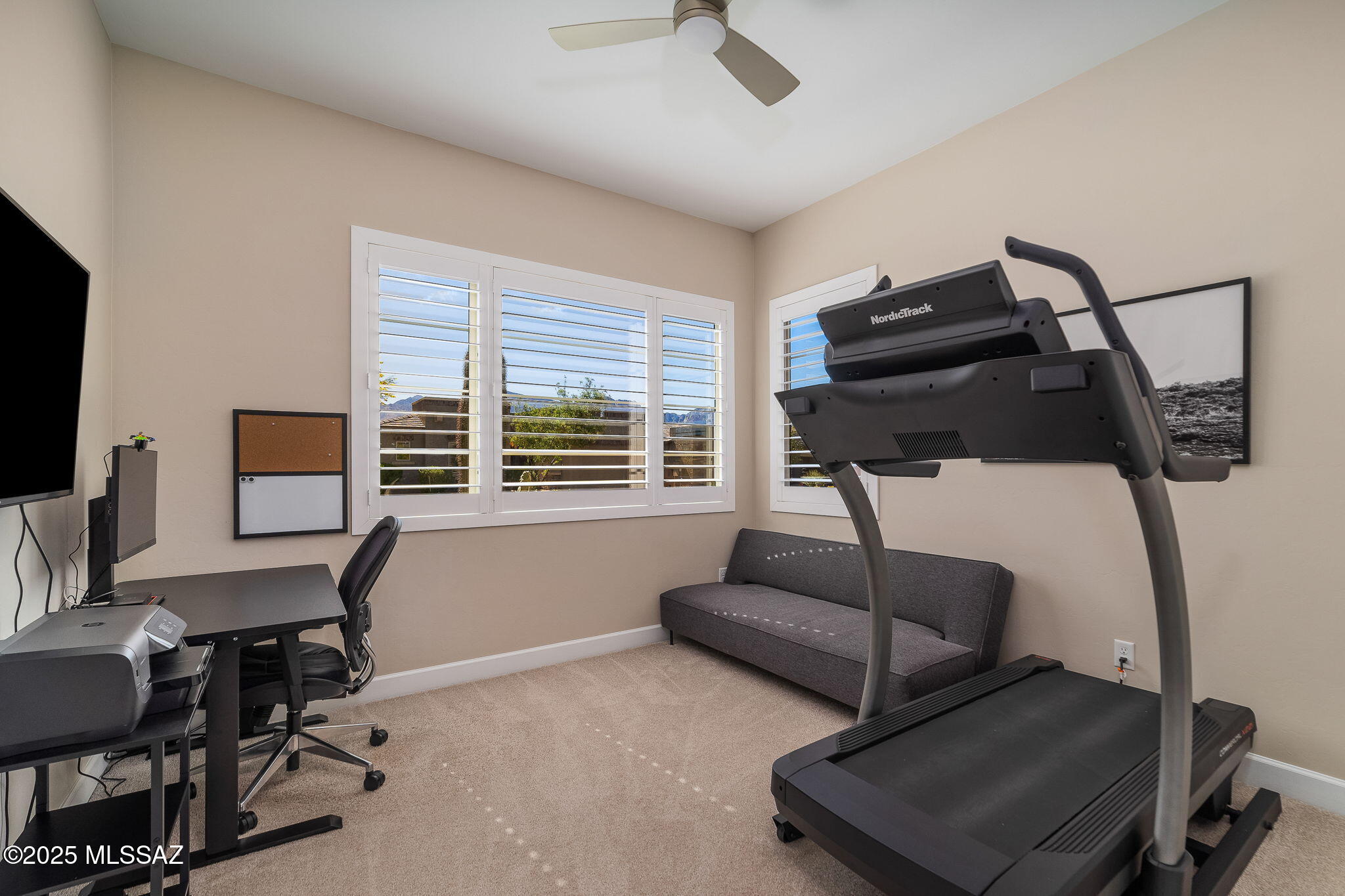 Located in the heart of Oro Valley in a small, gated community, Alterra at Vistoso Trails, 13415 N Fiesta Flower Drive offers residents a move-in-ready home with great amenities close by. Situated on a corner lot and abutting open land, the property is well positioned. Inside the 1928 square foot residence, you will find 3 bedrooms, 2 bathrooms and a separate den. The split floor plan works well for a variety of uses. While the home was constructed in 2020, the space has been meticulously cared for and feels new. In 2025, the exterior was professionally sealed and painted with high quality Sherwin Williams products, and the roof was resealed. In the kitchen and baths, you will find higher tier cabinetry, quartz counters, and stainless appliances.