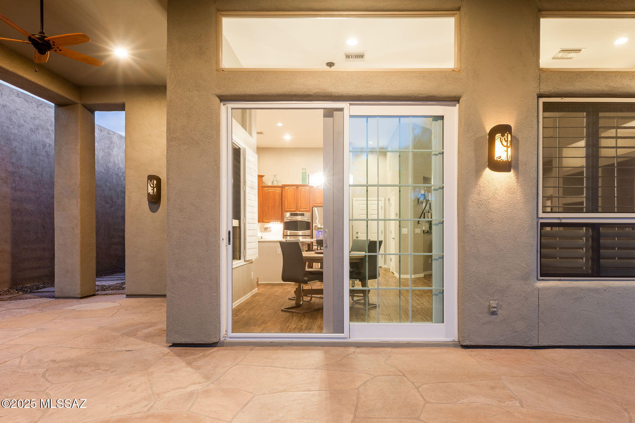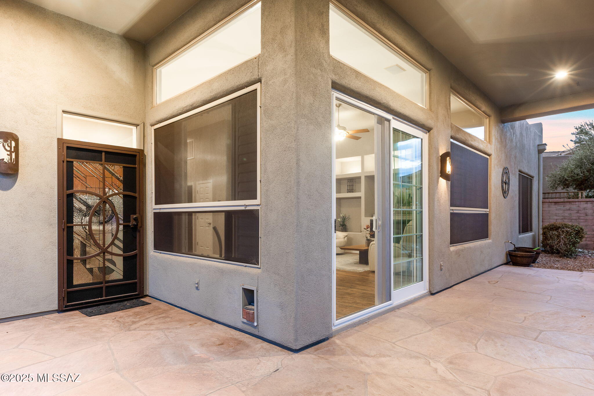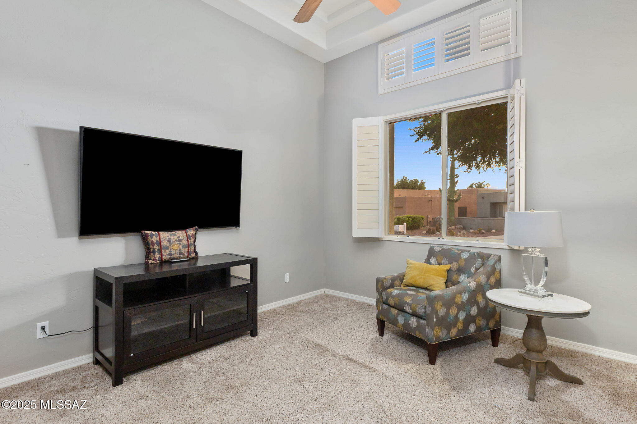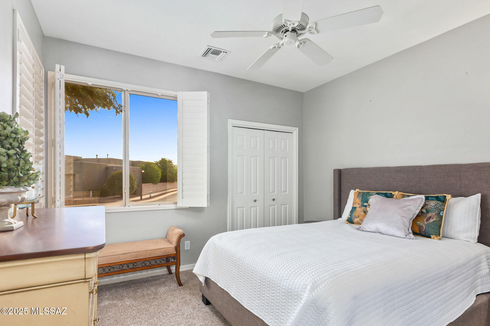 Facing Northeast with no rear neighbors, the backyard feels tucked in with generous vegetation and exposes peeks of the Catalina Mountains. A built-in grill invites residents to cook and dine outdoors.
