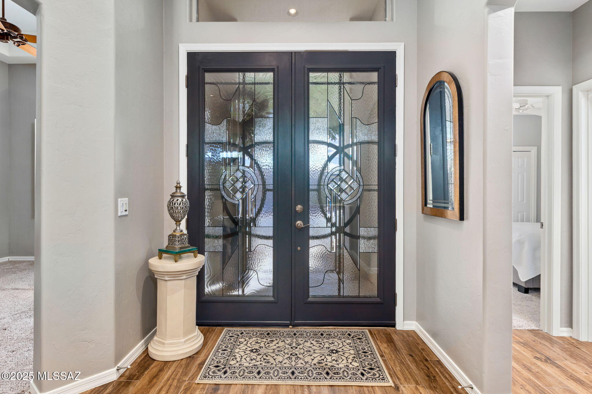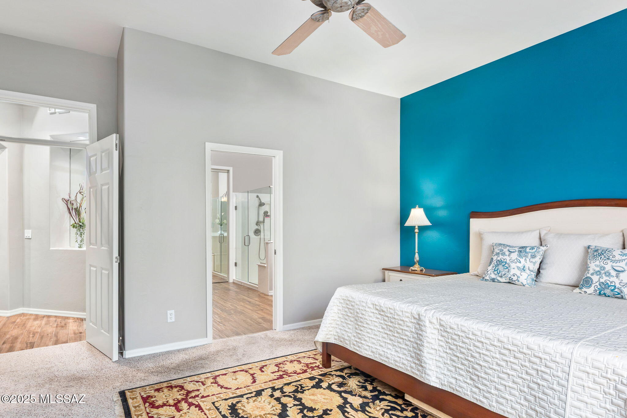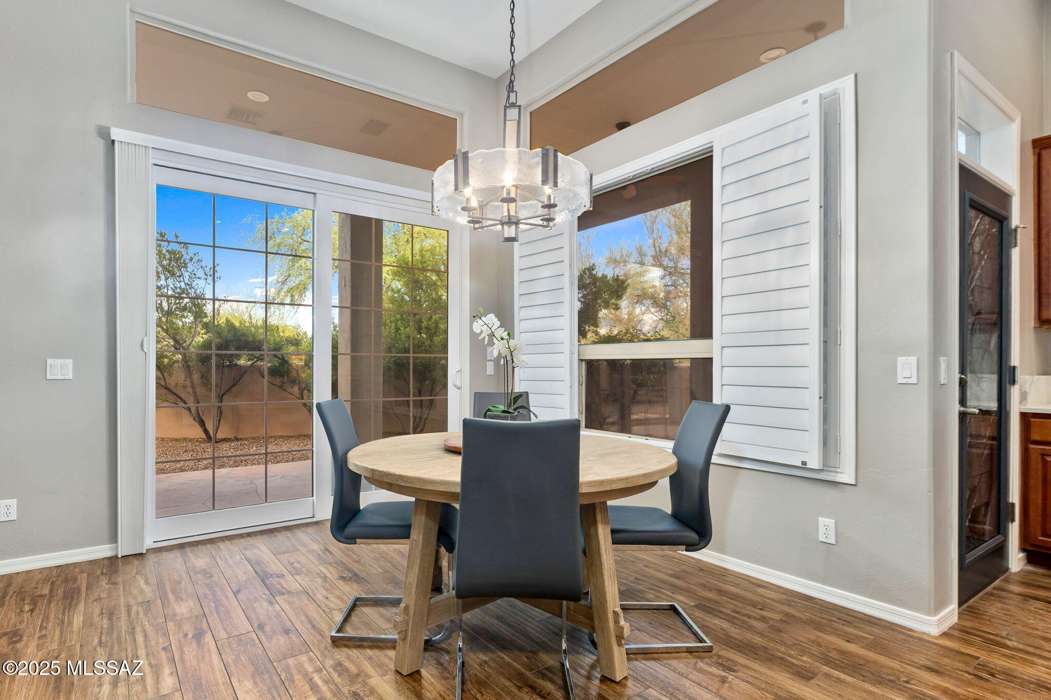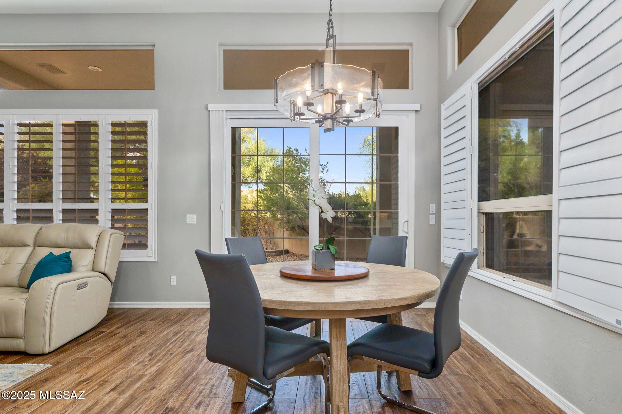 Facing Northeast with no rear neighbors, the backyard feels tucked in with generous vegetation and exposes peeks of the Catalina Mountains. A built-in grill invites residents to cook and dine outdoors.