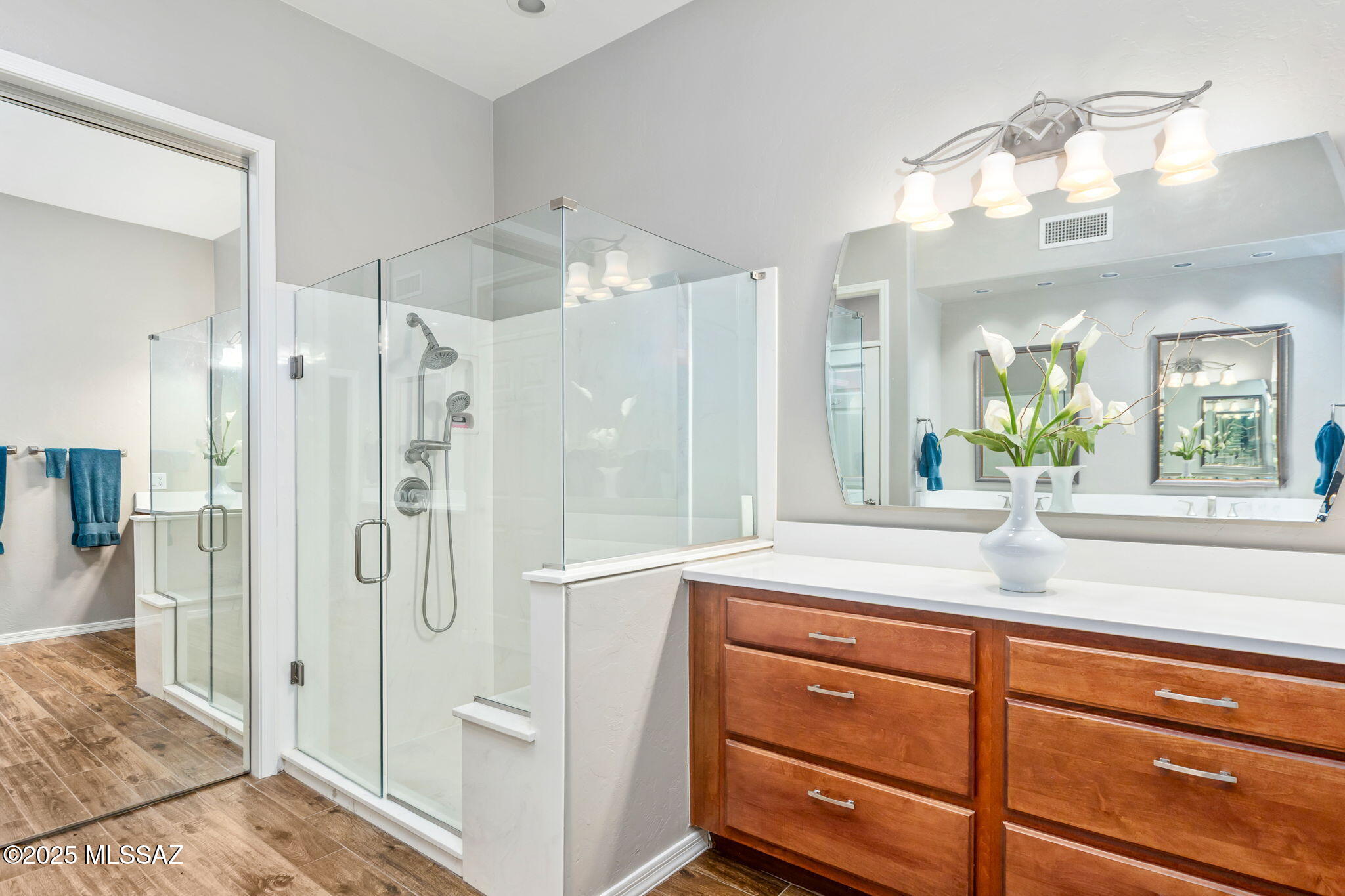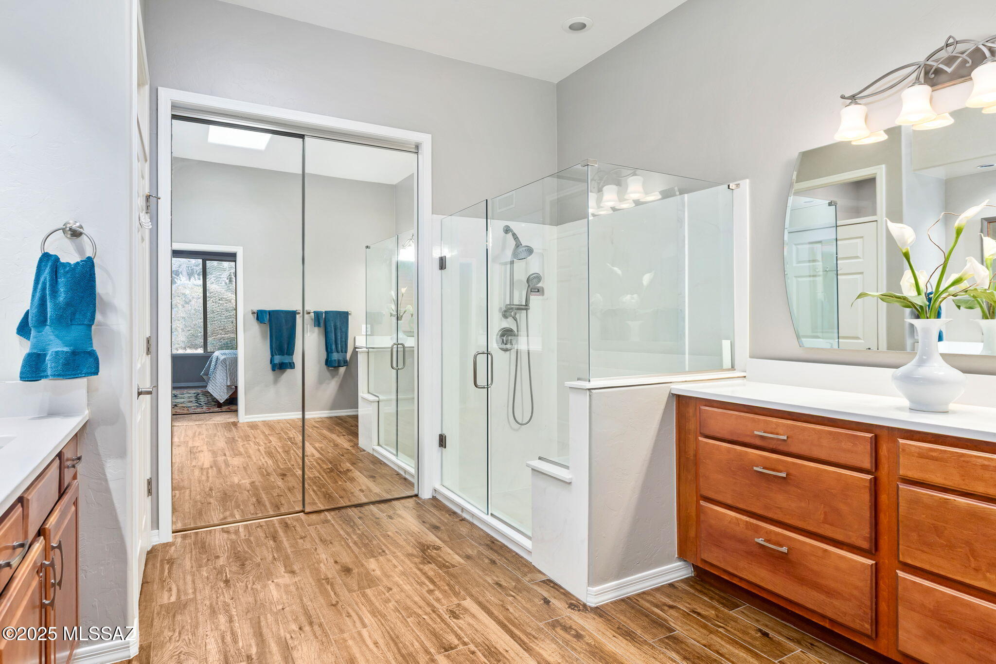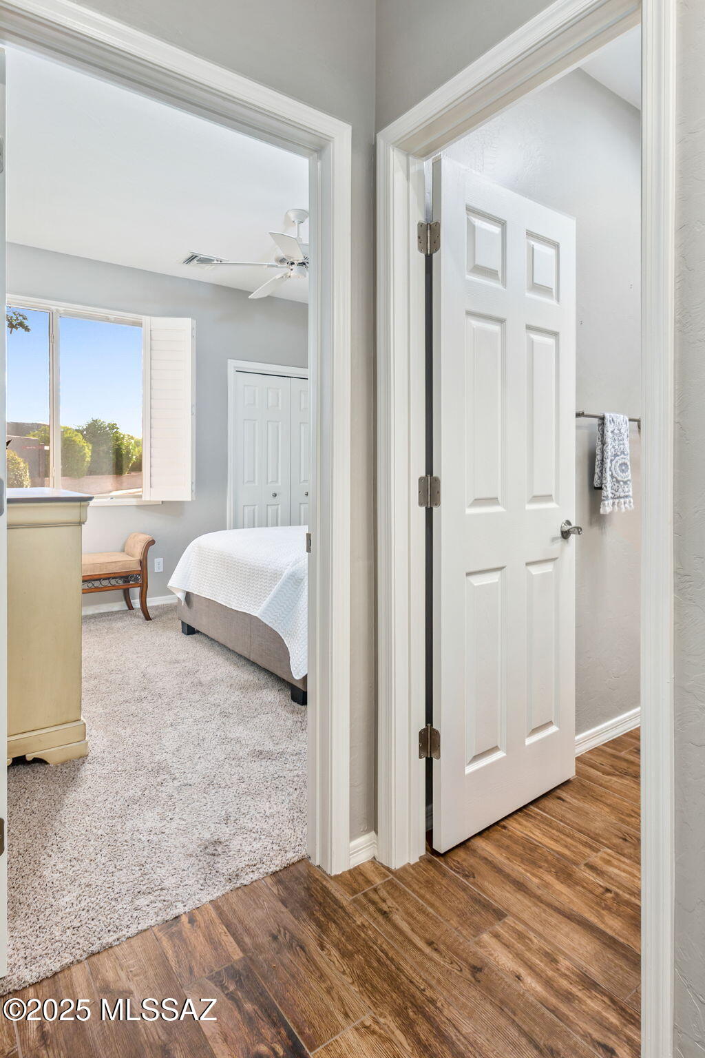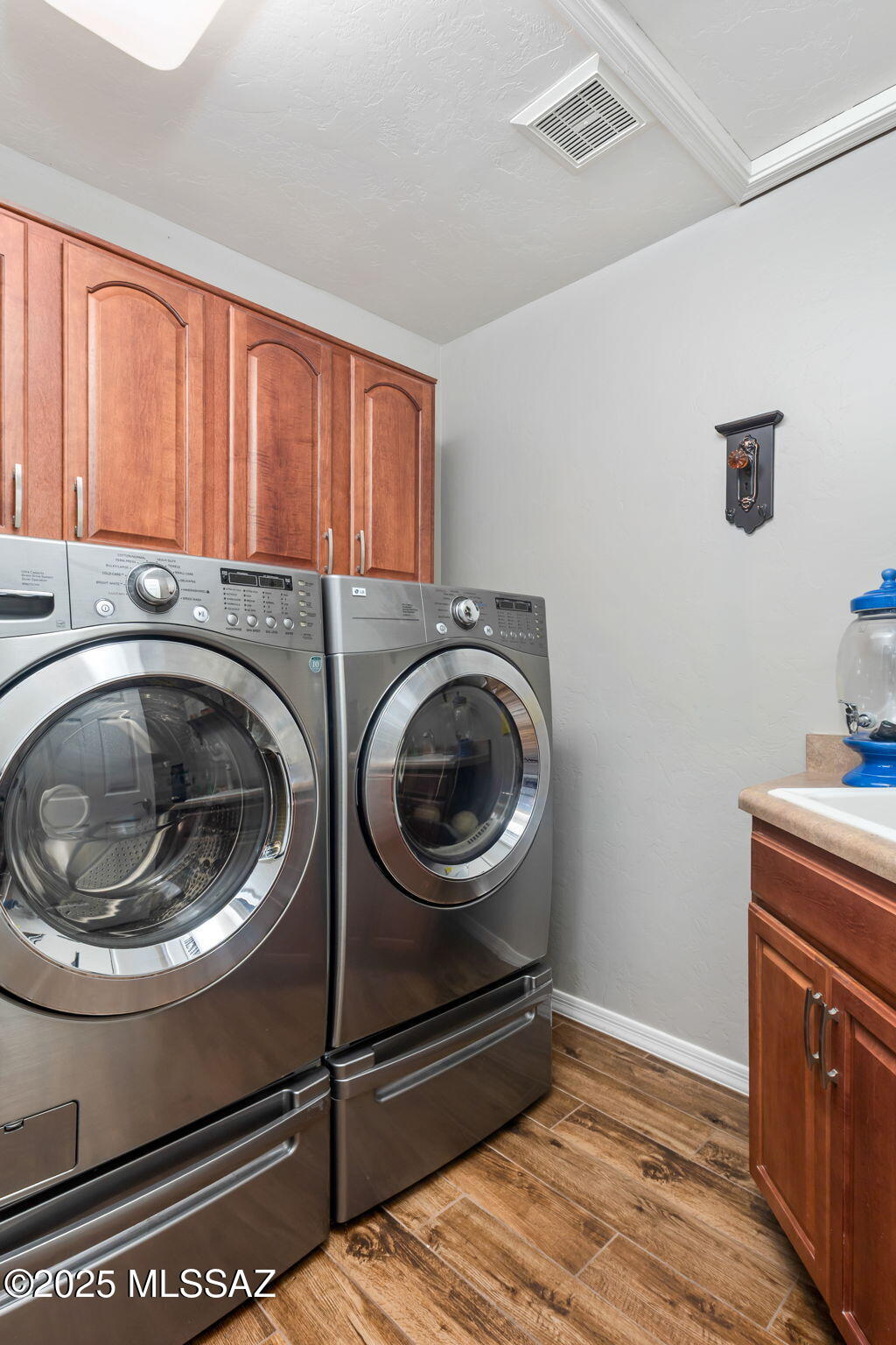 Facing Northeast with no rear neighbors, the backyard feels tucked in with generous vegetation and exposes peeks of the Catalina Mountains. A built-in grill invites residents to cook and dine outdoors.