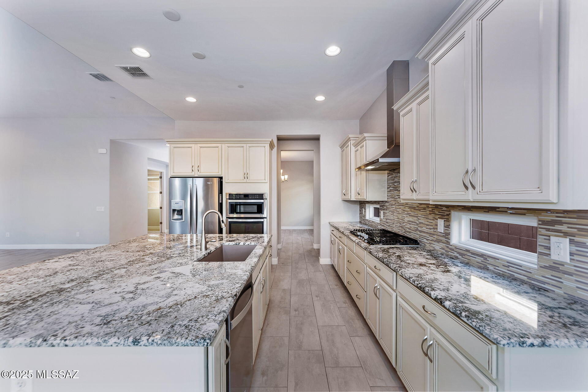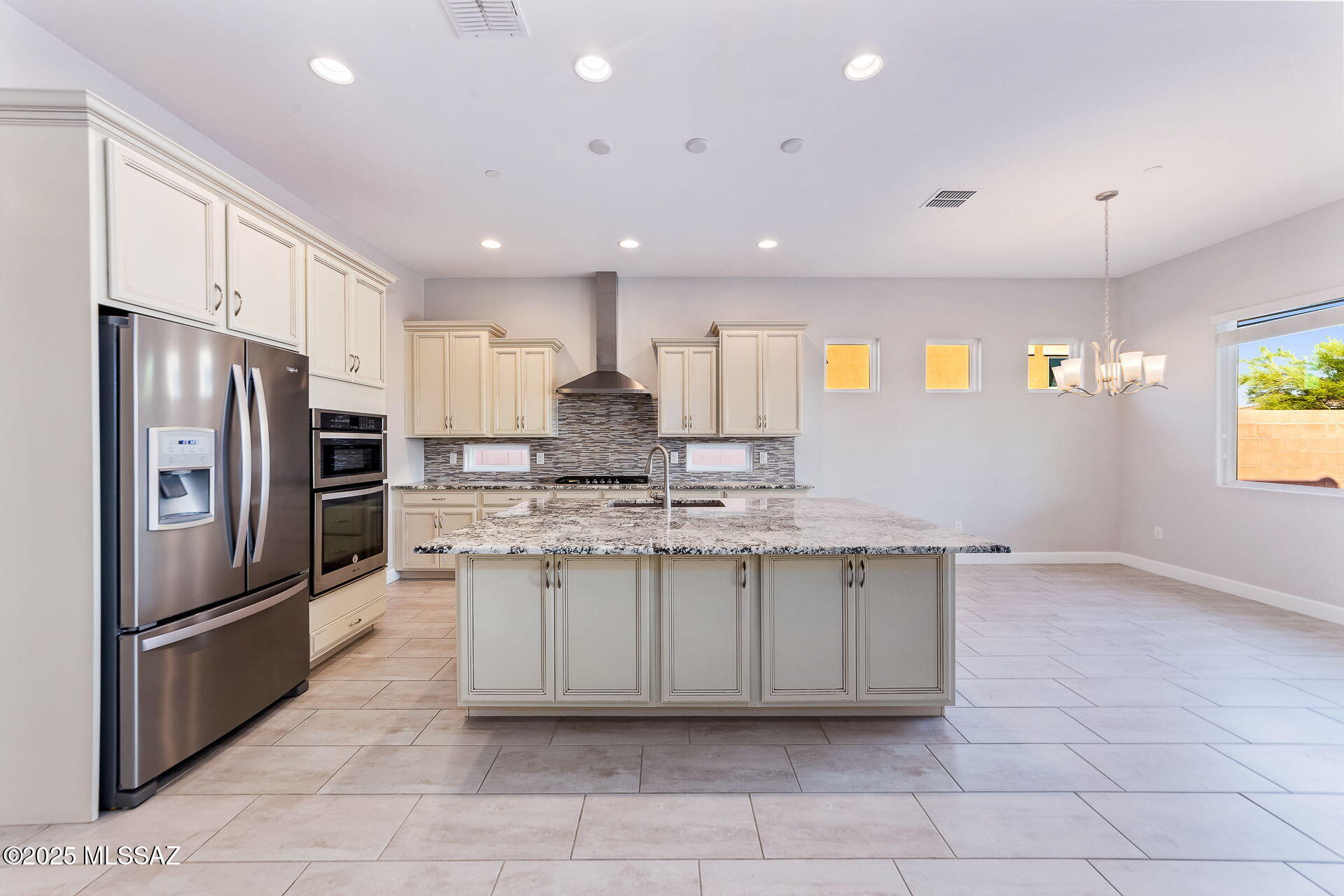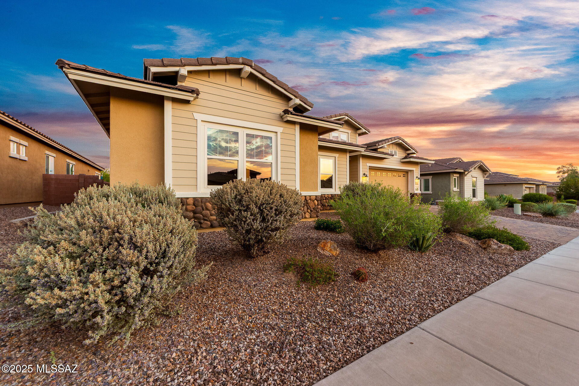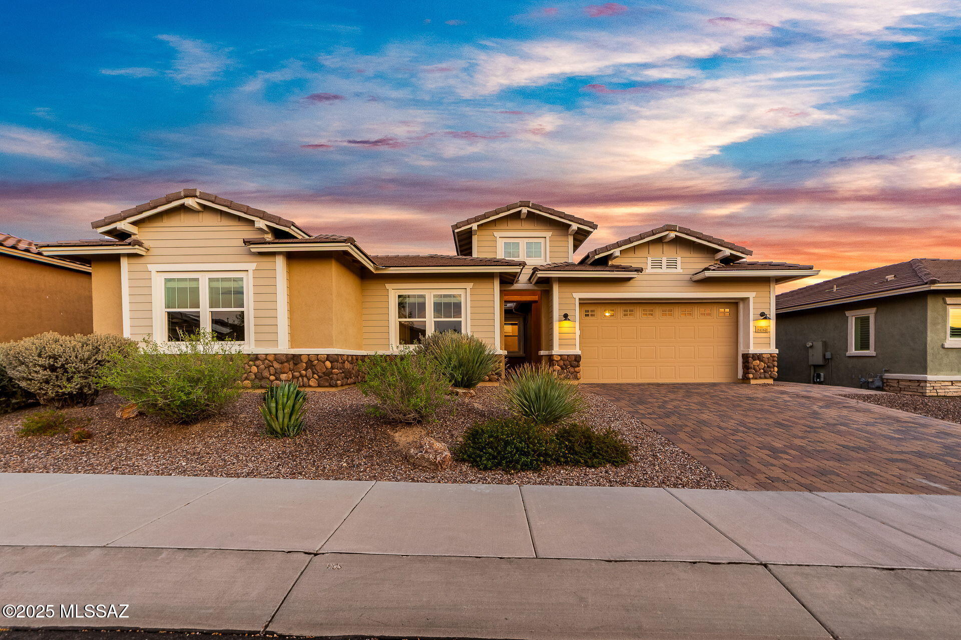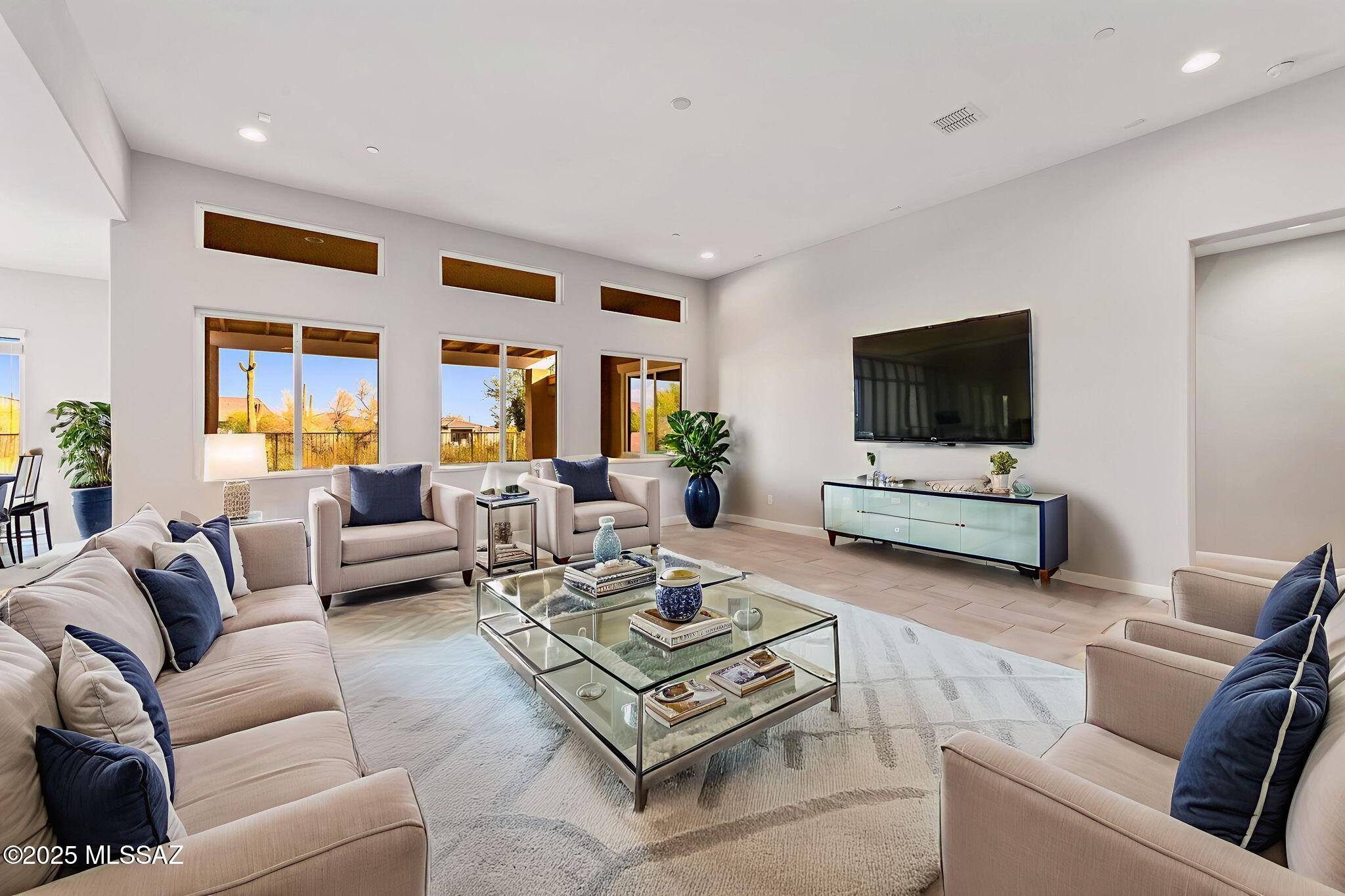 Completed in 2017 this versatile single story with a 3-car garage, 2,904 square feet, 4 bedrooms, a den, and 3 bathrooms allows for a variety of uses. This home lays out beautifully with a split-floorplan creating privacy and functionality in each of the spaces. Interior features include a spa-like primary bathroom shower, ceramic tile throughout all public spaces, fully enclosed den or office, staggered kitchen cabinetry, large walk-in pantry, prep area or coffee bar space and soaring 12 ft ceilings in the great room capturing natural light and desert views. Outside you will find its custom patio roof extension that provides shade over a portion of the pool and outdoor kitchen. The limestone pavers create continuity throughout the outdoor spaces for a clean and finished look. Step up to the built in gas fire pit to enjoy the views of the Tortolita Mountains and watch the sky change colors at sunset.