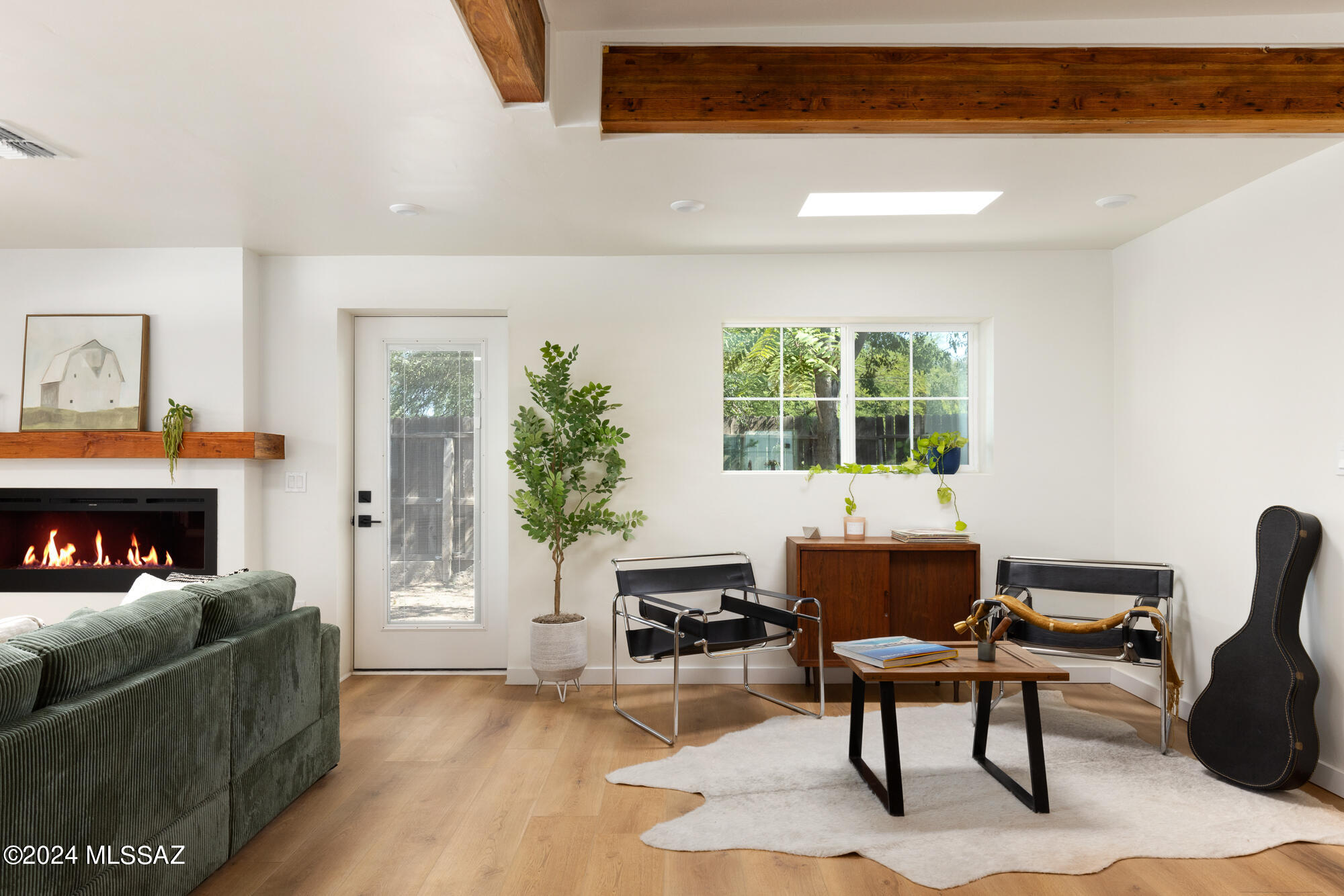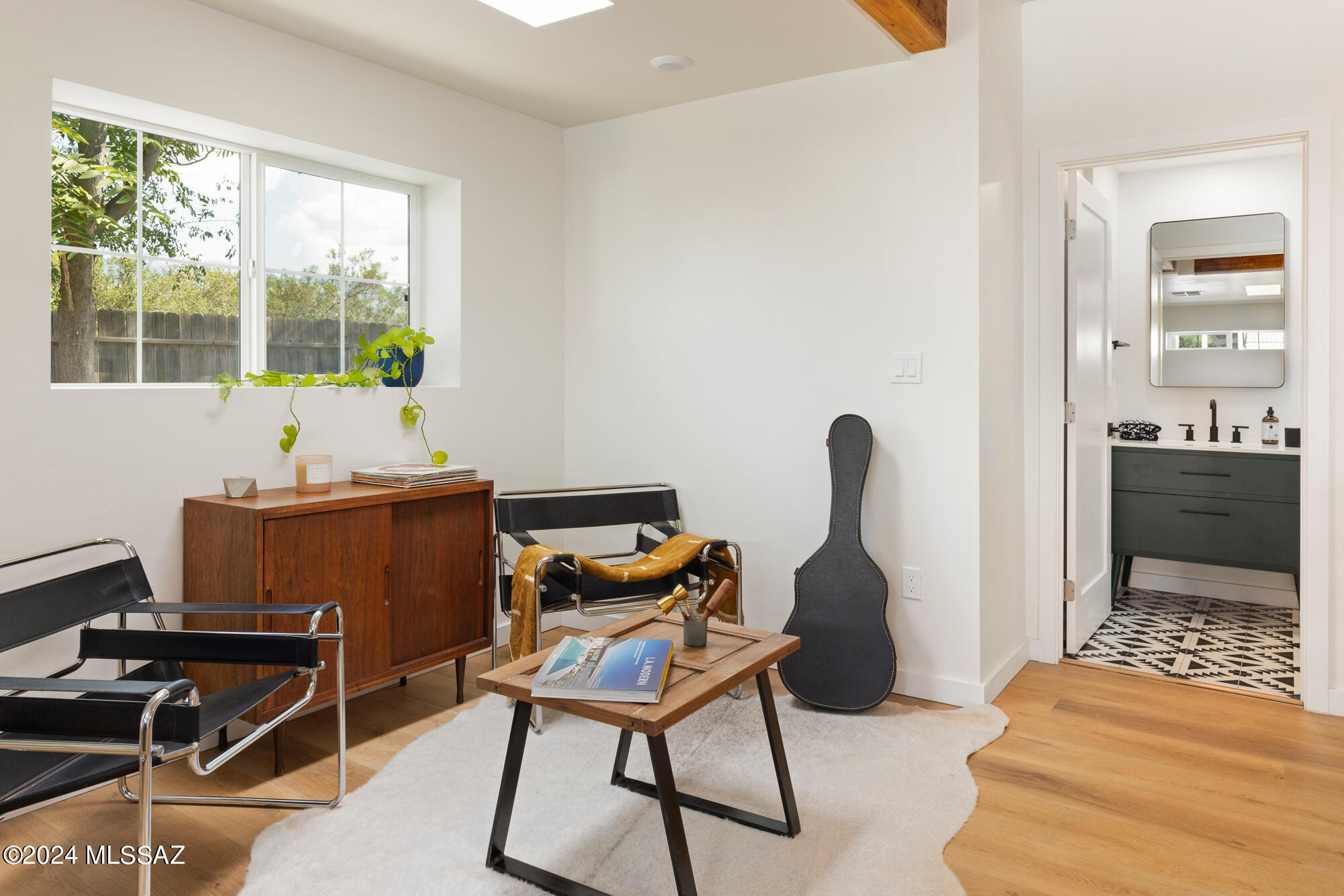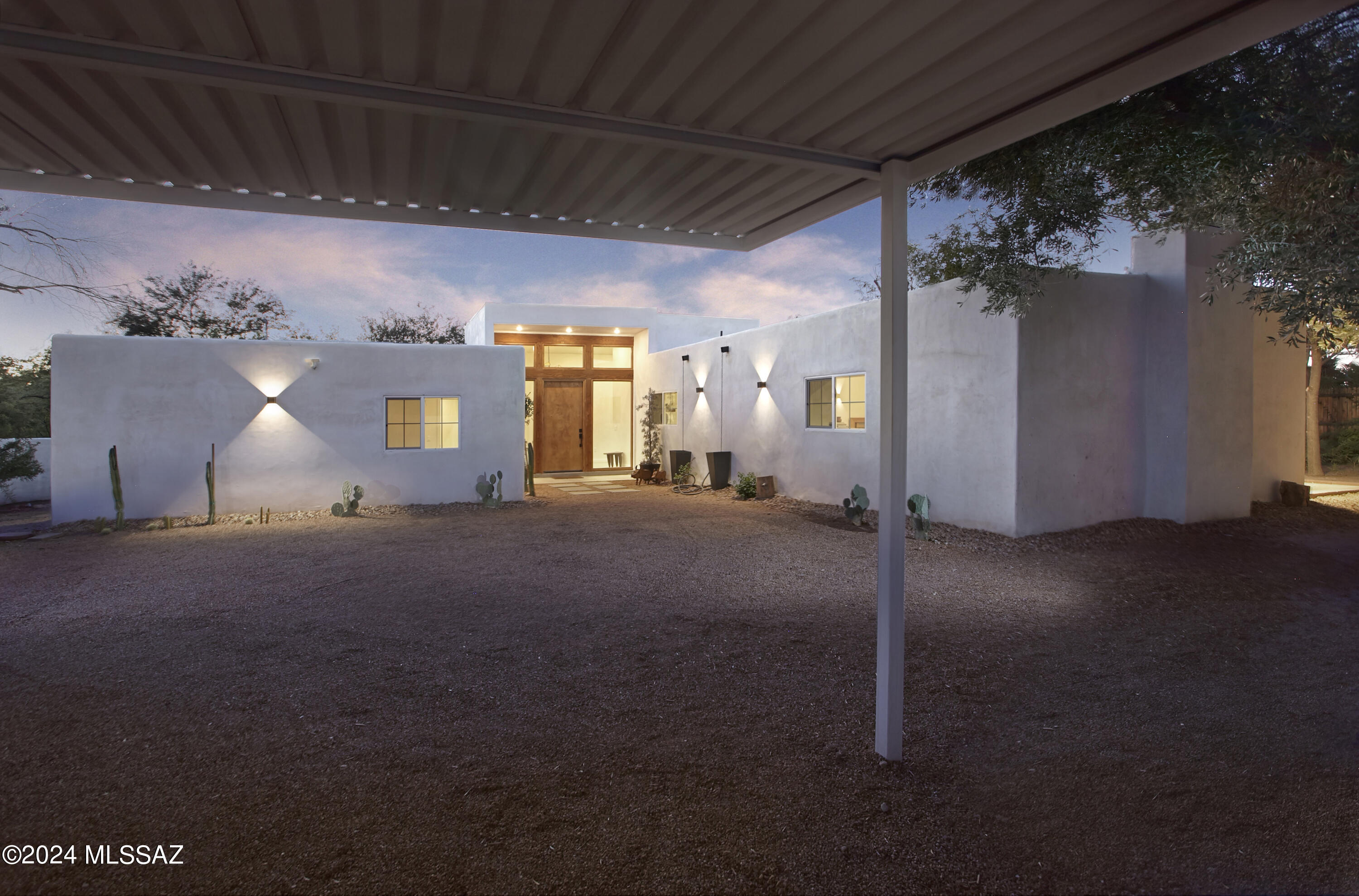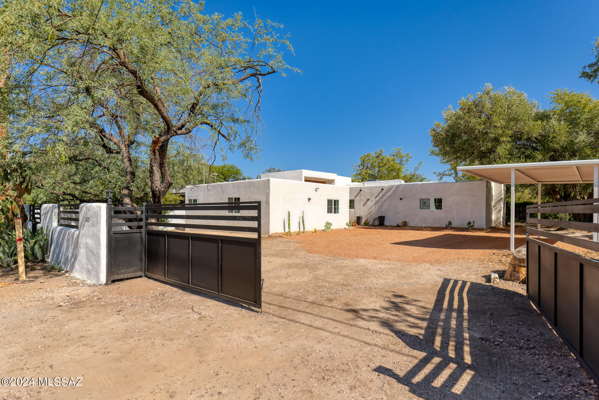 A creative expression blending historical elements, mid-century style and modern features creating a one-of-a-kind property in the heart of Tucson. The original 1947 mud adobe structure and combination of rural & urban provided inspiration for a dynamic architectural team to expand (nearly doubling the space) and reimagine this home. Carefully curated, the design honors the desert, while offering a fresh look & layout that suits today's lifestyle. Starting with the arrival through a beautiful casement entry door leading to a dramatic entry, everything here is custom and intentional. Form meets function with an open living space and split floor plan that provides 3 bedrooms, 2 1/2 bathrooms and a pocket office, spanning 2278 sq ft. The materials and design elements are simple, yet elegant. Light filled spaces are dotted with custom millwork, solid wood beams, perfectly positioned skylights, and carefully placed windows that draw the eye to green outside. Made to live and last, you will find large format tile and engineered hardwood on the floors, quartz counters, and soft close cabinetry. Sustainability was also top of mind in maintaining the adobe & masonry walls, adding insulation, installing electric appliances and selecting a light exterior for reflective qualities.