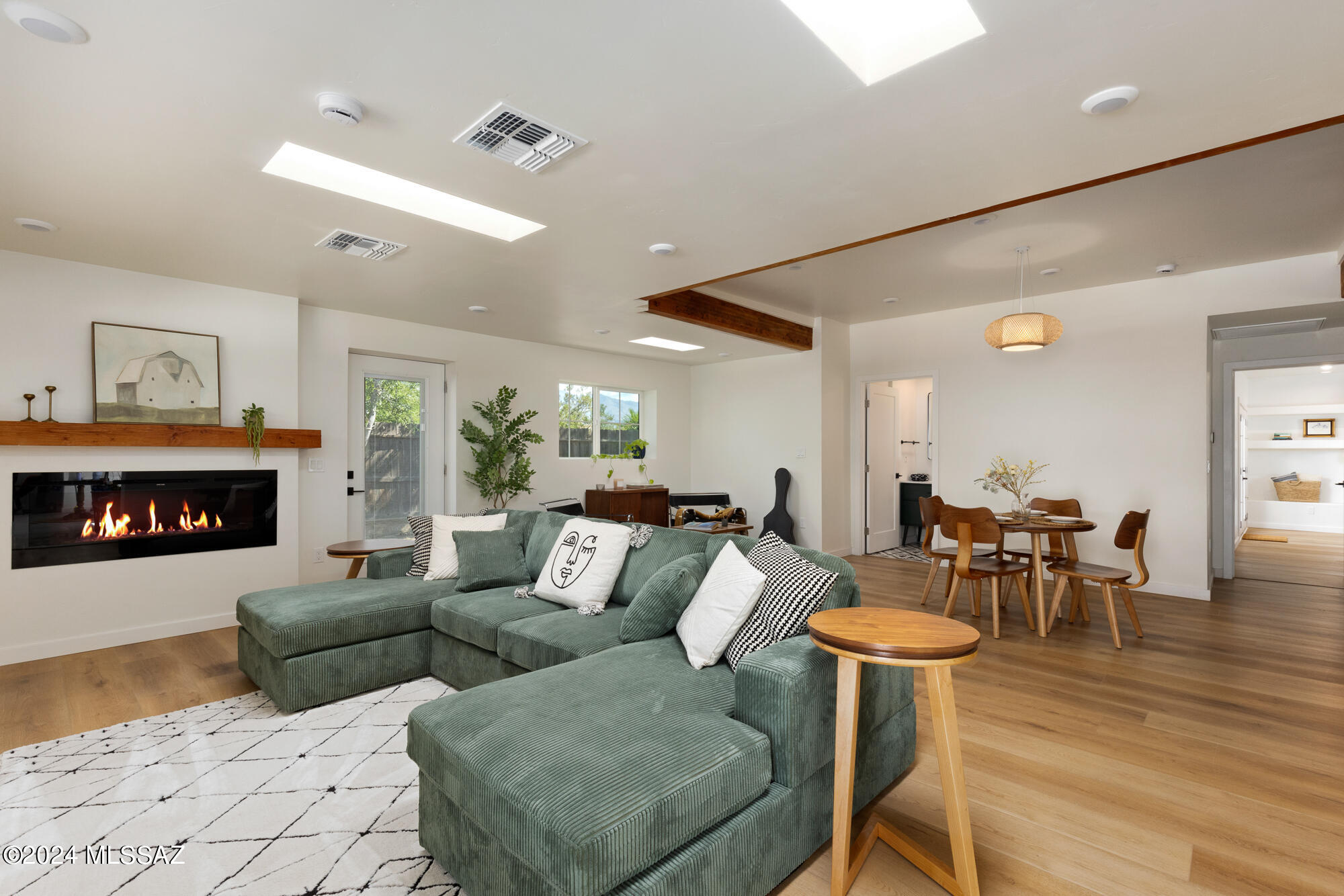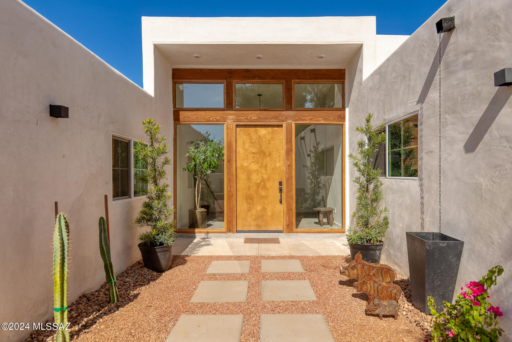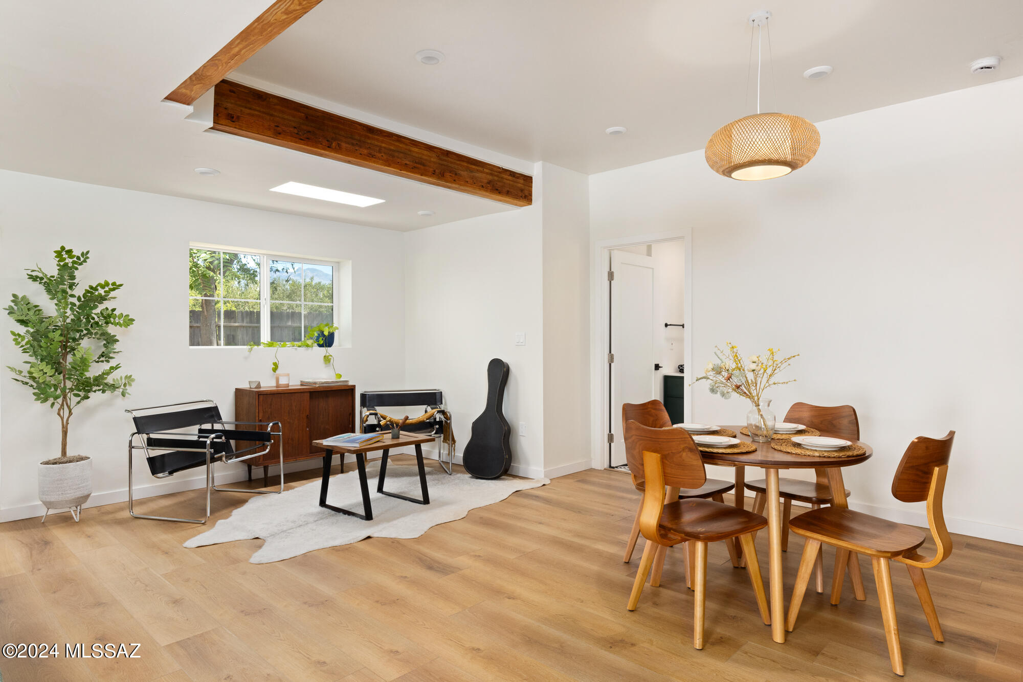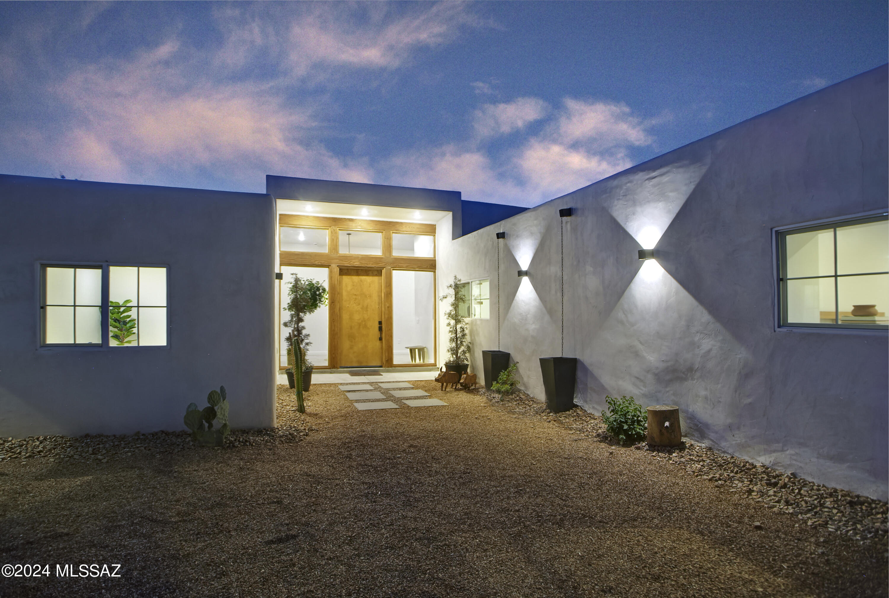 A creative expression blending historical elements, mid-century style and modern features creating a one-of-a-kind property in the heart of Tucson. The original 1947 mud adobe structure and combination of rural & urban provided inspiration for a dynamic architectural team to expand (nearly doubling the space) and reimagine this home. Carefully curated, the design honors the desert, while offering a fresh look & layout that suits today's lifestyle. Starting with the arrival through a beautiful casement entry door leading to a dramatic entry, everything here is custom and intentional. Form meets function with an open living space and split floor plan that provides 3 bedrooms, 2 1/2 bathrooms and a pocket office, spanning 2278 sq ft. The materials and design elements are simple, yet elegant. Light filled spaces are dotted with custom millwork, solid wood beams, perfectly positioned skylights, and carefully placed windows that draw the eye to green outside. Made to live and last, you will find large format tile and engineered hardwood on the floors, quartz counters, and soft close cabinetry. Sustainability was also top of mind in maintaining the adobe & masonry walls, adding insulation, installing electric appliances and selecting a light exterior for reflective qualities.