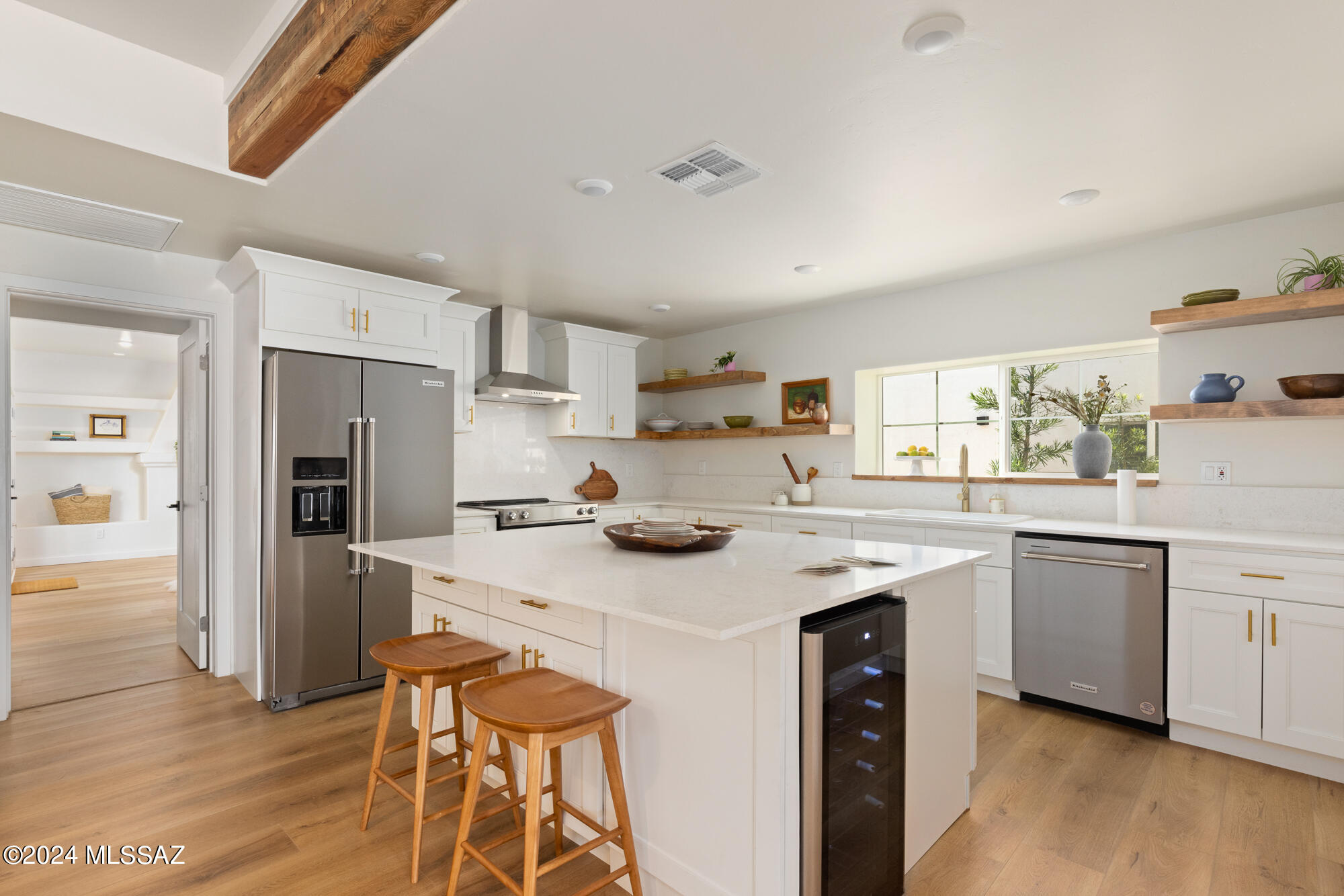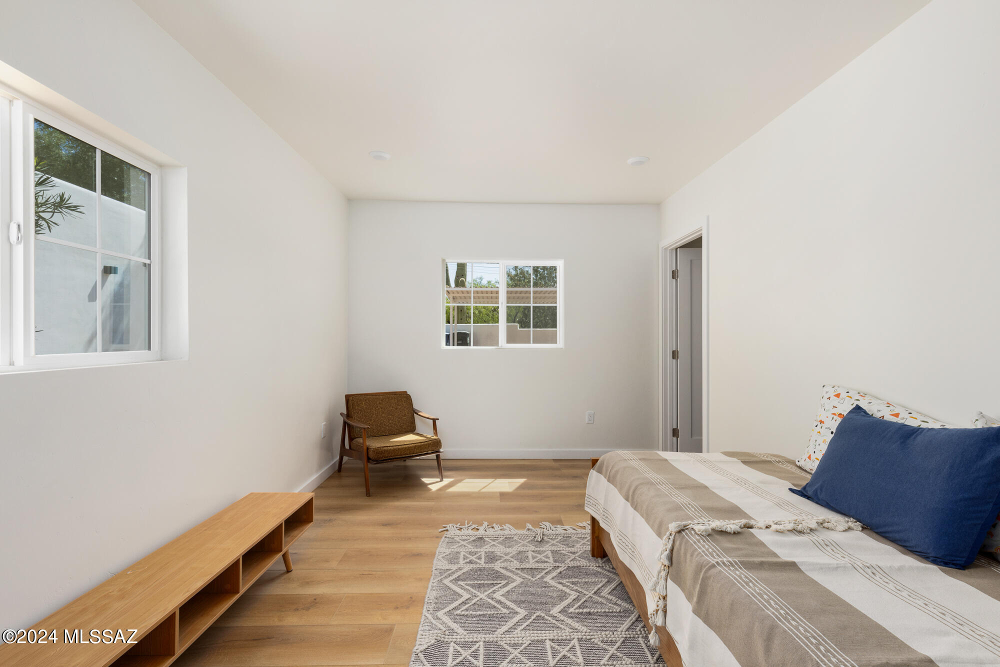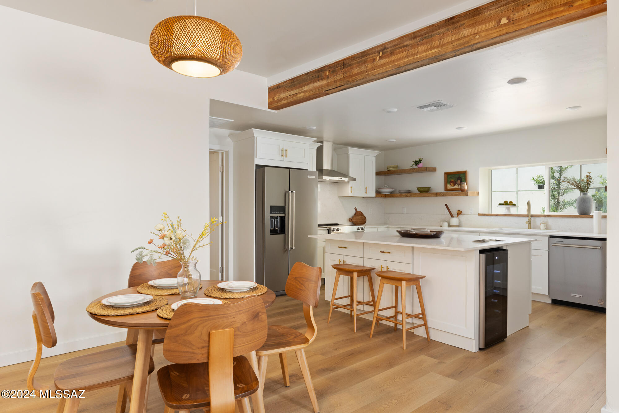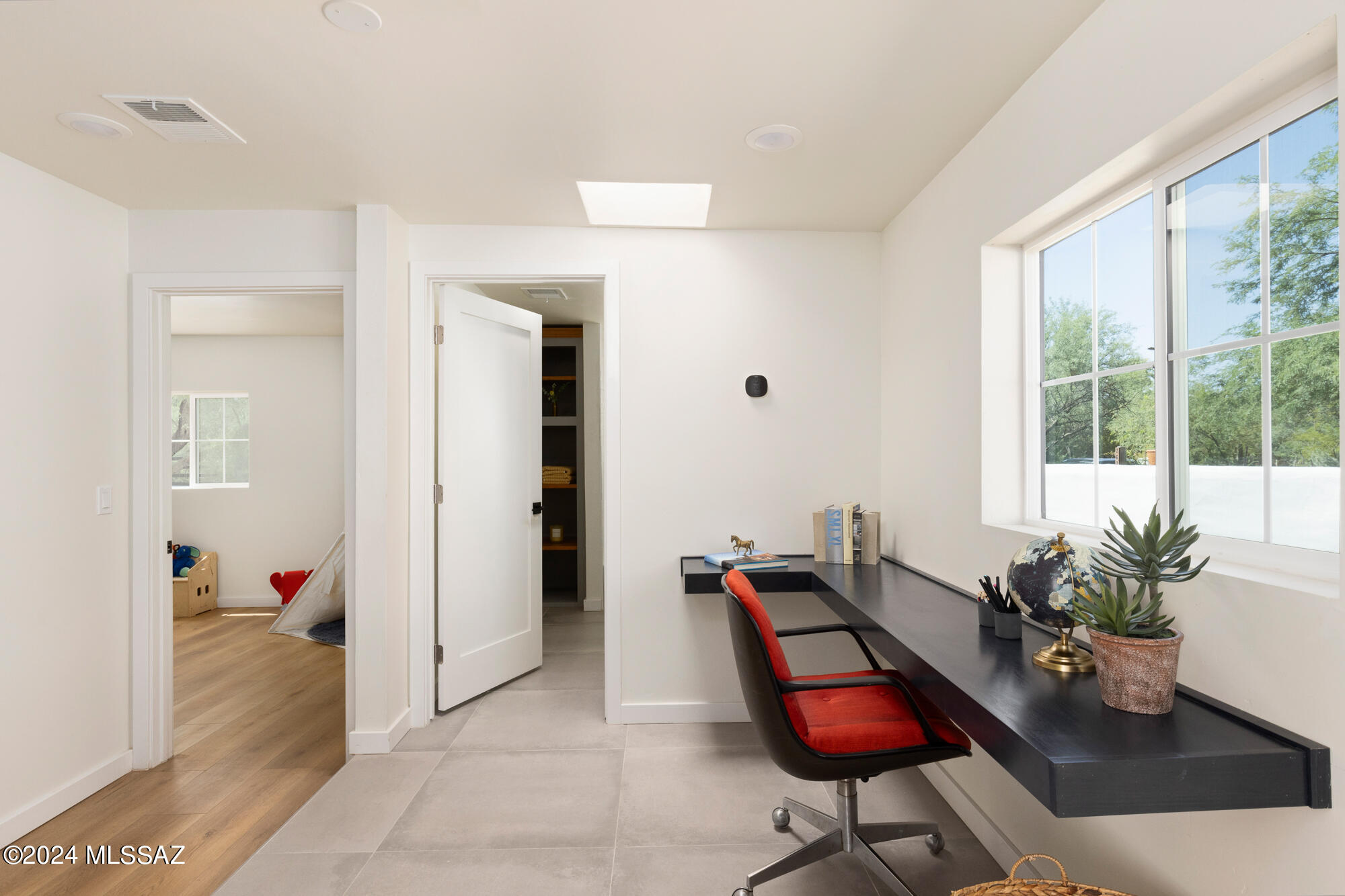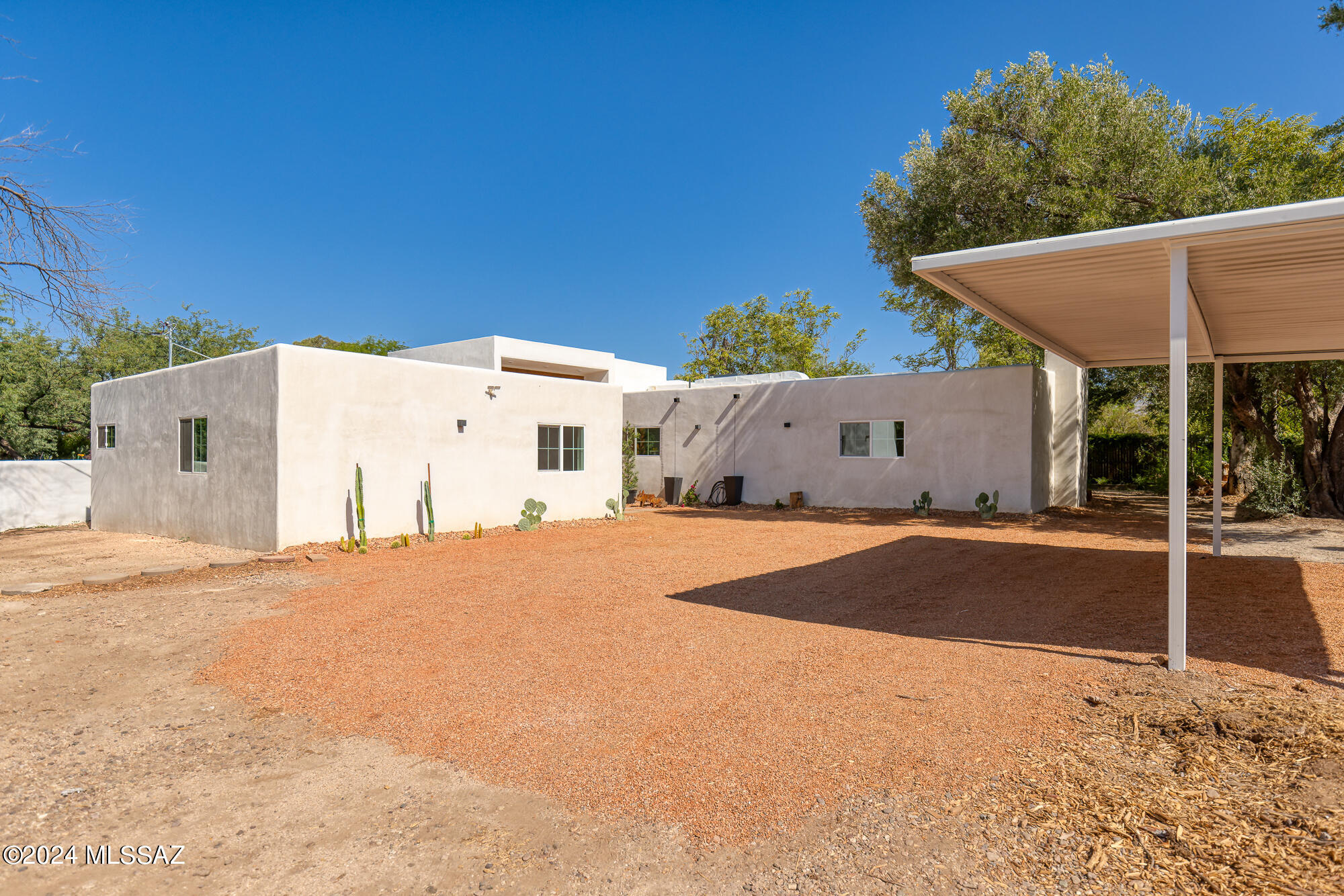 A creative expression blending historical elements, mid-century style and modern features creating a one-of-a-kind property in the heart of Tucson. The original 1947 mud adobe structure and combination of rural & urban provided inspiration for a dynamic architectural team to expand (nearly doubling the space) and reimagine this home. Carefully curated, the design honors the desert, while offering a fresh look & layout that suits today's lifestyle. Starting with the arrival through a beautiful casement entry door leading to a dramatic entry, everything here is custom and intentional. Form meets function with an open living space and split floor plan that provides 3 bedrooms, 2 1/2 bathrooms and a pocket office, spanning 2278 sq ft. The materials and design elements are simple, yet elegant. Light filled spaces are dotted with custom millwork, solid wood beams, perfectly positioned skylights, and carefully placed windows that draw the eye to green outside. Made to live and last, you will find large format tile and engineered hardwood on the floors, quartz counters, and soft close cabinetry. Sustainability was also top of mind in maintaining the adobe & masonry walls, adding insulation, installing electric appliances and selecting a light exterior for reflective qualities.