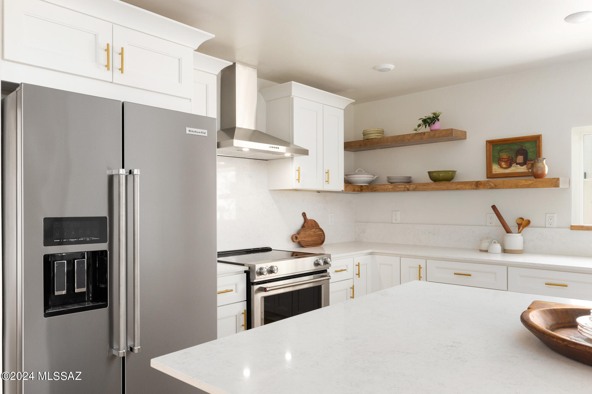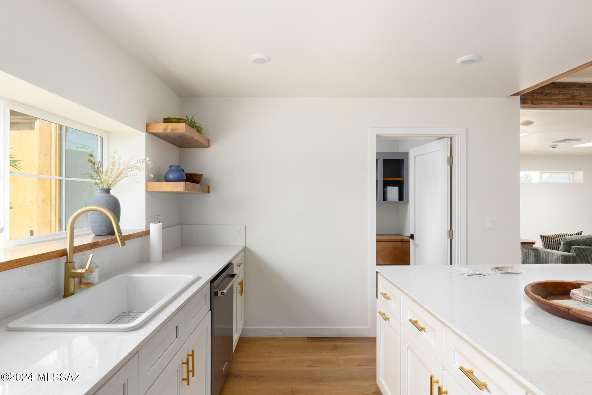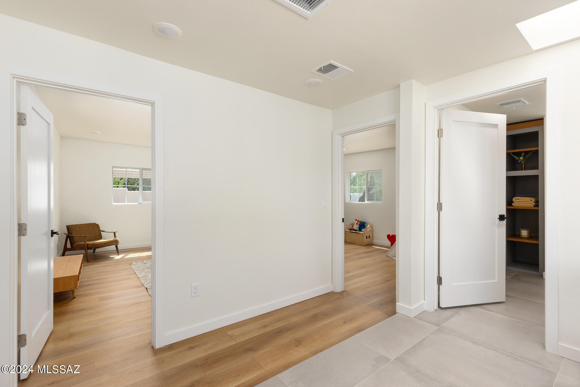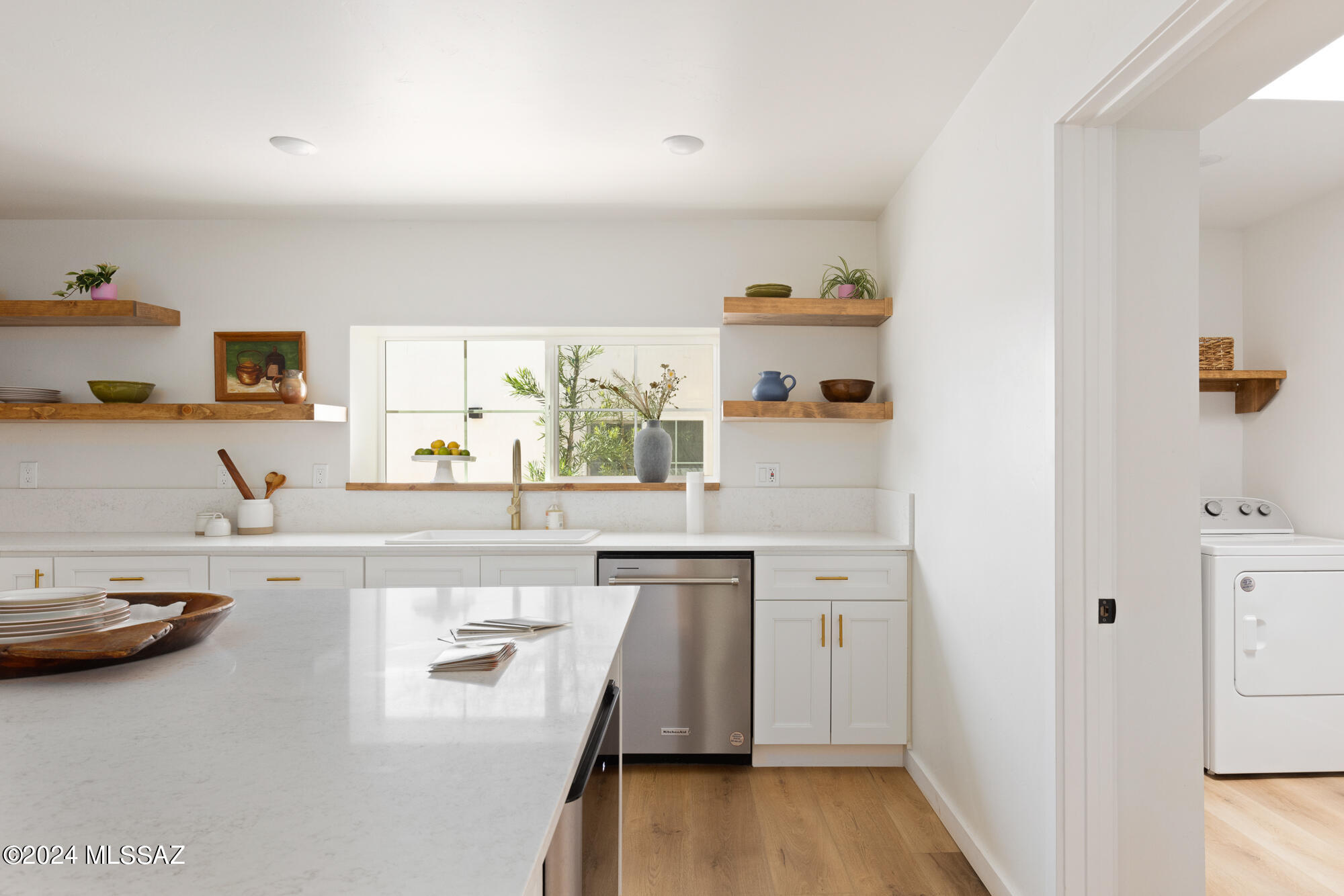 A creative expression blending historical elements, mid-century style and modern features creating a one-of-a-kind property in the heart of Tucson. The original 1947 mud adobe structure and combination of rural & urban provided inspiration for a dynamic architectural team to expand (nearly doubling the space) and reimagine this home. Carefully curated, the design honors the desert, while offering a fresh look & layout that suits today's lifestyle. Starting with the arrival through a beautiful casement entry door leading to a dramatic entry, everything here is custom and intentional. Form meets function with an open living space and split floor plan that provides 3 bedrooms, 2 1/2 bathrooms and a pocket office, spanning 2278 sq ft. The materials and design elements are simple, yet elegant. Light filled spaces are dotted with custom millwork, solid wood beams, perfectly positioned skylights, and carefully placed windows that draw the eye to green outside. Made to live and last, you will find large format tile and engineered hardwood on the floors, quartz counters, and soft close cabinetry. Sustainability was also top of mind in maintaining the adobe & masonry walls, adding insulation, installing electric appliances and selecting a light exterior for reflective qualities.