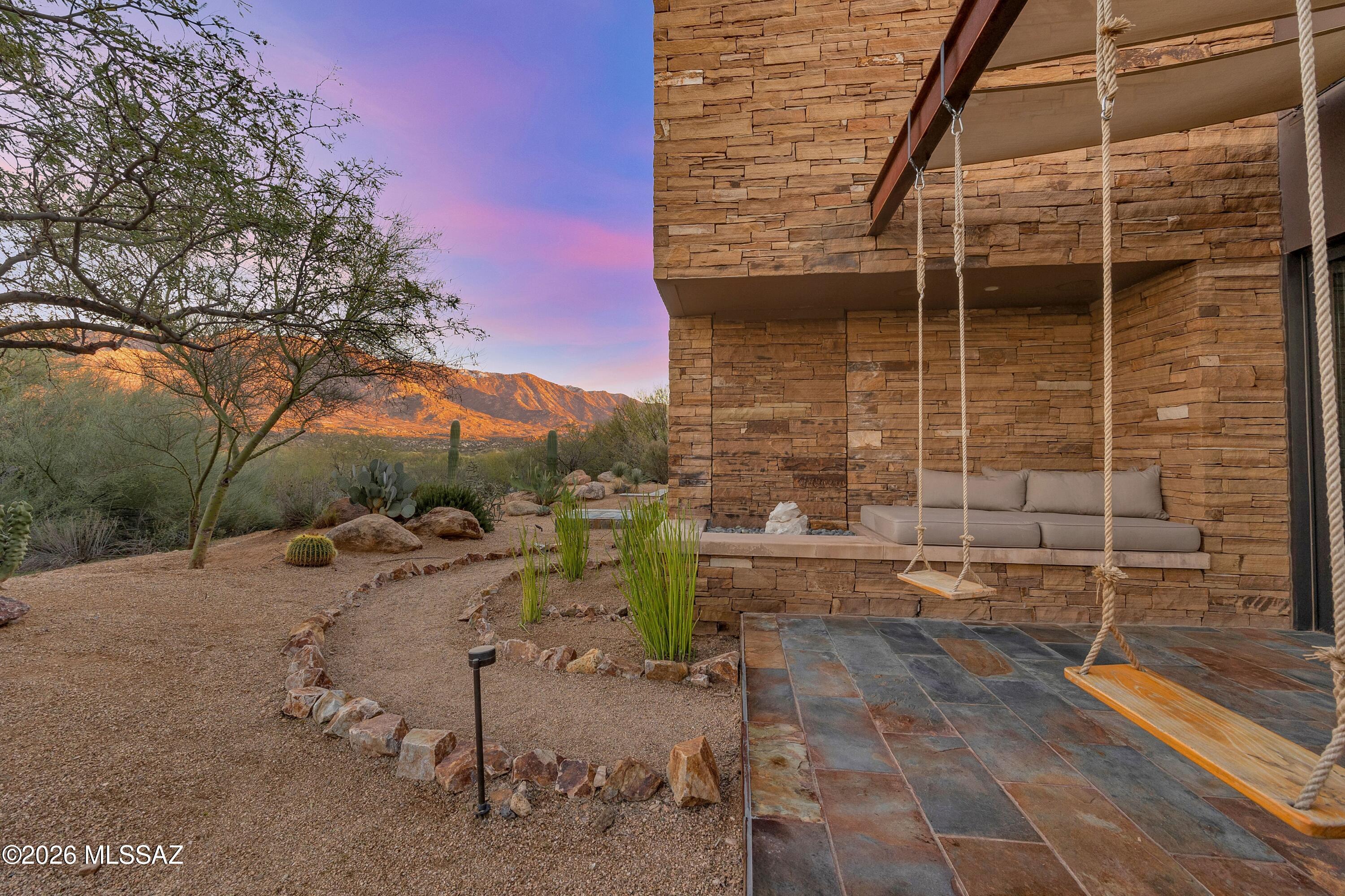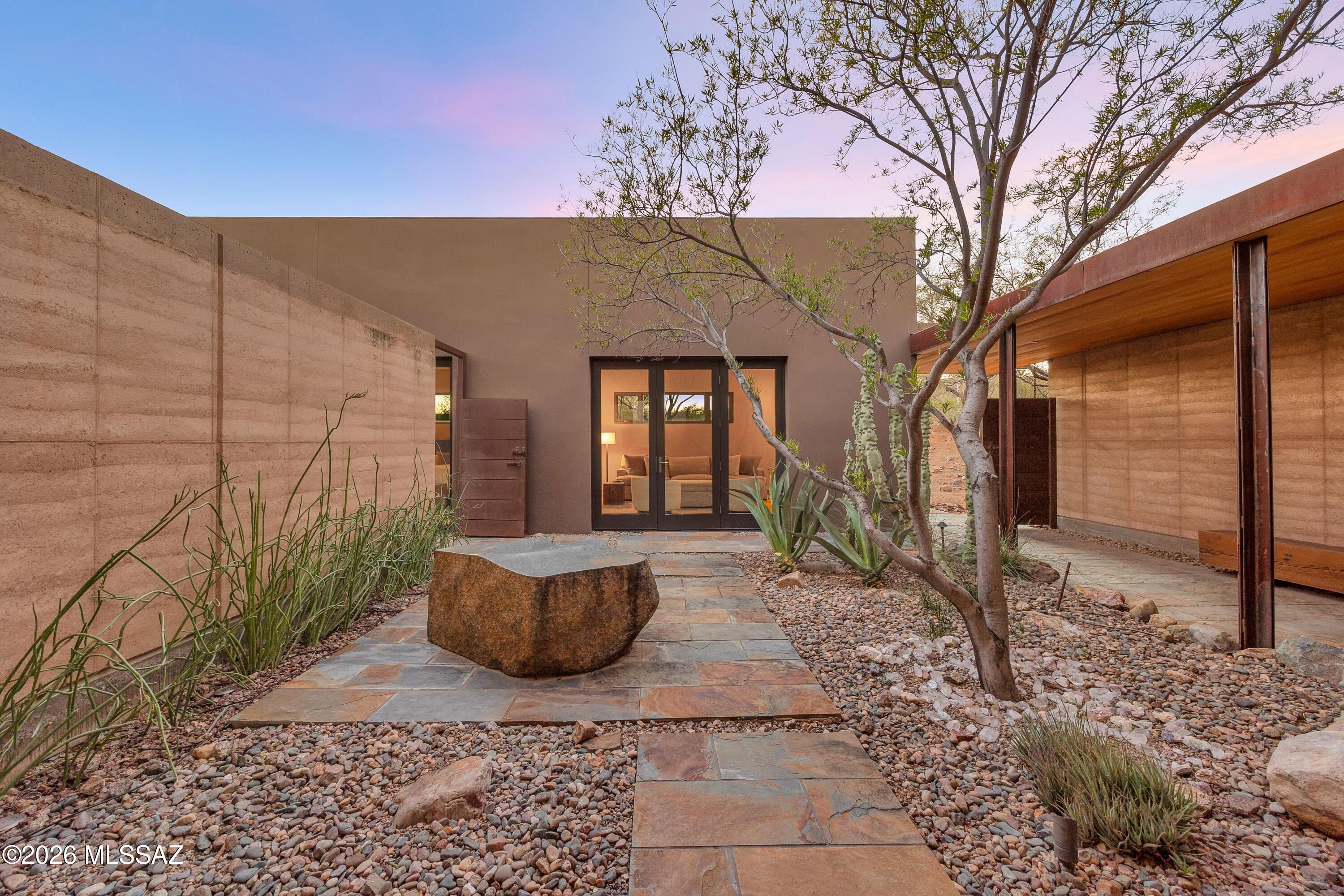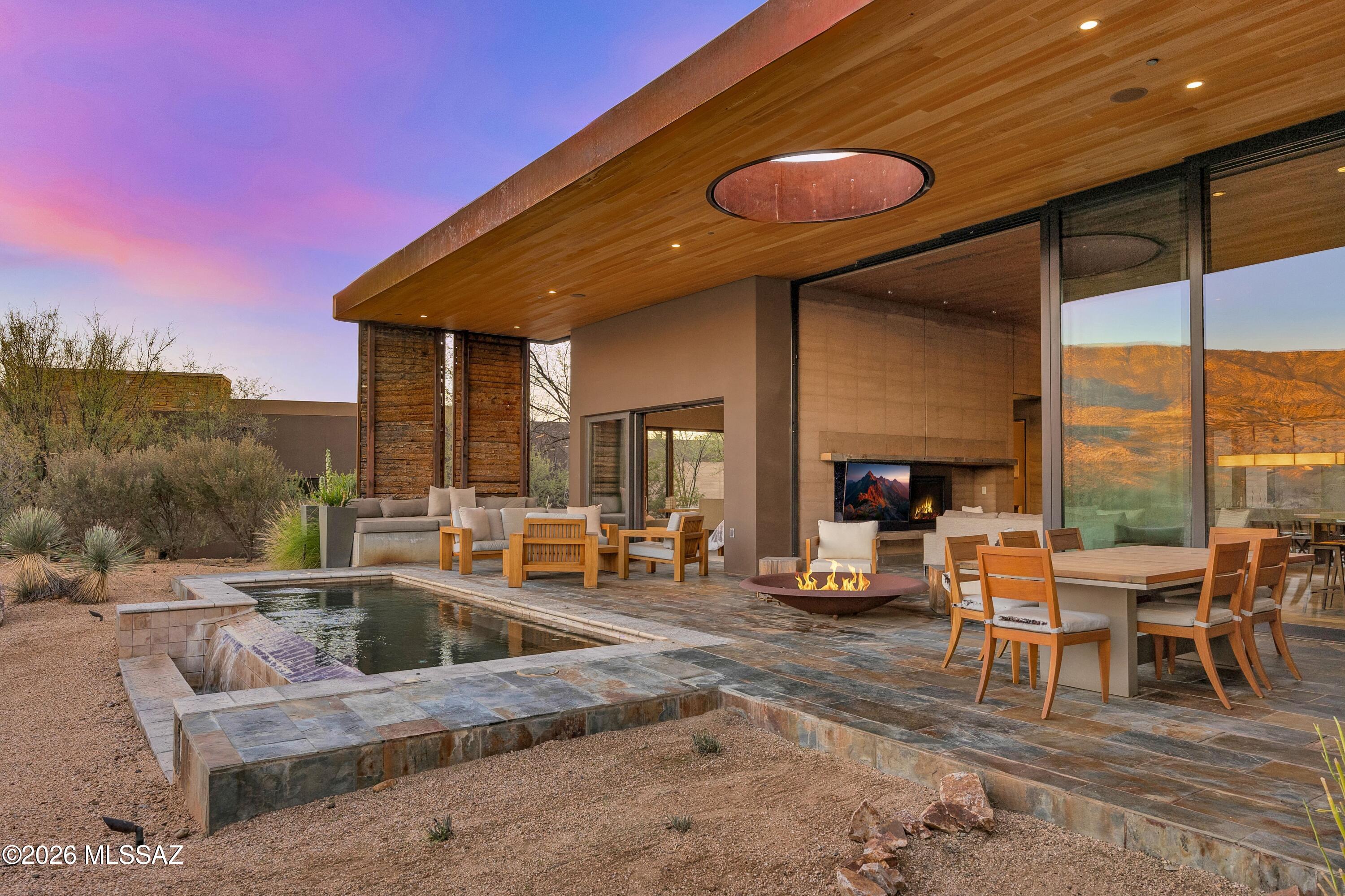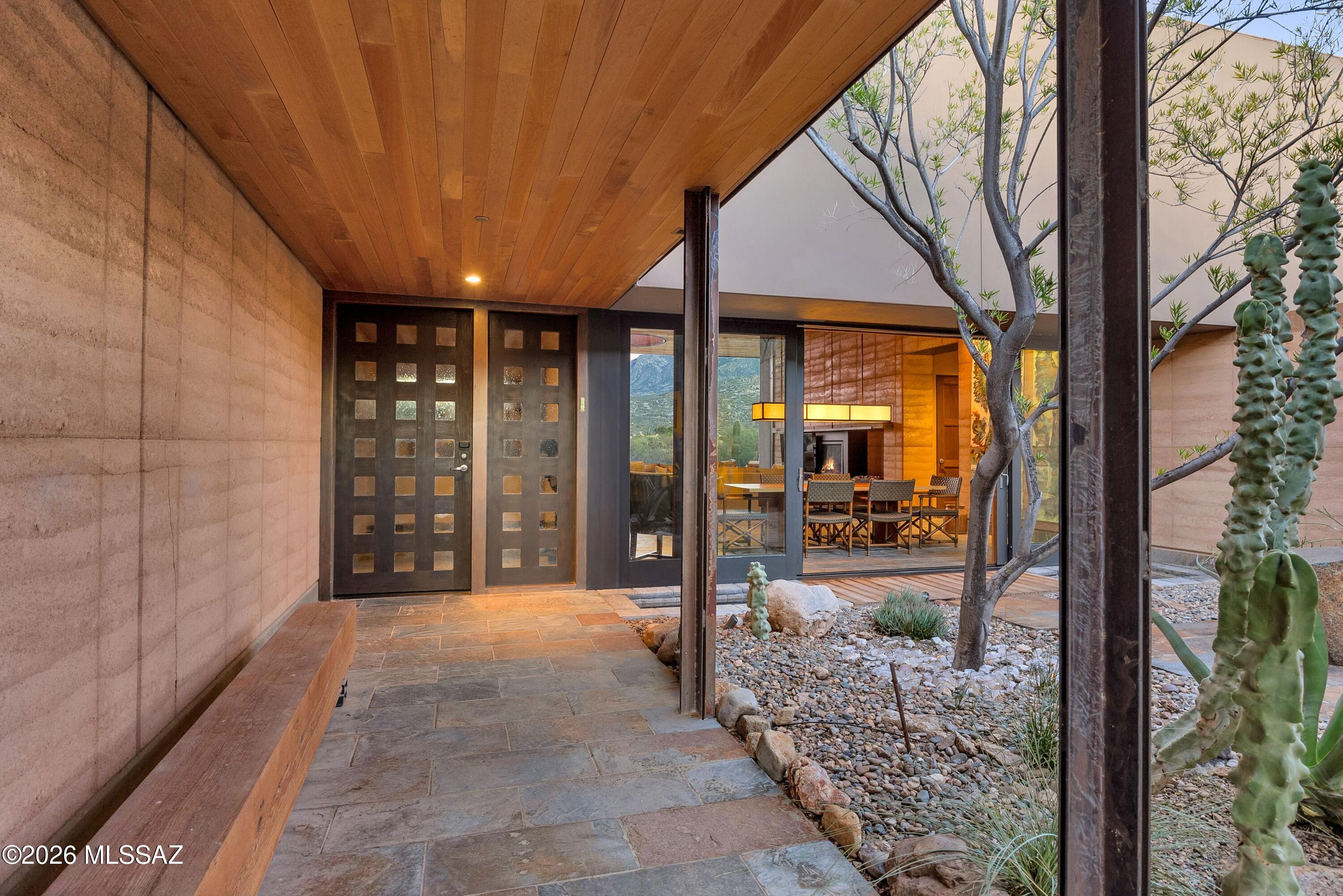 Welcome to your private wellness sanctuary, tucked away in a small enclave of homes on the grounds of MIRAVAL Resort in Tucson, AZ. This residence and this lifestyle are distinctly different. Here, you hit the pause button and recharge. With the amenities of a world class destination spa at your doorstep, it's easy to do. Created by the forward-thinking minds at MITHUN of Seattle, this home intentionally feels subdued from the approach, while offering a powerful experience upon entering. Blending with the earth and honoring the desert were top of mind for a sustainable build. Awarded Silver LEED status from the Green Building Council, the property integrates materials, textures and colors that speak to the surrounding landscape. Seamlessly blending indoors and out, with unobstructed views of the Catalina Mountains, this setting invites you to relax, breathe and connect with nature. Layers of the desert unveil themselves as light moves throughout the day. This is truly a place that allows the mind to clear and opens space for creative thoughts.