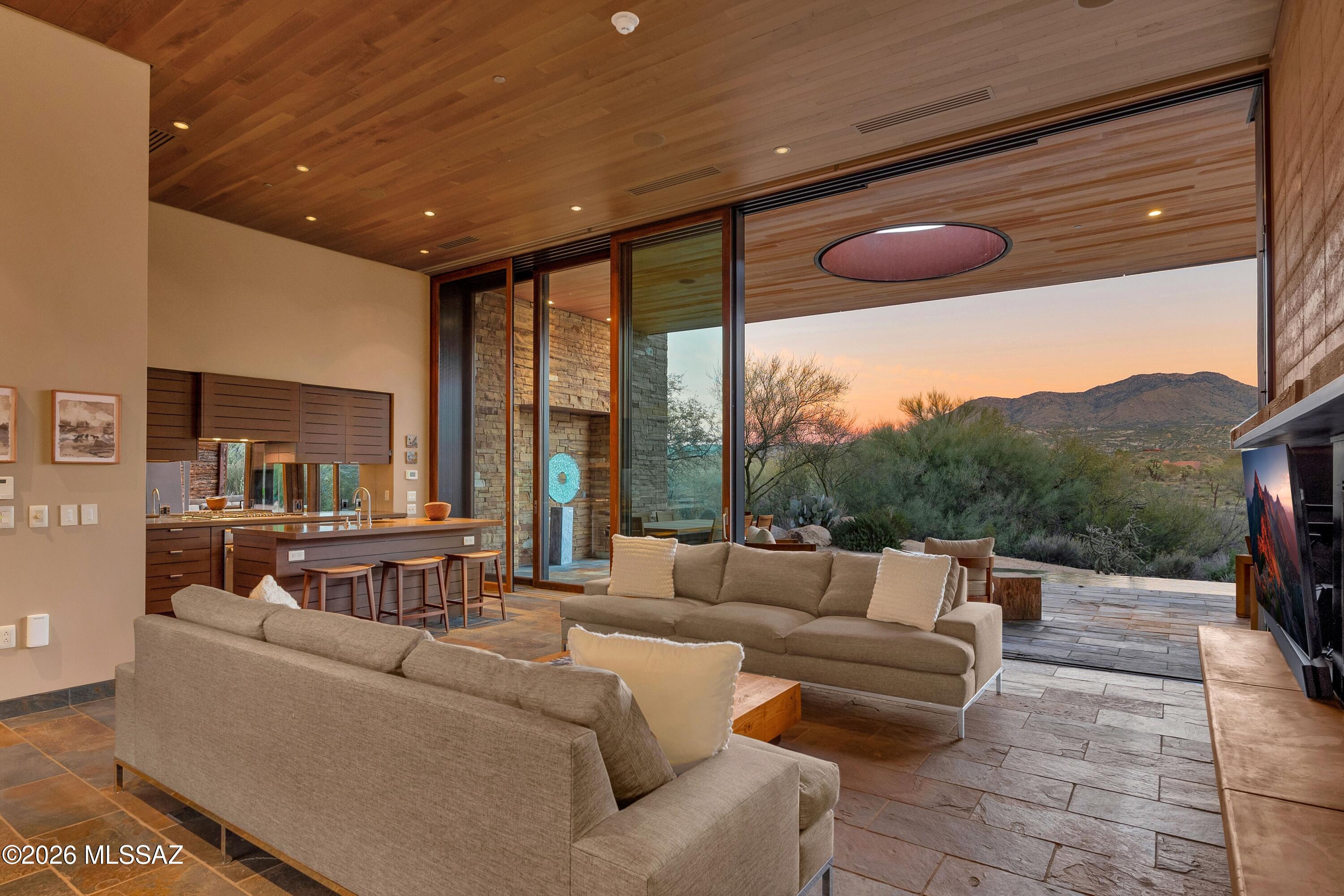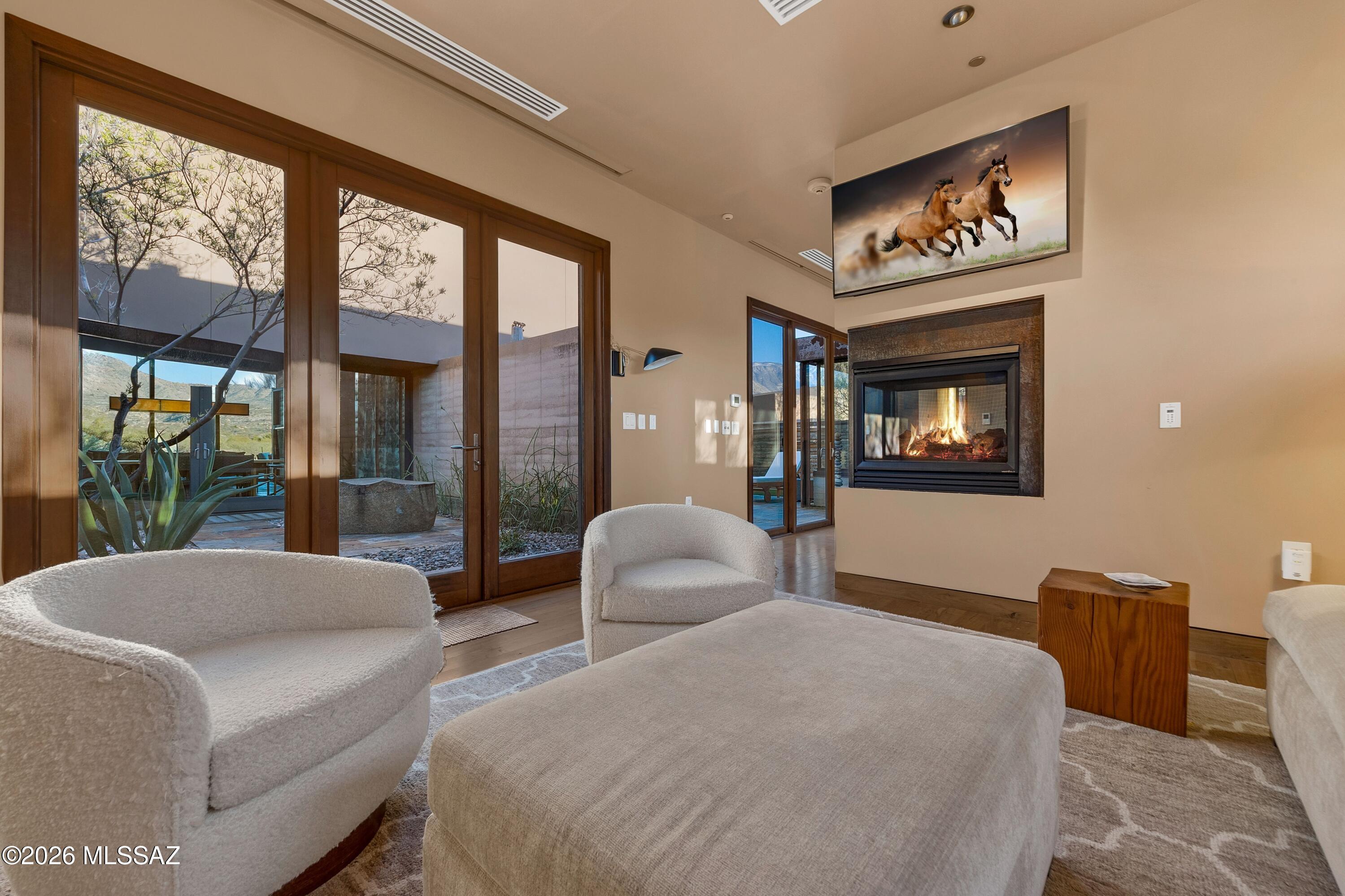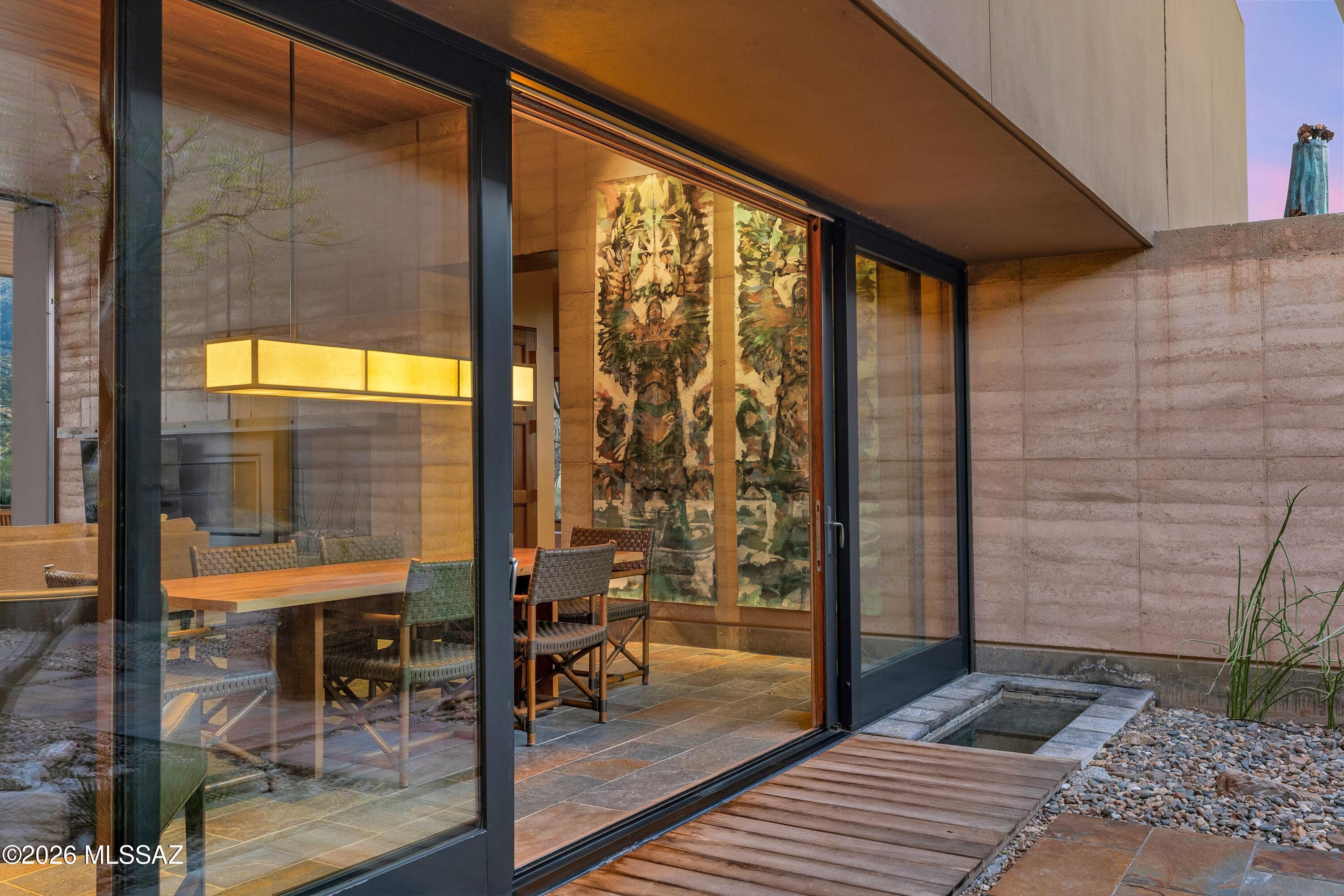 Welcome to your private wellness sanctuary, tucked away in a small enclave of homes on the grounds of MIRAVAL Resort in Tucson, AZ. This residence and this lifestyle are distinctly different. Here, you hit the pause button and recharge. With the amenities of a world class destination spa at your doorstep, it's easy to do. Created by the forward-thinking minds at MITHUN of Seattle, this home intentionally feels subdued from the approach, while offering a powerful experience upon entering. Blending with the earth and honoring the desert were top of mind for a sustainable build. Awarded Silver LEED status from the Green Building Council, the property integrates materials, textures and colors that speak to the surrounding landscape. Seamlessly blending indoors and out, with unobstructed views of the Catalina Mountains, this setting invites you to relax, breathe and connect with nature. Layers of the desert unveil themselves as light moves throughout the day. This is truly a place that allows the mind to clear and opens space for creative thoughts.
