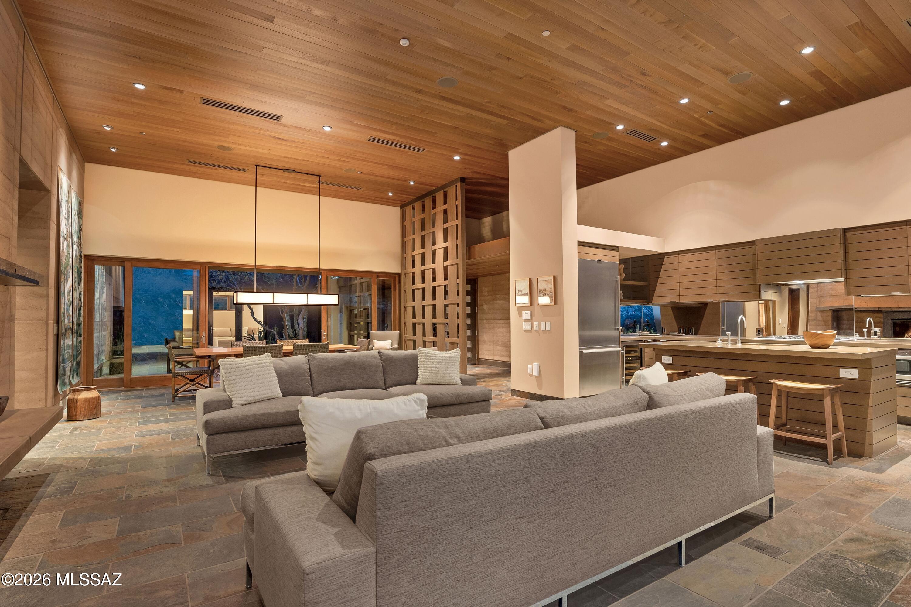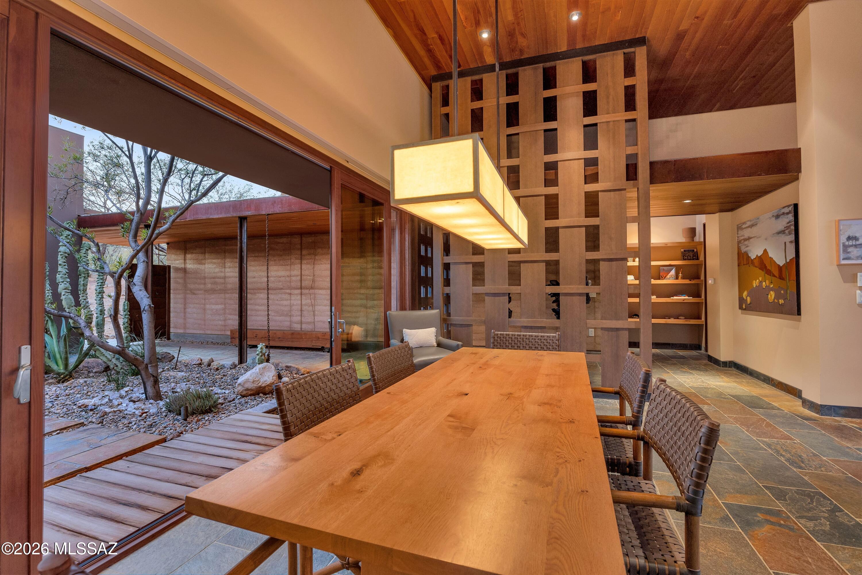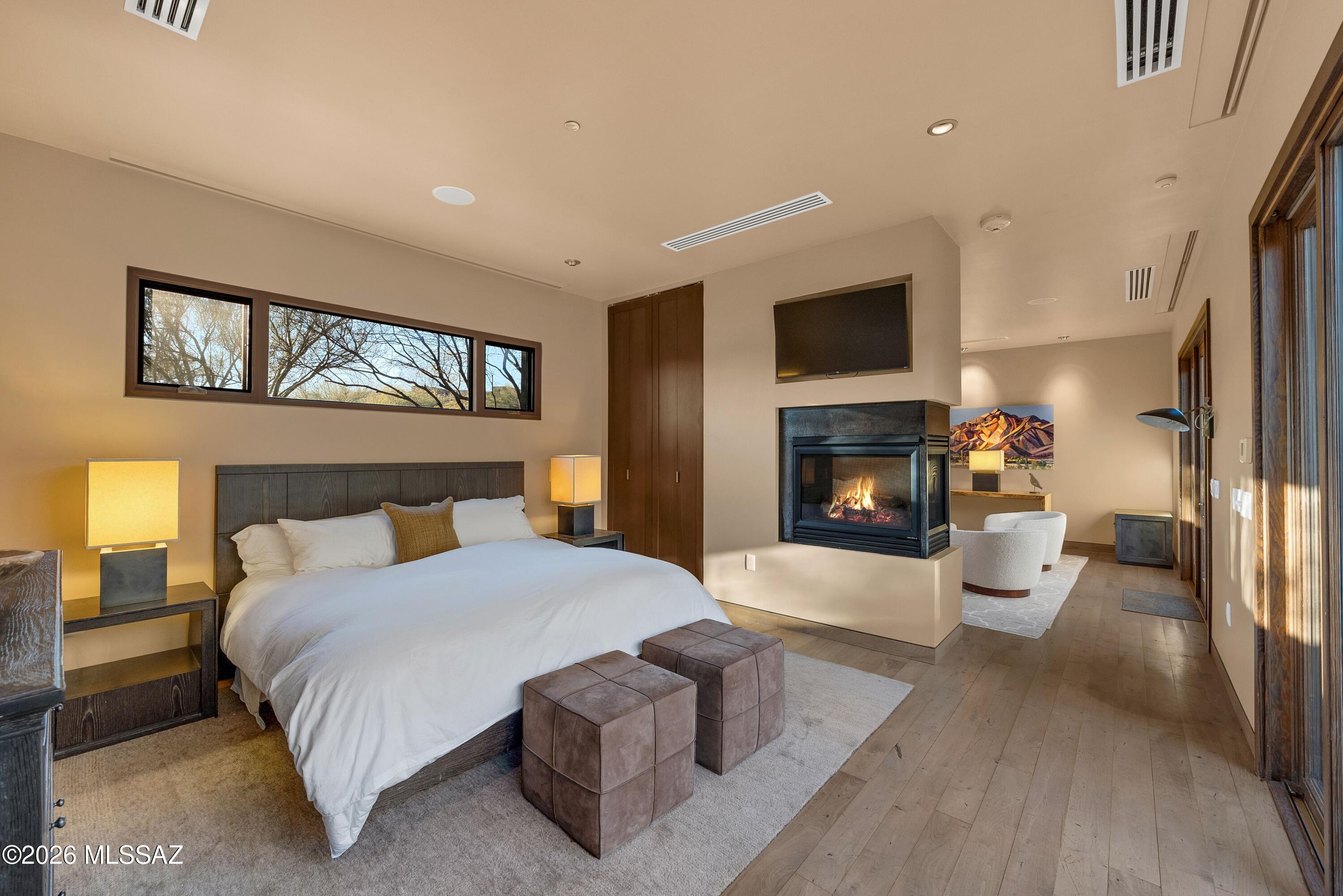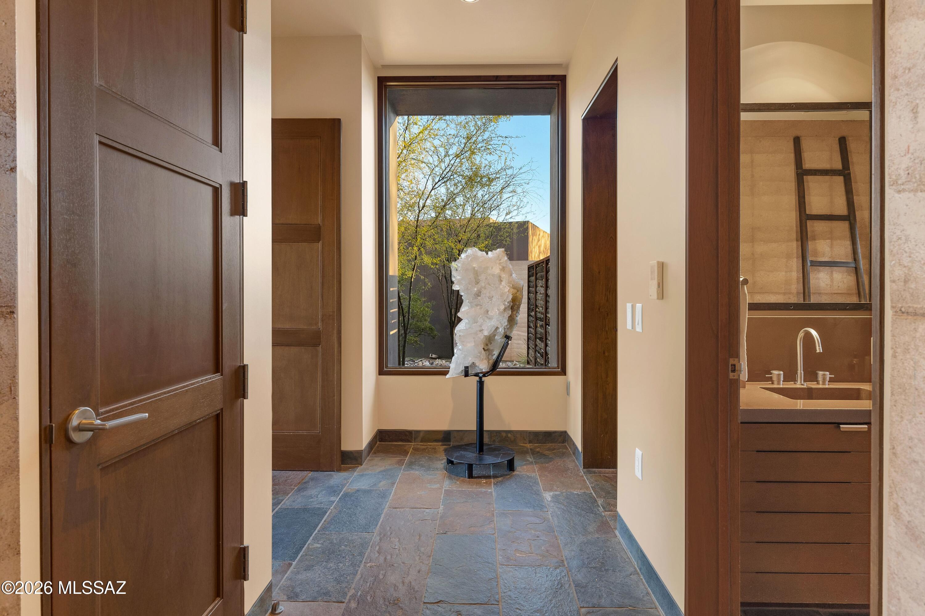 Welcome to your private wellness sanctuary, tucked away in a small enclave of homes on the grounds of MIRAVAL Resort in Tucson, AZ. This residence and this lifestyle are distinctly different. Here, you hit the pause button and recharge. With the amenities of a world class destination spa at your doorstep, it's easy to do. Created by the forward-thinking minds at MITHUN of Seattle, this home intentionally feels subdued from the approach, while offering a powerful experience upon entering. Blending with the earth and honoring the desert were top of mind for a sustainable build. Awarded Silver LEED status from the Green Building Council, the property integrates materials, textures and colors that speak to the surrounding landscape. Seamlessly blending indoors and out, with unobstructed views of the Catalina Mountains, this setting invites you to relax, breathe and connect with nature. Layers of the desert unveil themselves as light moves throughout the day. This is truly a place that allows the mind to clear and opens space for creative thoughts.