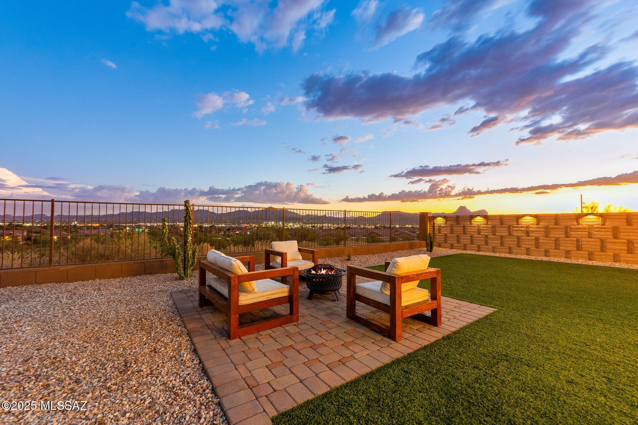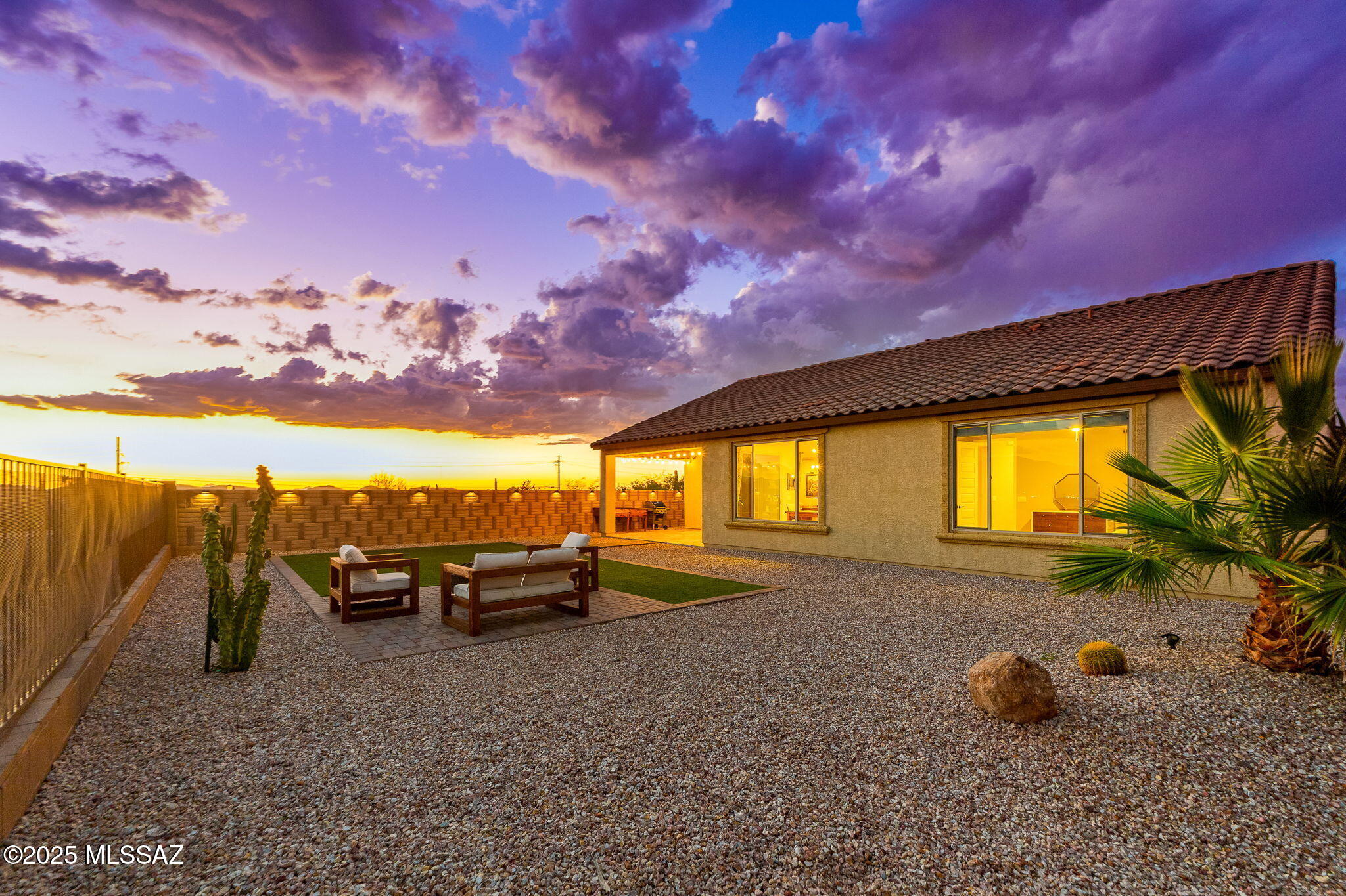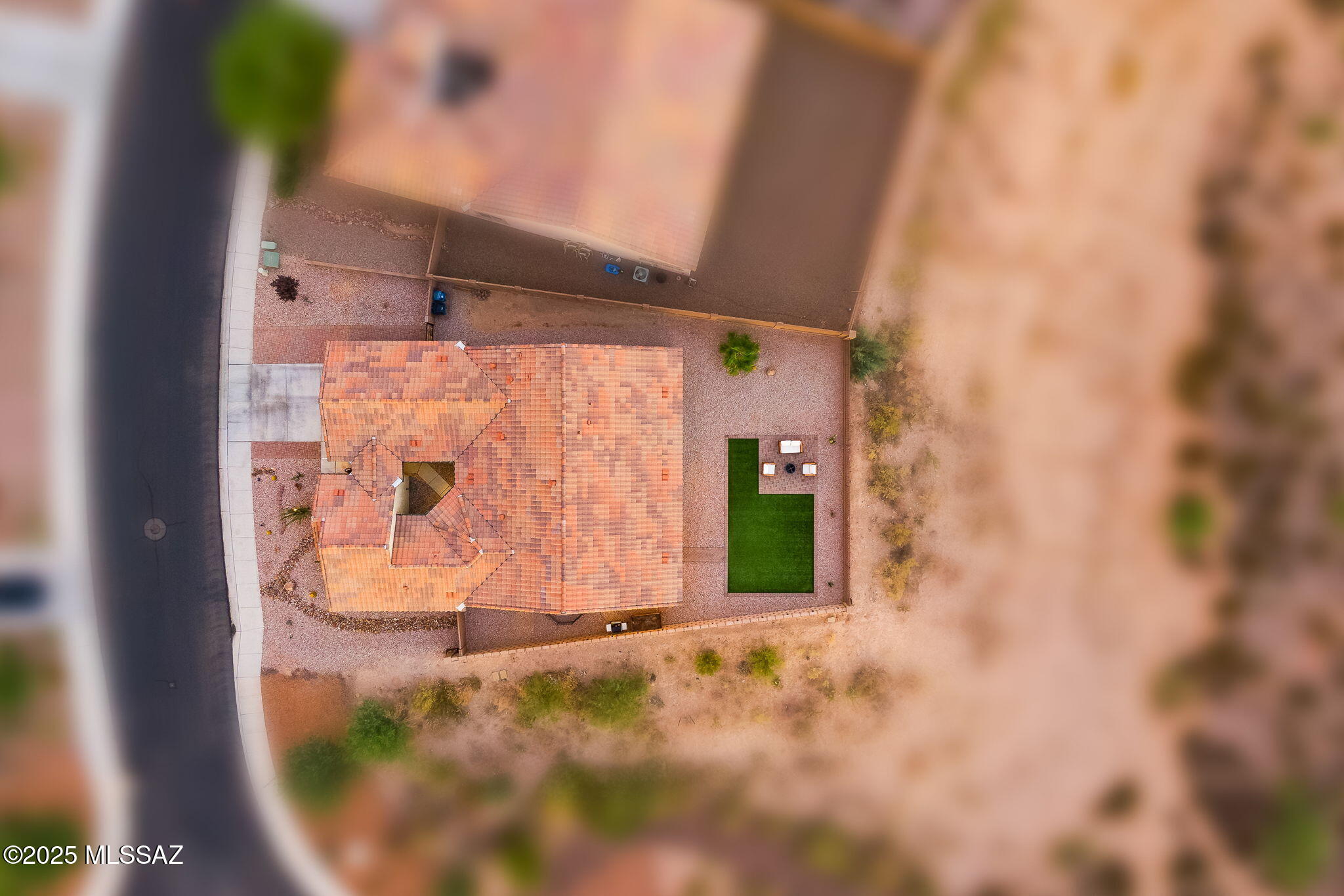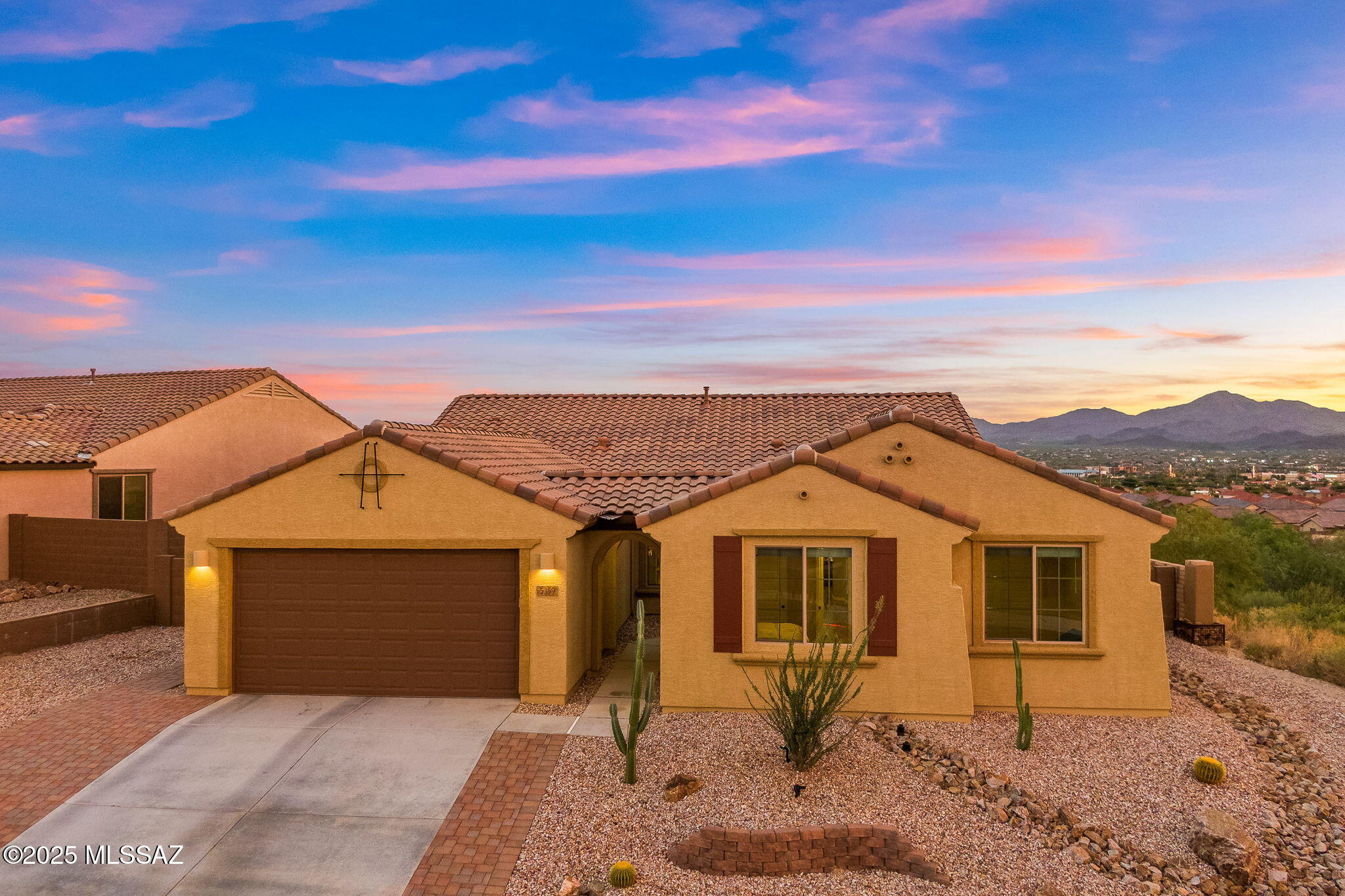 The natural beauty of the desert meets a turn-key residence in an ultra-convenient location at 5359 W Avenida Tierra Alta. Built in 2020, the elevated corner lot abuts open space showcasing incredible views of multiple mountain ranges and colorful Tucson sunsets. This well-appointed home has been meticulously cared for and includes many upgraded features. With 2,458 sq ft on a single story, the split floor plan provides 3 bedrooms, 2 1/2 bathrooms, a separate den. Throughout, the quality of the fit and finish is noticeable--plank tile floors, highly upgraded cabinetry, stone accents, granite countertops and custom woodwork. The kitchen is a chef's delight featuring abundant counter space, loads of cabinetry, stainless appliances, an undermount sink, and a walk-in pantry. Sliding glass doors from both the great room and dining area create effortless flow to the covered patio finished with travertine tile. Low maintenance, but high impact, the backyard provides the perfect vantage point to enjoy the surrounding beauty. A gas line is available and ready to install a grill, and ample space is available should a pool be desired in the future.