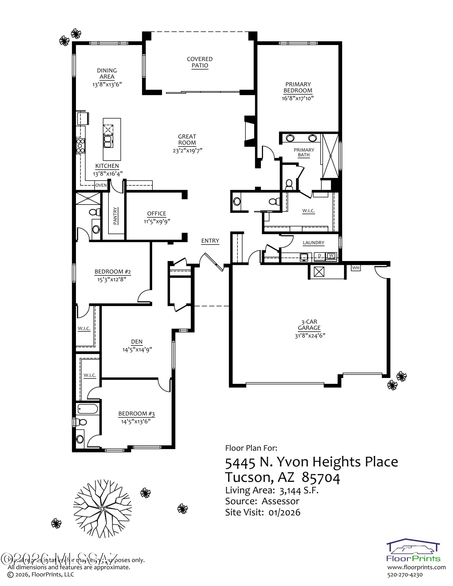 Surrounded by desert on a 1.2-acre parcel with compelling views of the mountains and sunset--yet close to the city center and abundant amenities. 5445 N Yvon Heights Place is tucked away in a small, gated enclave of only 12 homes that blends modern living with surrounding historic charm. With open space on all sides, this lot is private, unique and highly desirable. Completed in 2025, the property is effectively brand new and has been thoughtfully enhanced by the owner. Entering through an oversized glass pivot door, there is clear visual of the Tucson Mountains to the west and Catalina Mountains to the east. Airy spaces with high ceilings are appointed with large format tiles, designer lighting, well positioned windows, and a beautiful blend of neutral tones. The split floor plan includes 3 spacious bedrooms (all with ensuite baths), along with a den, office/flex space, and powder room. Whether the desired use is entertaining or a restful retreat, the layout is perfect for either.