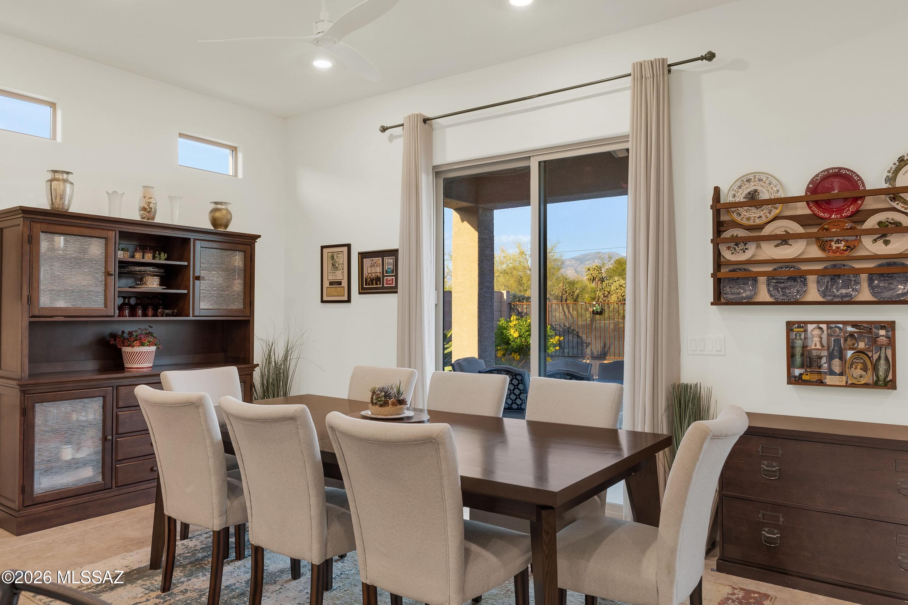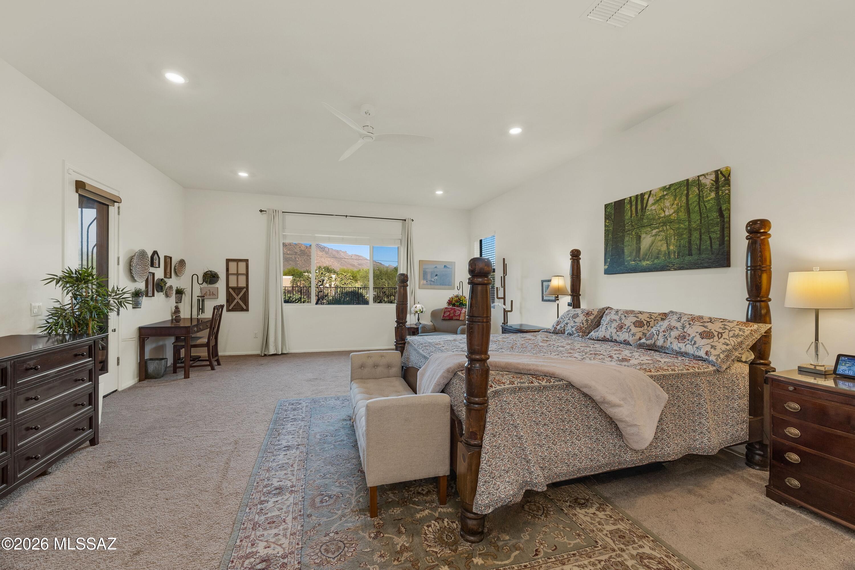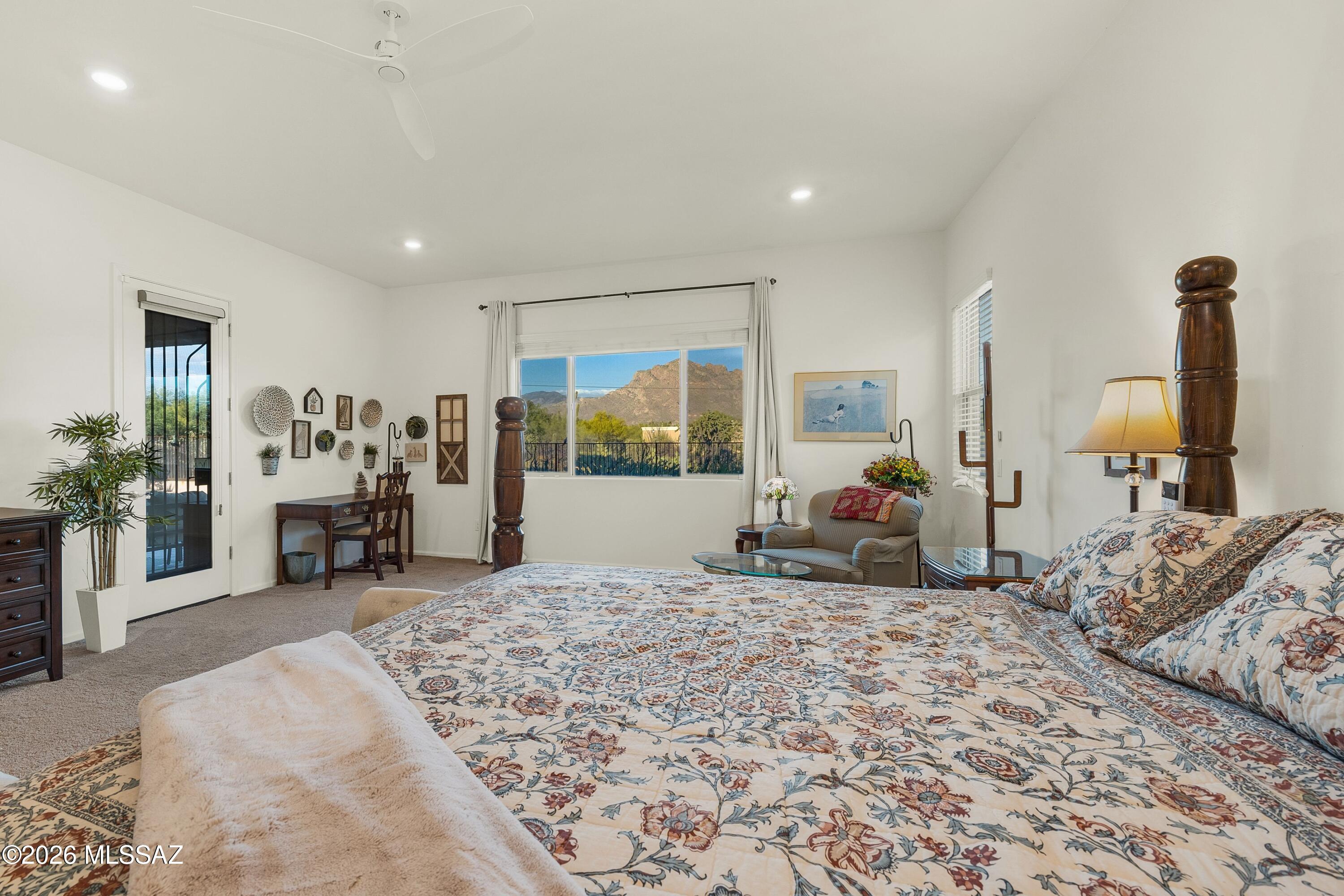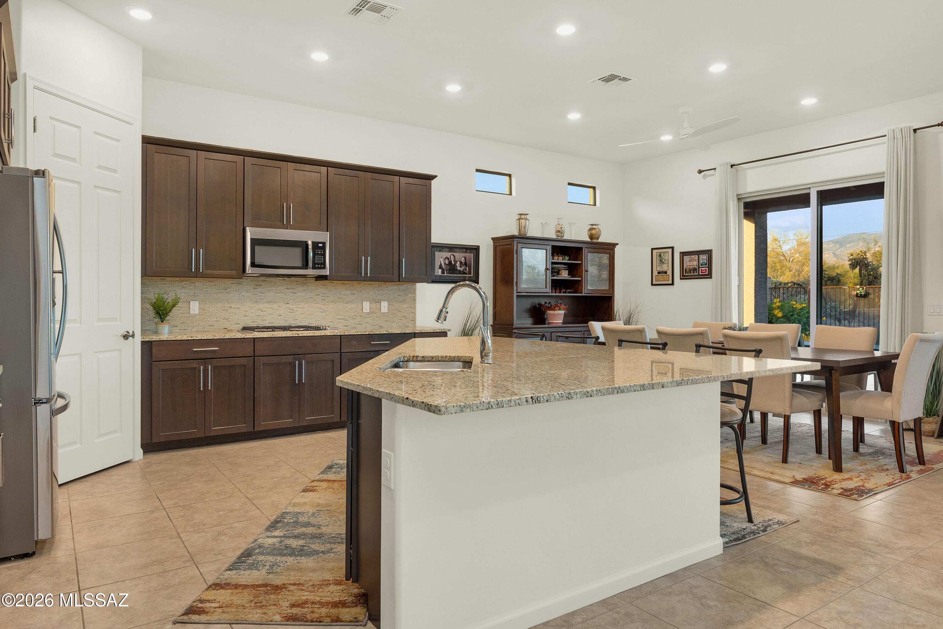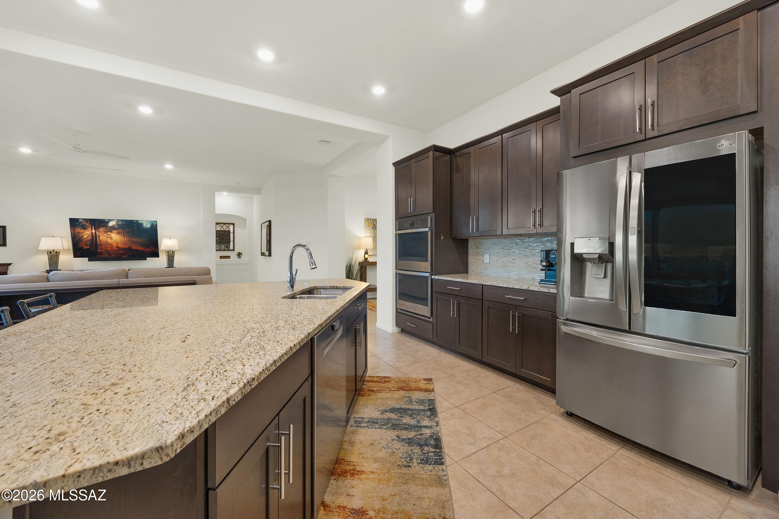 Sitting on an eastern facing lot with compelling views of the Catalina Mountains and open space behind in an incredibly convenient location. While this is a neighborhood setting, the property is surrounded by larger parcels creating a unique setting and experience. Built in 2020, you will find great condition, function and flow. The front entry has been enhanced with metal doors and screening, allowing for fresh air to flow through. Inside, the layout is well designed with a split floor plan and open concept living. The stunning gourmet kitchen includes a spacious island, double ovens, upgraded refrigerator & dishwasher, pull out trash and a walk-in pantry. Drapes add elegance to the living space and double sliding doors create lovely indoor-outdoor flow. Generously sized, the primary suite has space for multiple zones and includes access to the outdoors, while dual walk-in closets provide ample storage.