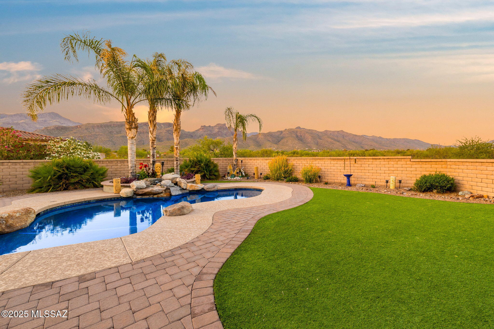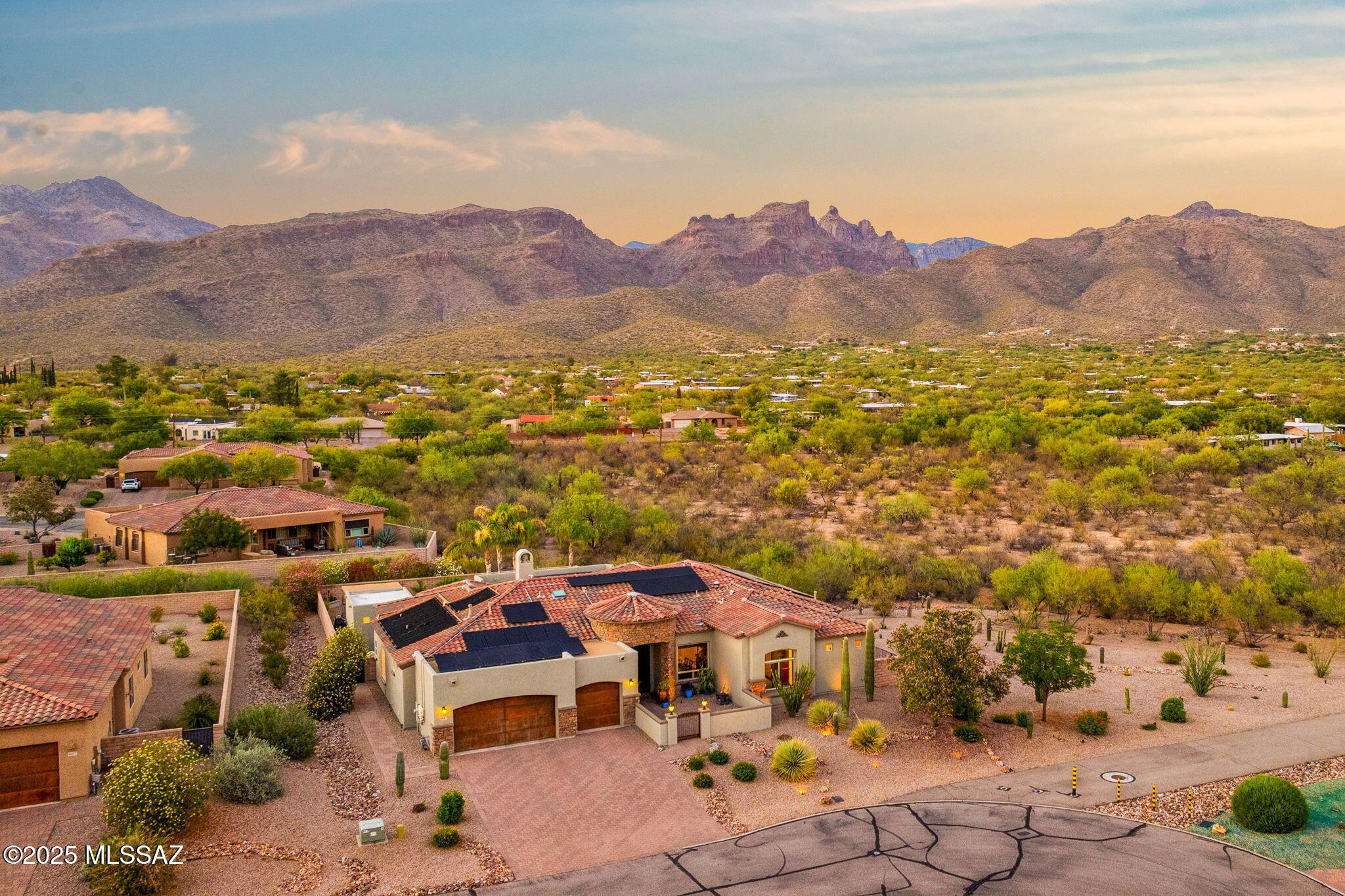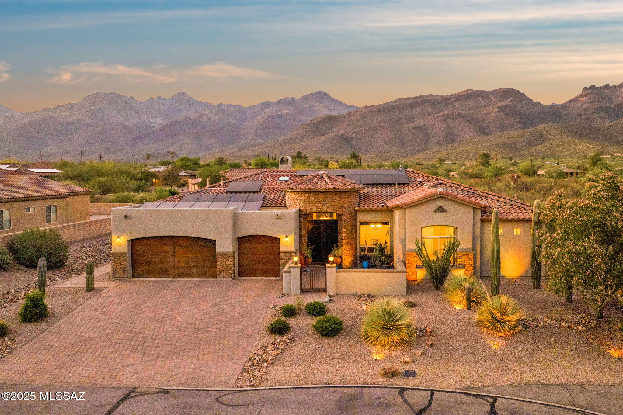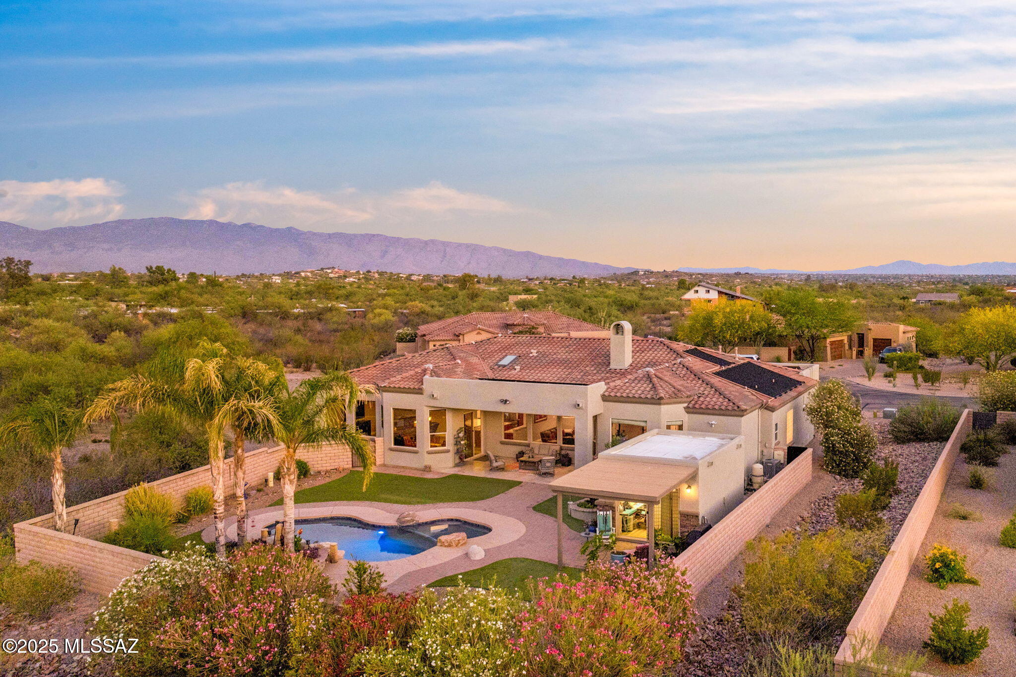 Sitting at the base of the Catalinas with expansive mountain views sits a meticulous residence with an incredible desert lifestyle at your fingertips. Tucked away at the end of a one-way street in the small enclave of Bear Canyon Overlook, the property abuts designated open space to the north and east. The setting is both stunning and quiet. With a 1/2 acre pie-shaped lot, outdoor space on both the north and east side of the parcel has been thoughtfully incorporated into the design. The property includes a 3,541 sq ft home with a 3-car garage and a separate 211 sq ft studio. Solid construction by well-respected local builder AF Sterling was enhanced with improvements made by the owners. Improvements & upgrades include; addition of the studio, a fully owned solar system with 49 panels, solar pool heat, epoxy flooring in the garage, overhead storage, a water softener, and RO drinking water system. With the latest GE cafe appliances, along with fresh exterior and interior paint completed in 2025, the space feels new. Throughout, high ceilings and large windows provide visual pathways to the gorgeous surrounding scenery. A split floor plan with 3 bedrooms, 3 1/2 baths, a separate office, and 2 living spaces, provides function and utility for modern life. The separate heated & cooled studio could have many uses, such as an office, creative space, workshop or gym.