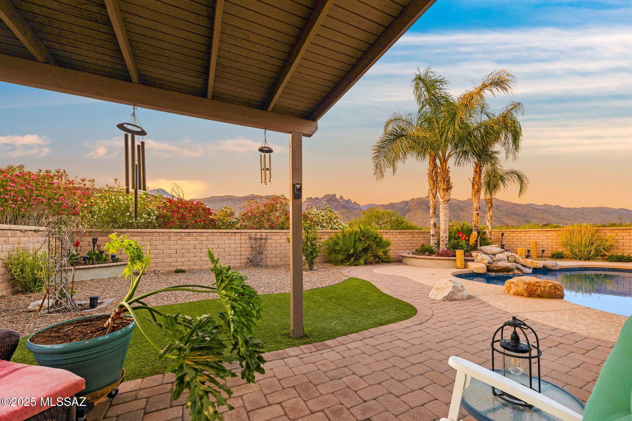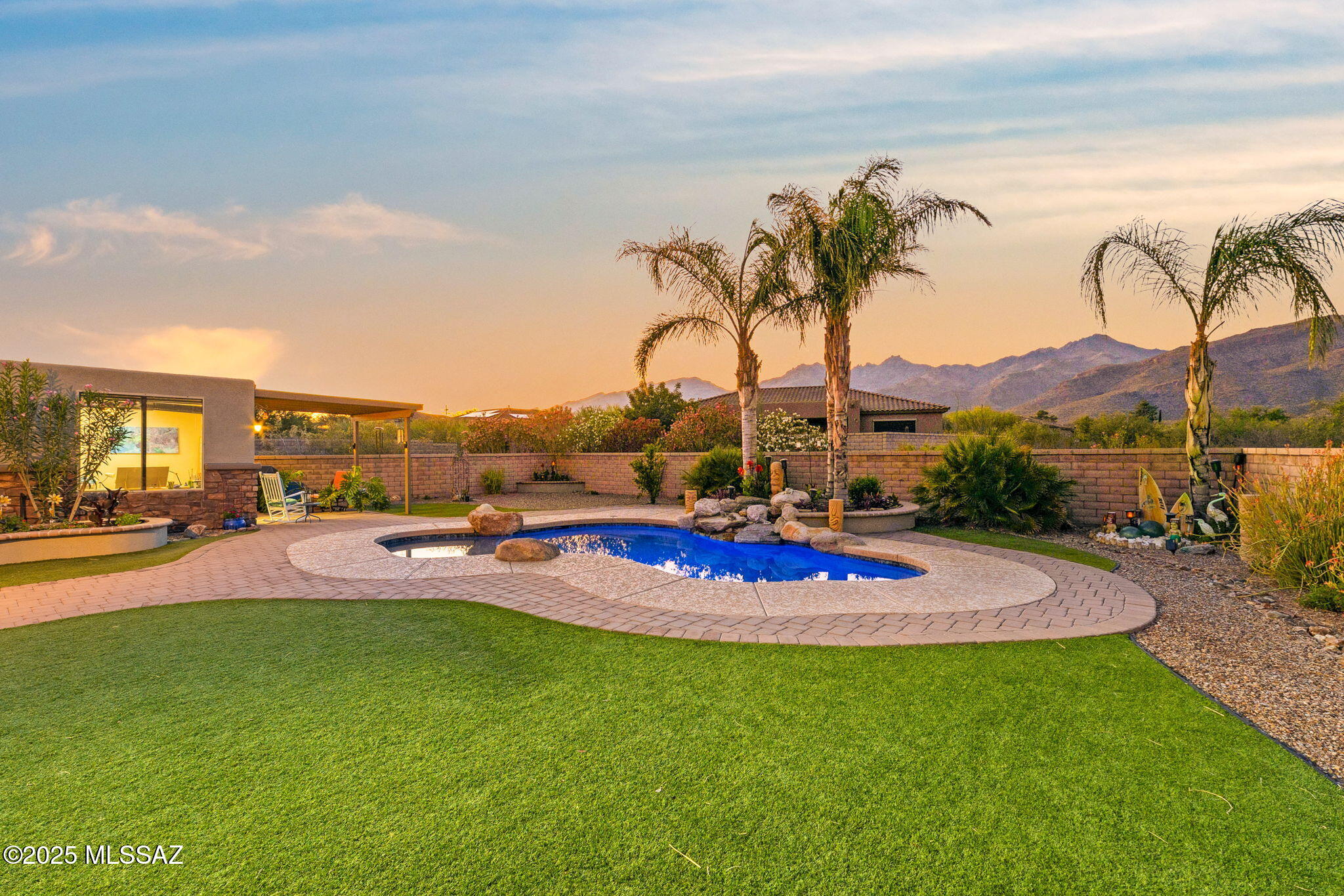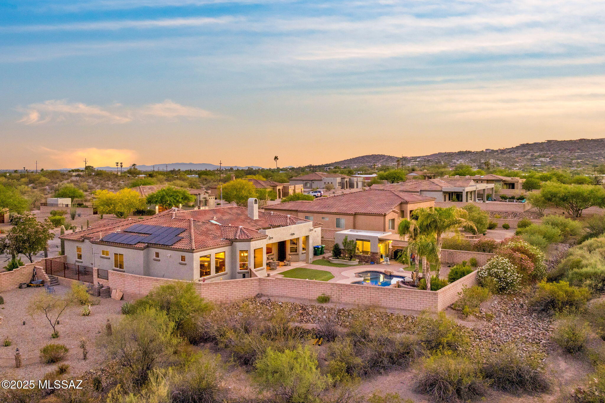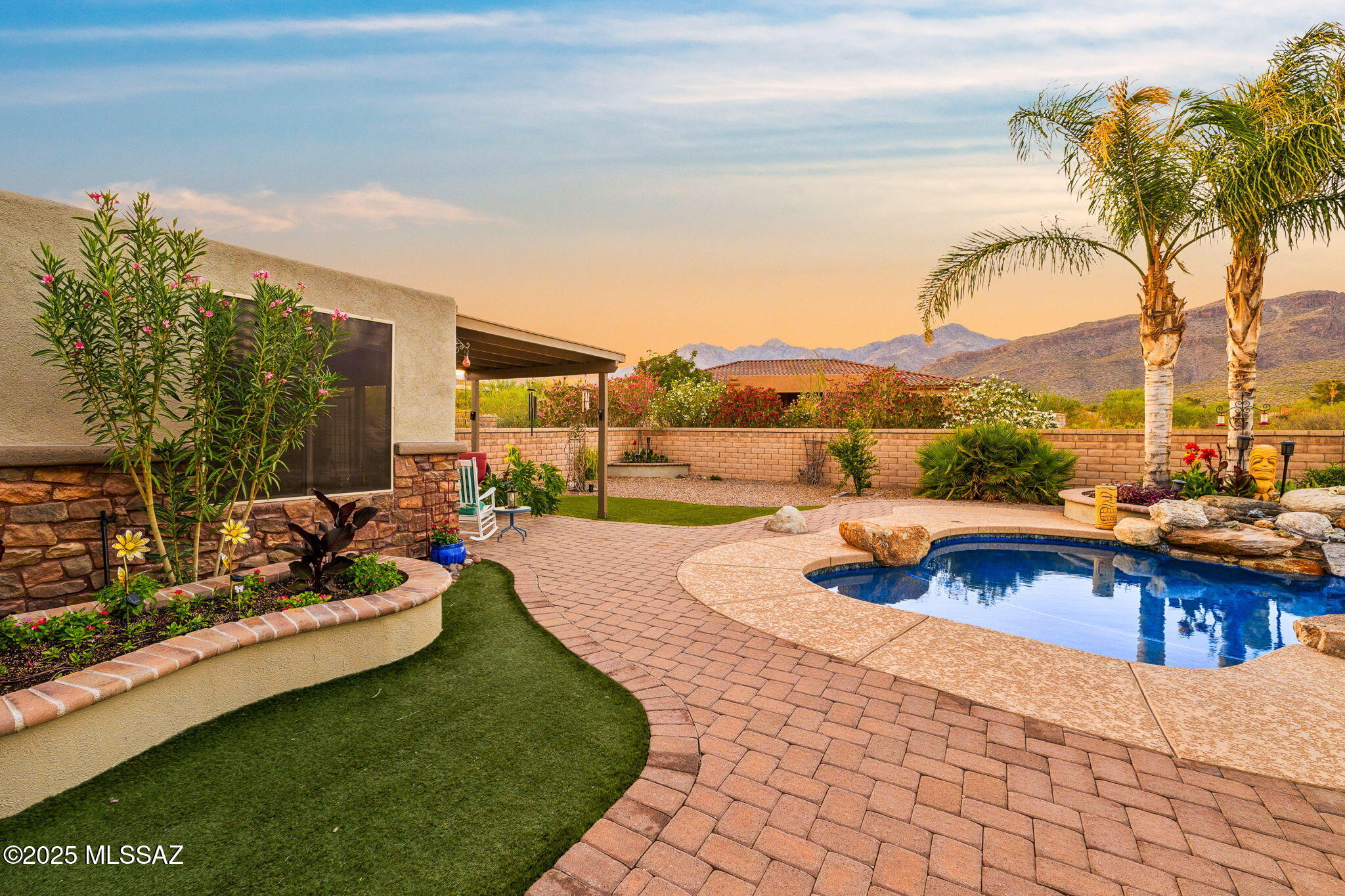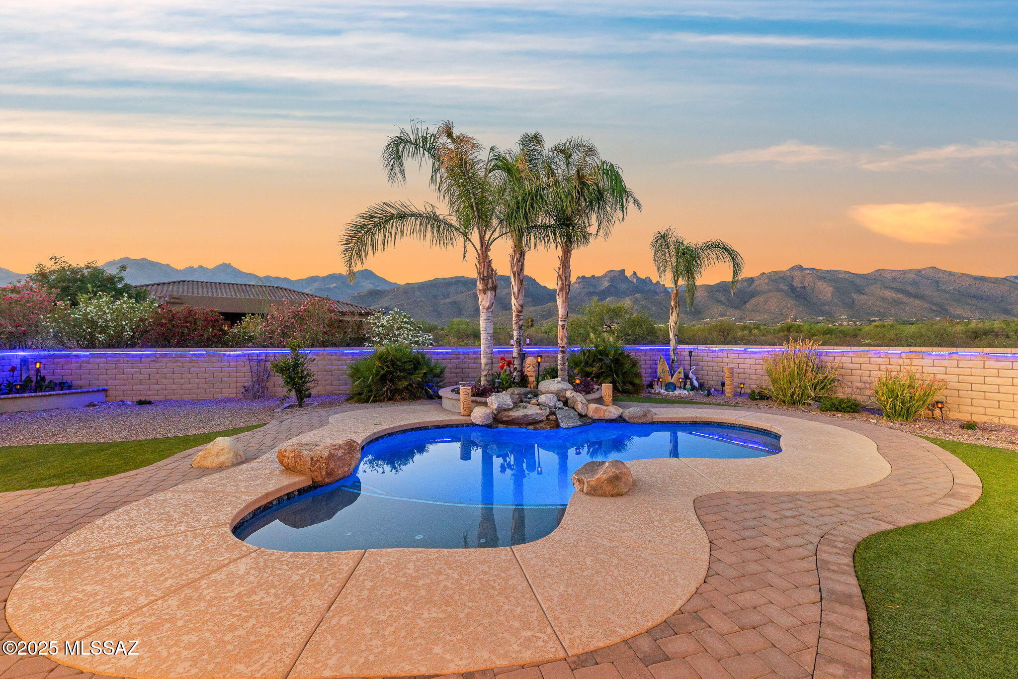 Sitting at the base of the Catalinas with expansive mountain views sits a meticulous residence with an incredible desert lifestyle at your fingertips. Tucked away at the end of a one-way street in the small enclave of Bear Canyon Overlook, the property abuts designated open space to the north and east. The setting is both stunning and quiet. With a 1/2 acre pie-shaped lot, outdoor space on both the north and east side of the parcel has been thoughtfully incorporated into the design. The property includes a 3,541 sq ft home with a 3-car garage and a separate 211 sq ft studio. Solid construction by well-respected local builder AF Sterling was enhanced with improvements made by the owners. Improvements & upgrades include; addition of the studio, a fully owned solar system with 49 panels, solar pool heat, epoxy flooring in the garage, overhead storage, a water softener, and RO drinking water system. With the latest GE cafe appliances, along with fresh exterior and interior paint completed in 2025, the space feels new. Throughout, high ceilings and large windows provide visual pathways to the gorgeous surrounding scenery. A split floor plan with 3 bedrooms, 3 1/2 baths, a separate office, and 2 living spaces, provides function and utility for modern life. The separate heated & cooled studio could have many uses, such as an office, creative space, workshop or gym.