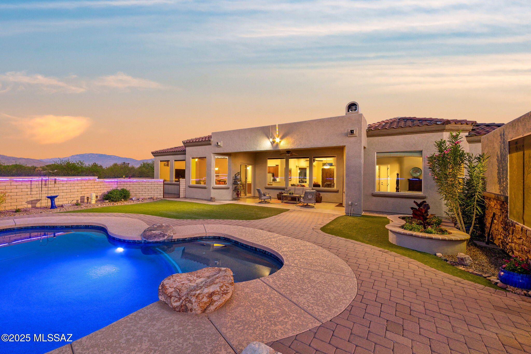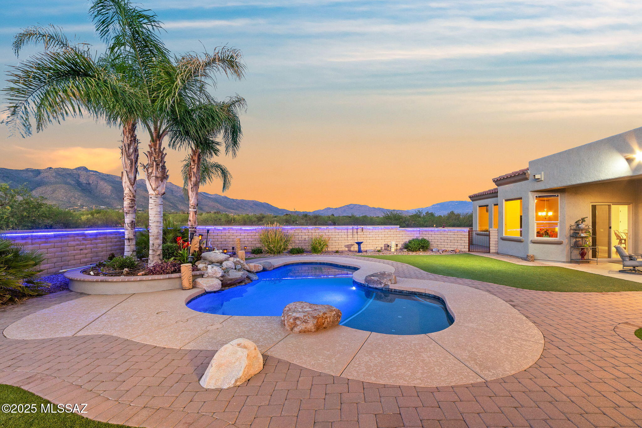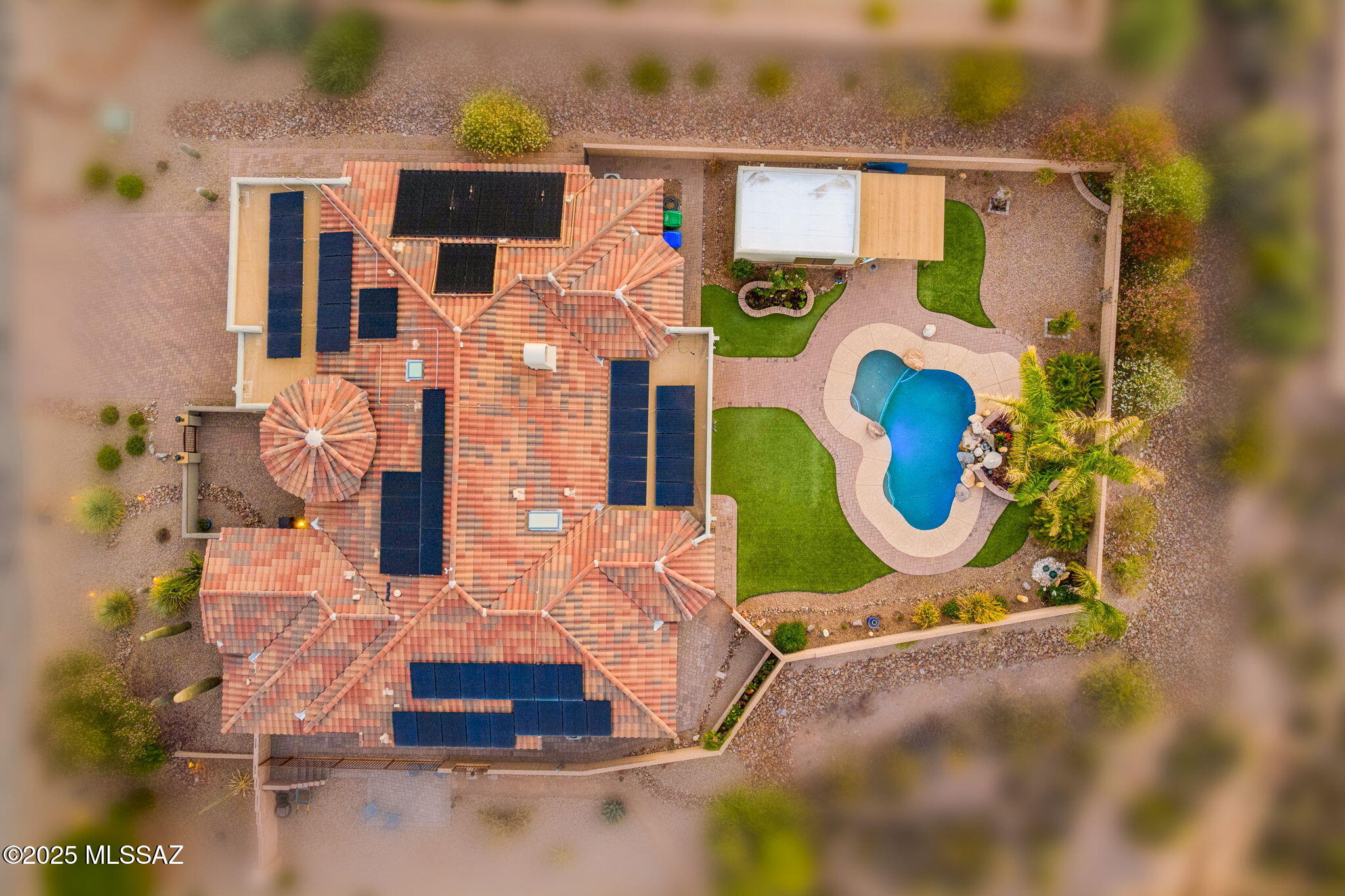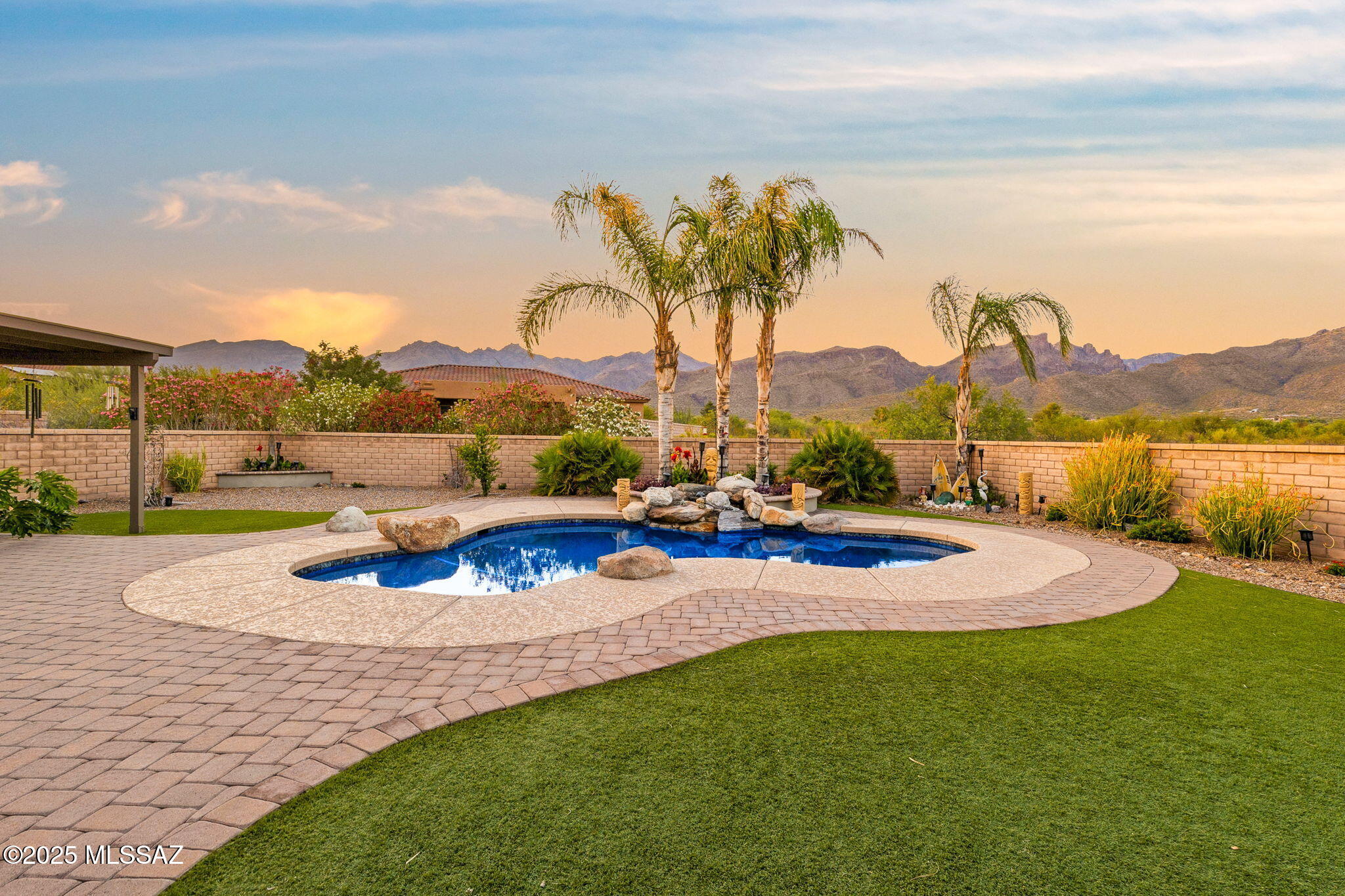 Sitting at the base of the Catalinas with expansive mountain views sits a meticulous residence with an incredible desert lifestyle at your fingertips. Tucked away at the end of a one-way street in the small enclave of Bear Canyon Overlook, the property abuts designated open space to the north and east. The setting is both stunning and quiet. With a 1/2 acre pie-shaped lot, outdoor space on both the north and east side of the parcel has been thoughtfully incorporated into the design. The property includes a 3,541 sq ft home with a 3-car garage and a separate 211 sq ft studio. Solid construction by well-respected local builder AF Sterling was enhanced with improvements made by the owners. Improvements & upgrades include; addition of the studio, a fully owned solar system with 49 panels, solar pool heat, epoxy flooring in the garage, overhead storage, a water softener, and RO drinking water system. With the latest GE cafe appliances, along with fresh exterior and interior paint completed in 2025, the space feels new. Throughout, high ceilings and large windows provide visual pathways to the gorgeous surrounding scenery. A split floor plan with 3 bedrooms, 3 1/2 baths, a separate office, and 2 living spaces, provides function and utility for modern life. The separate heated & cooled studio could have many uses, such as an office, creative space, workshop or gym.