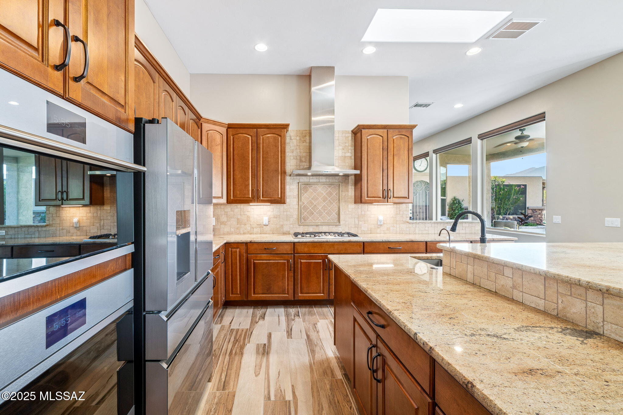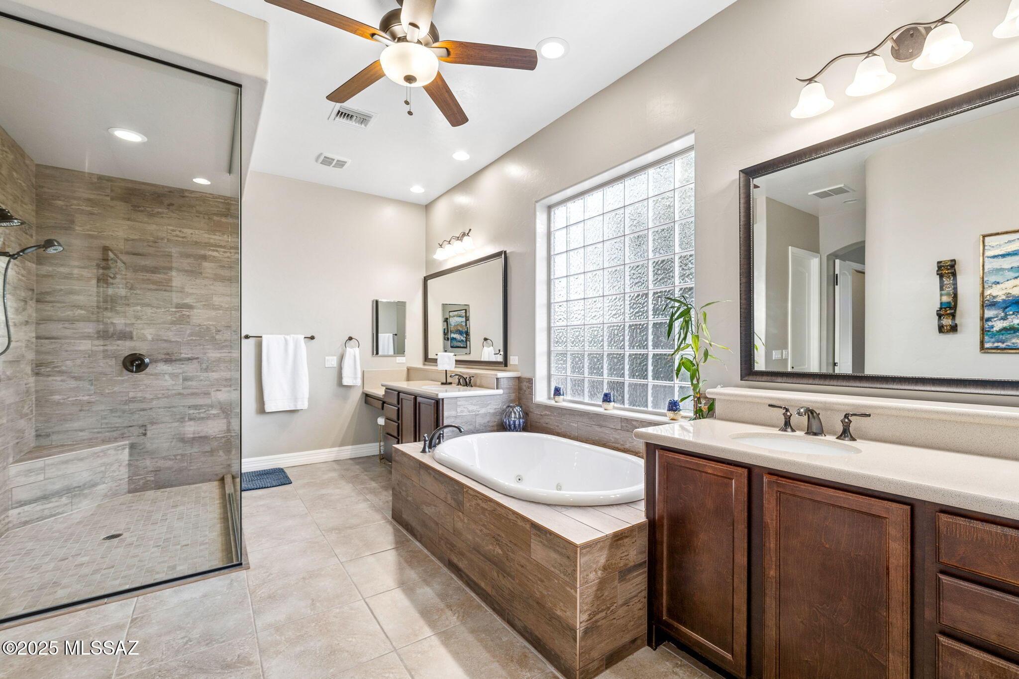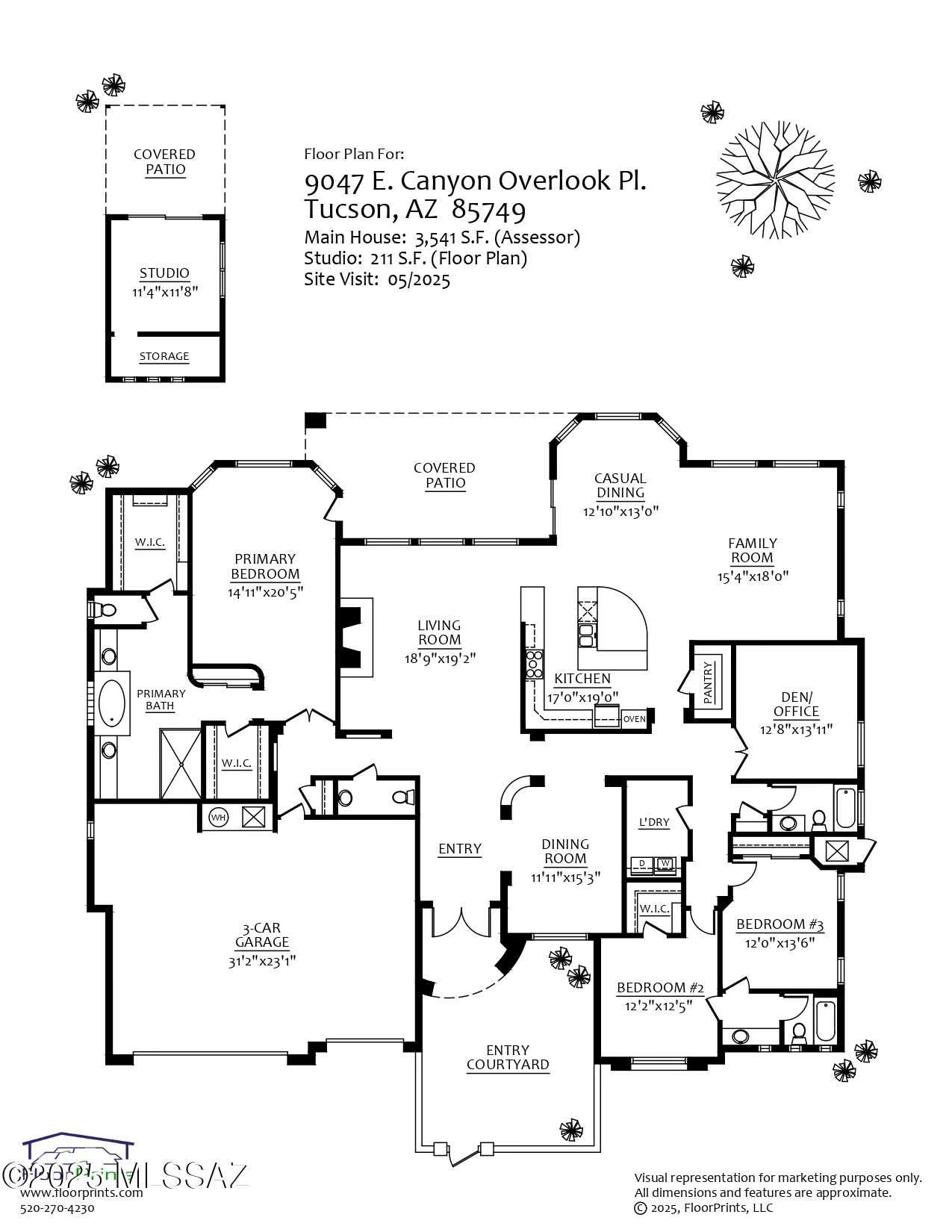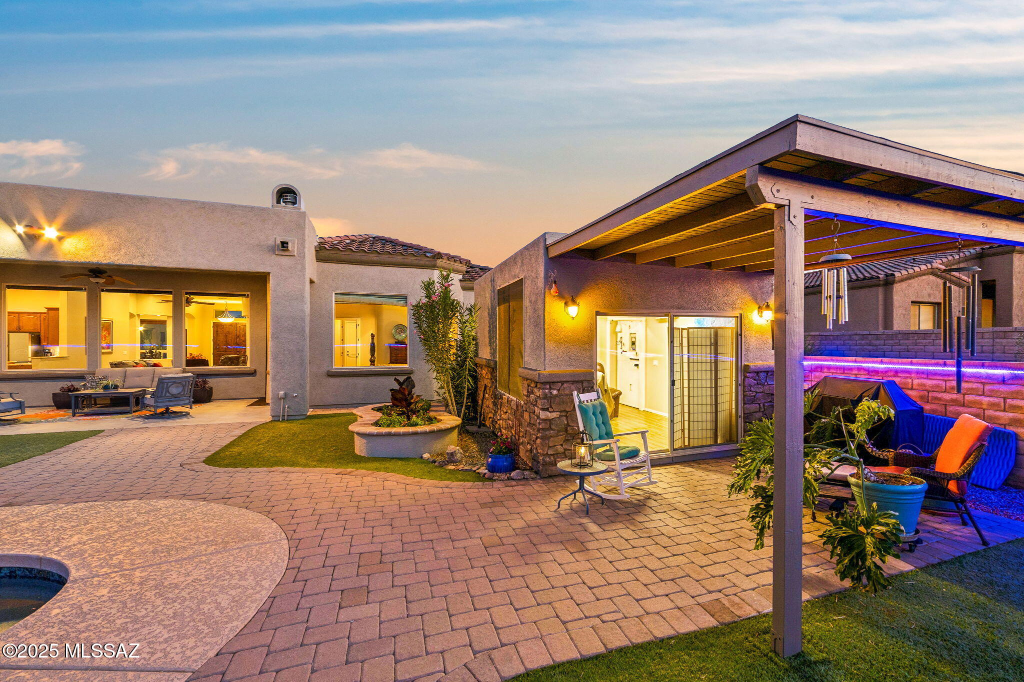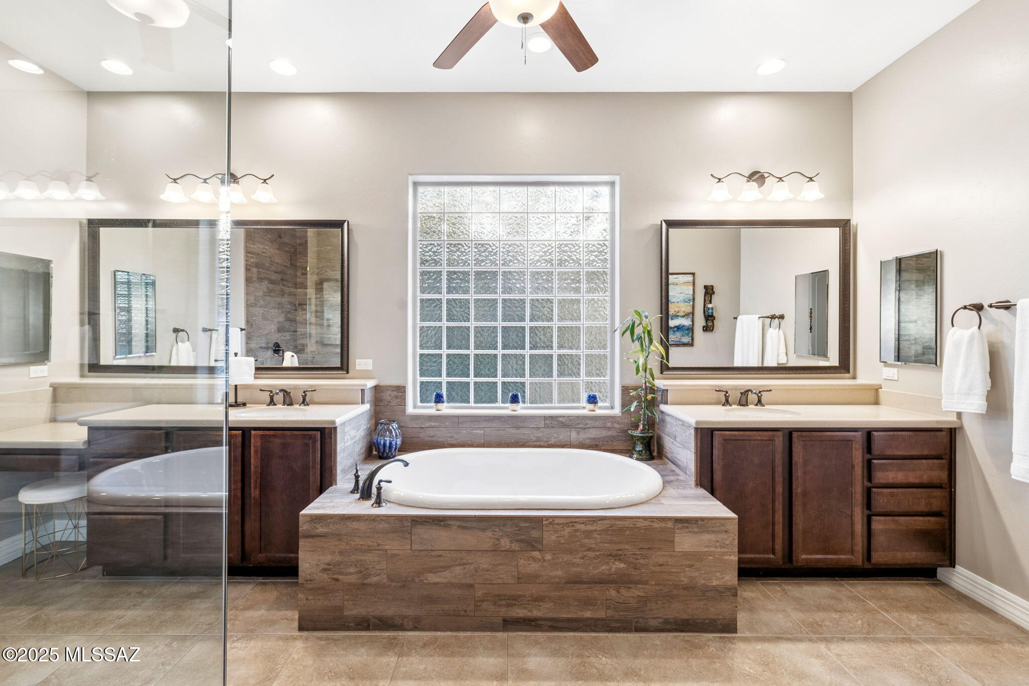 Sitting at the base of the Catalinas with expansive mountain views sits a meticulous residence with an incredible desert lifestyle at your fingertips. Tucked away at the end of a one-way street in the small enclave of Bear Canyon Overlook, the property abuts designated open space to the north and east. The setting is both stunning and quiet. With a 1/2 acre pie-shaped lot, outdoor space on both the north and east side of the parcel has been thoughtfully incorporated into the design. The property includes a 3,541 sq ft home with a 3-car garage and a separate 211 sq ft studio. Solid construction by well-respected local builder AF Sterling was enhanced with improvements made by the owners. Improvements & upgrades include; addition of the studio, a fully owned solar system with 49 panels, solar pool heat, epoxy flooring in the garage, overhead storage, a water softener, and RO drinking water system. With the latest GE cafe appliances, along with fresh exterior and interior paint completed in 2025, the space feels new. Throughout, high ceilings and large windows provide visual pathways to the gorgeous surrounding scenery. A split floor plan with 3 bedrooms, 3 1/2 baths, a separate office, and 2 living spaces, provides function and utility for modern life. The separate heated & cooled studio could have many uses, such as an office, creative space, workshop or gym.
