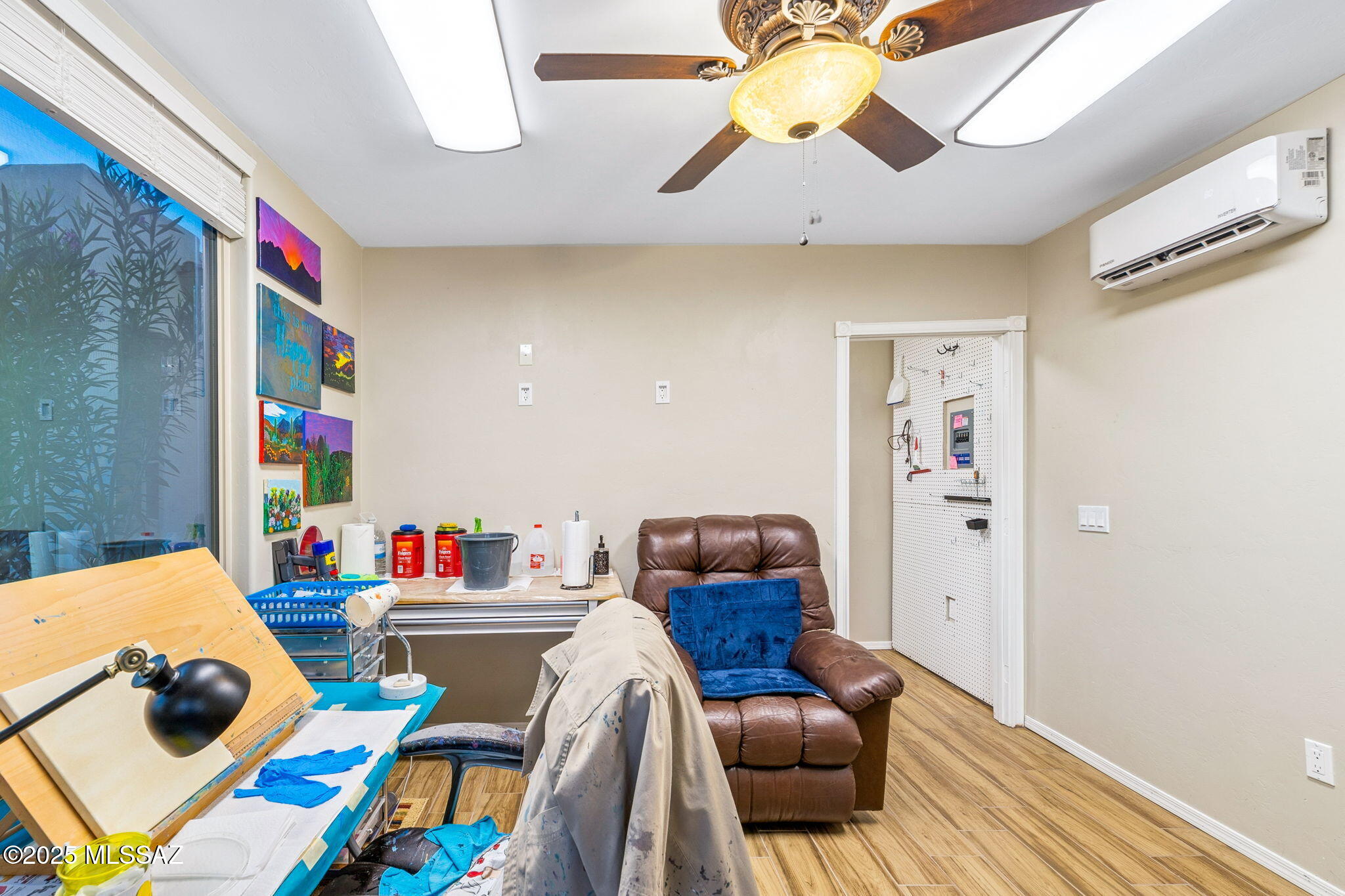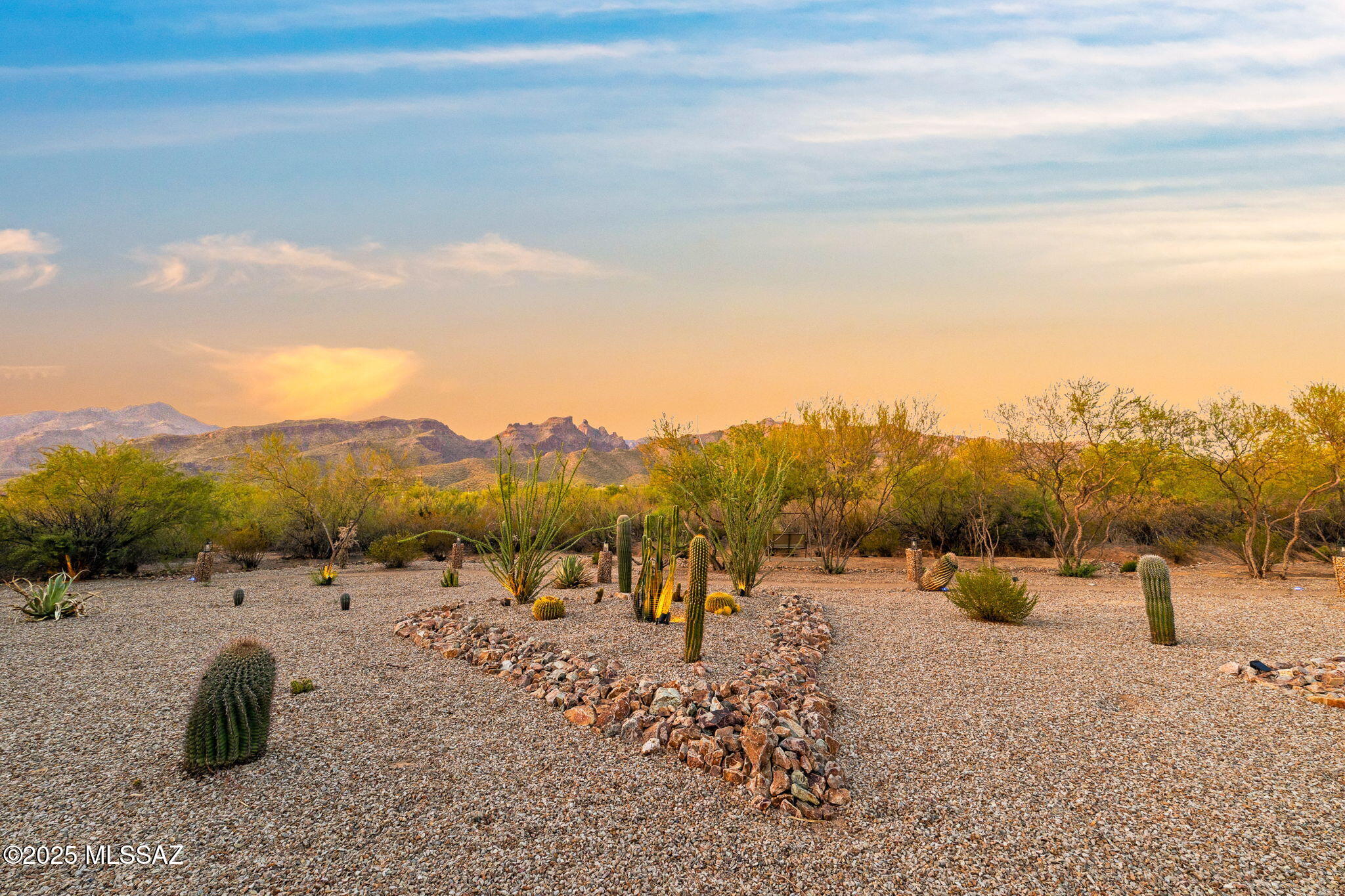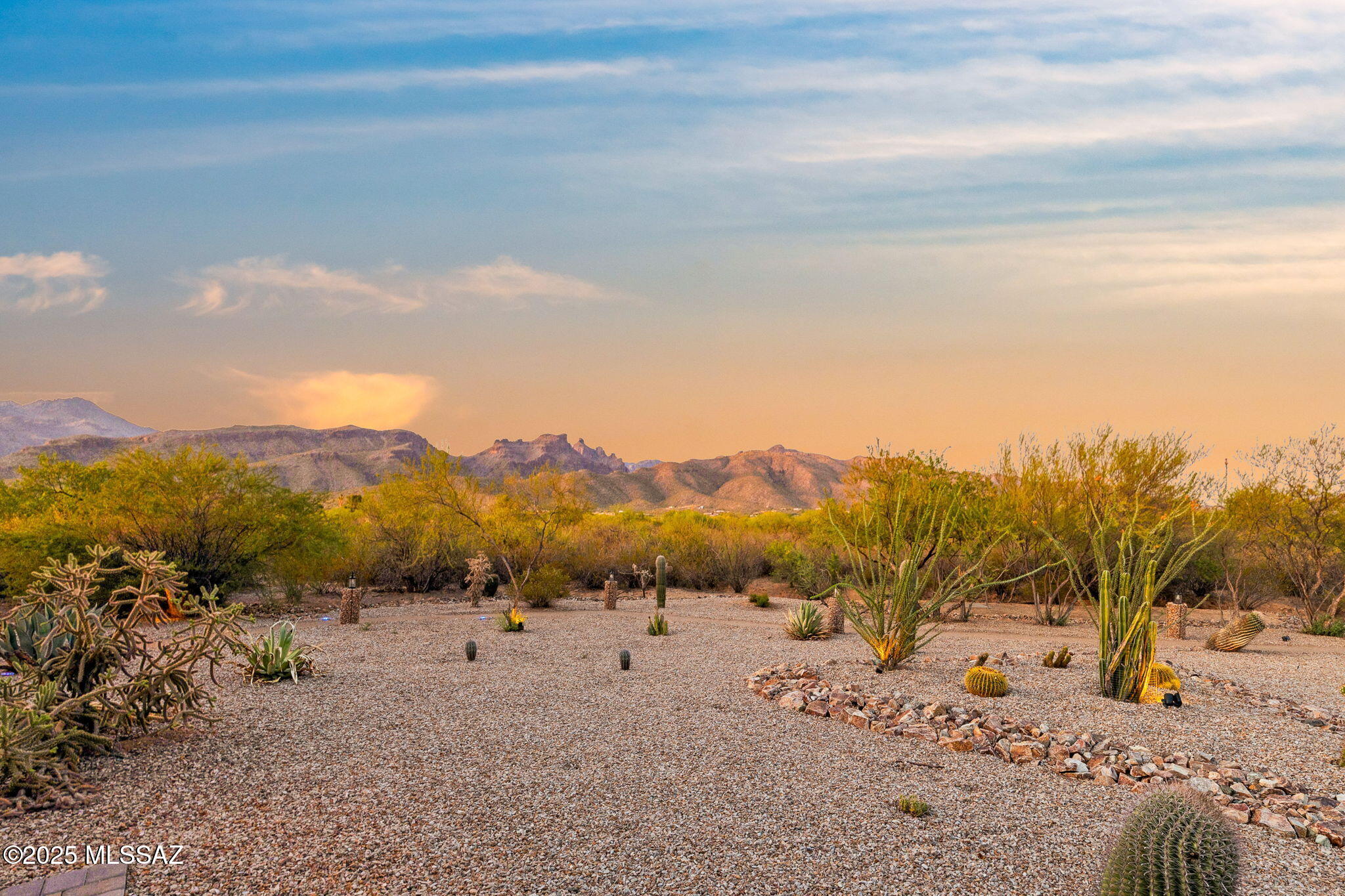 Stepping outside into the backyard the magnificent views are even more compelling, with open exposure to both the Catalina & Rincon Mountains. Here, you will find a spacious masonry fenced yard (well suited for pets), a swimming pool and access to the studio. The covered patio faces north, thus enjoying ample shade. Stepping through a gate to the side yard, a desert garden with winding pathways awaits. With no neighbor to the east, this is a tranquil retreat.