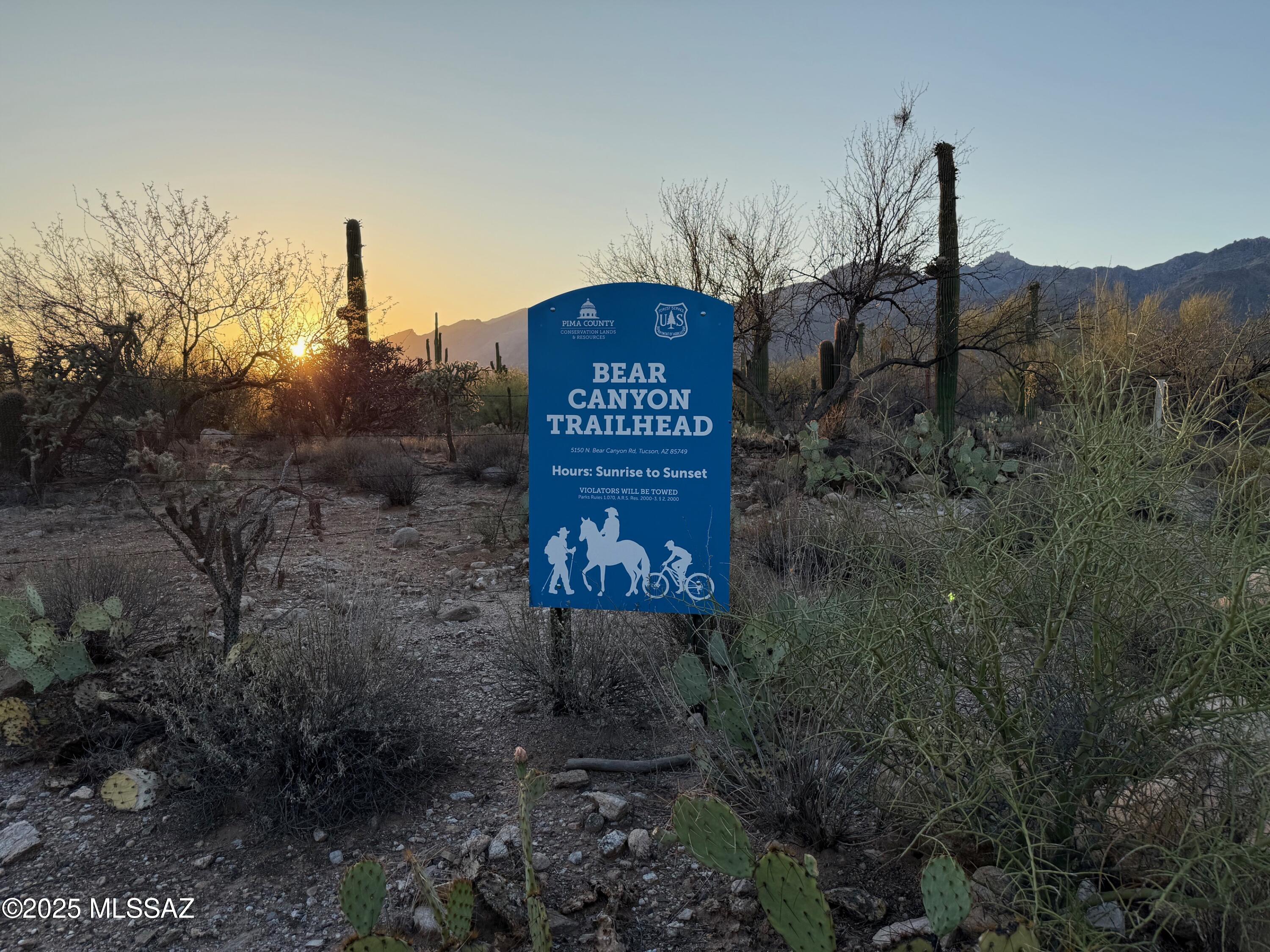 The location is incredible. Just down the street, there is private access to the renowned Sabino Canyon from the Bear Canyon Trailhead, offering majestic scenery and a great variety of trails. Access to Mt. Lemmon highway is found in under 5 minutes, making it easy for residents to enjoy all that the mountain has to offer. Golf at Arizona National is right around the corner, as are both the high school and elementary school. While it feels like you are away from it all, grocery shopping, cafes and conveniences are only 5 minutes away. Traveling to many employers and city amenities ranges from 15 minutes to 30 minutes.