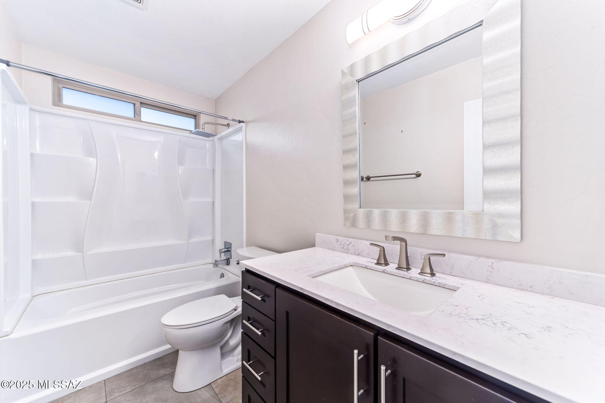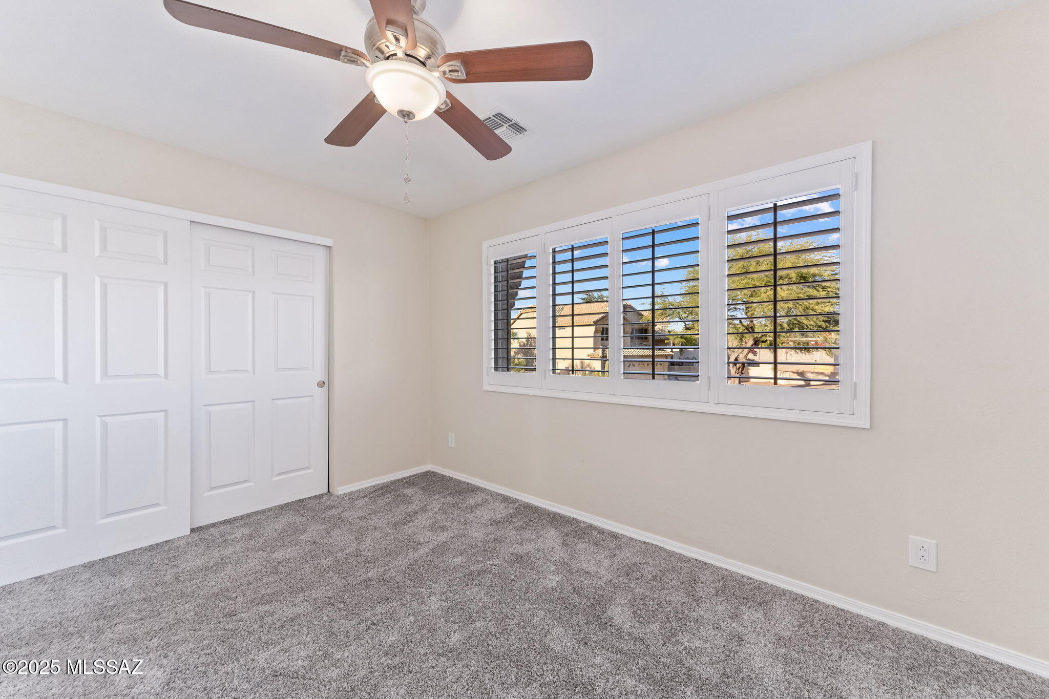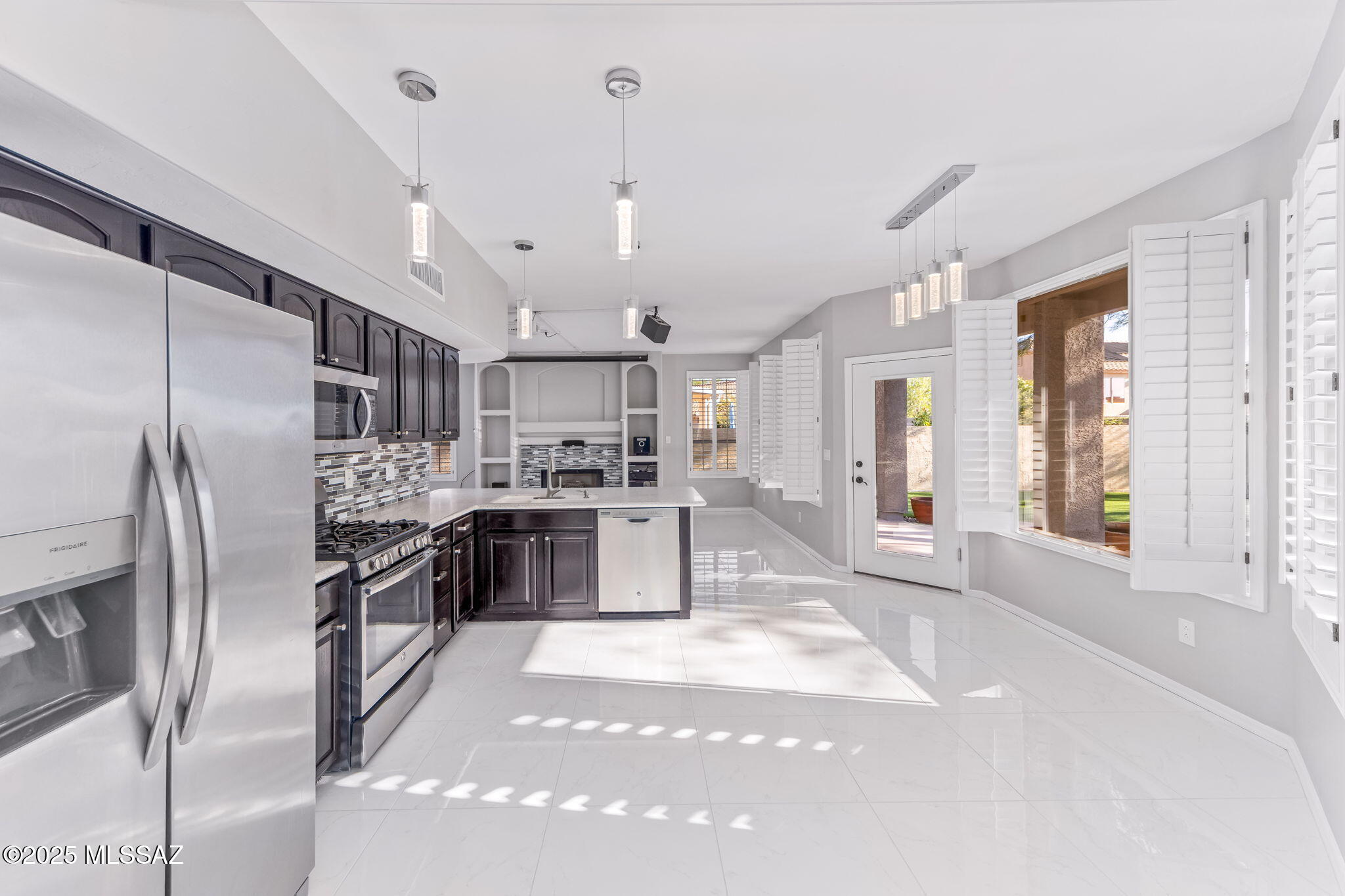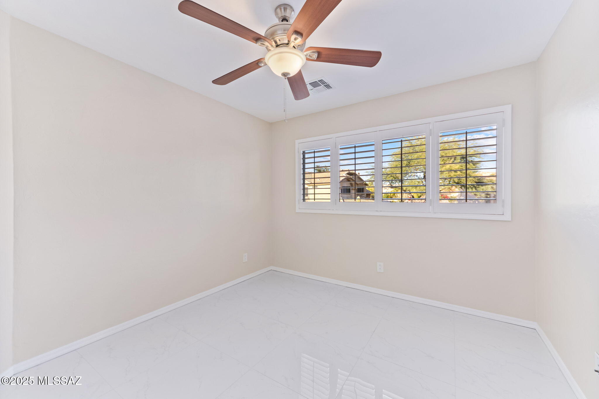 Tucked away on an end lot in a cul de sac with the convenience and amenities of Oro Valley at your fingertips - welcome to 2025 W Golden Rose Place. With open space behind and a magnificent backyard, outdoor living is at the forefront of this residential experience. Layer in the enjoyment of a quiet park next door that functions like an extension of this lot. Recently renovated, the property features 3 bedrooms, 2 1/2 baths, plus a den, spread over 2,451 sq ft. Oversized windows create light filled spaces, complemented by a clean and contemporary palette. A few of the upgraded features include large format porcelain tiles, luxury lighting, and a custom primary closet. Enjoy seeing greenery out the windows and Catalina Mountain views from the upper deck off the primary suite. The backyard is a desert sanctuary with excellent privacy and amenities. With a large swimming pool, in ground spa, expansive turf area, and plenty of areas for seating, there are many ways to enjoy the space. With no rear neighbors, open views to the green space behind showcase colorful sunsets.