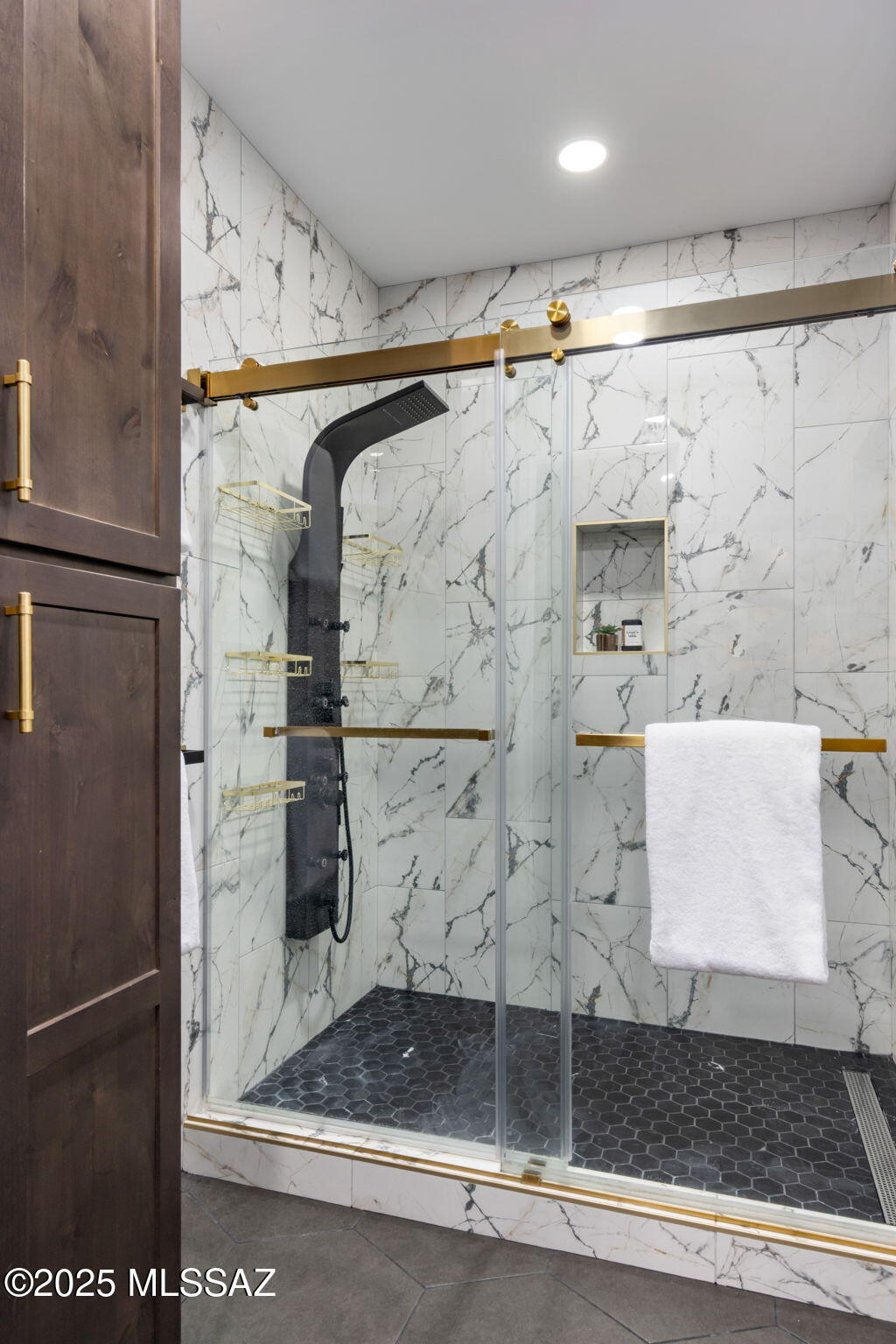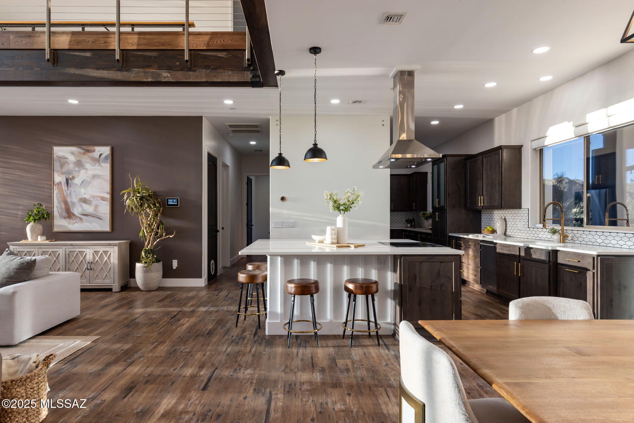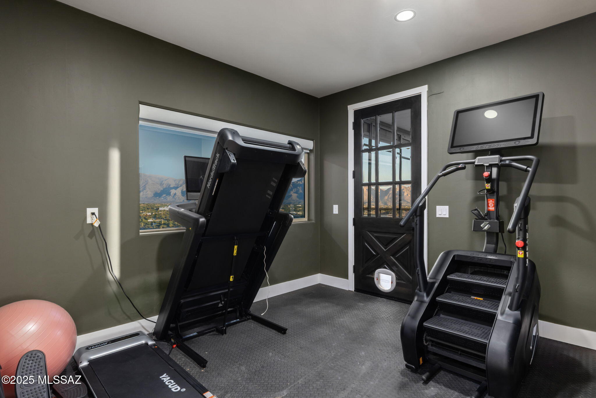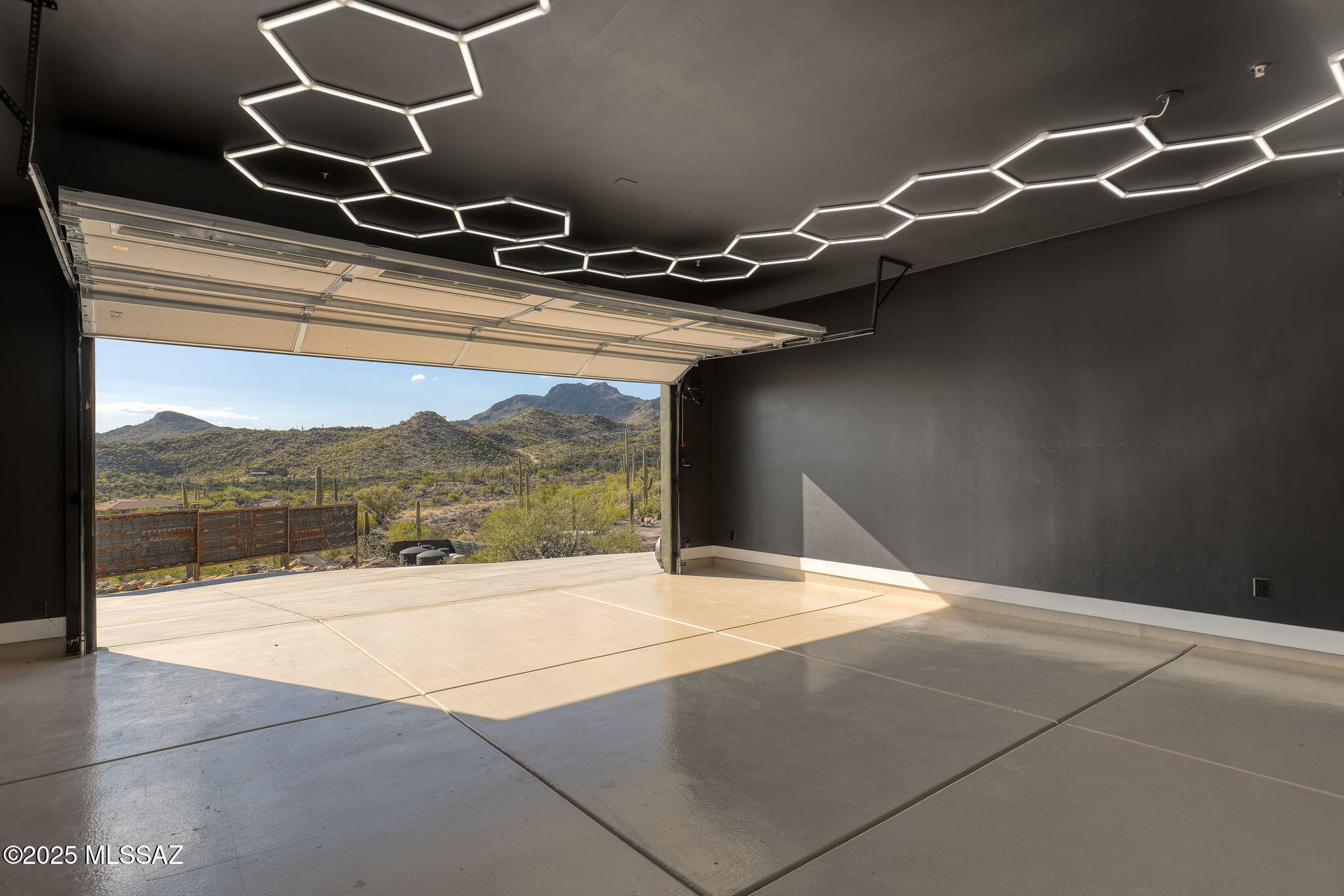 Experience life in the Sonoran Desert surrounded by panoramic vistas of multiple mountain ranges, sunsets and open spaces. 14192 N Gecko Canyon Trail offers a turn-key residence in a relaxed setting with no HOA. Here, on this elevated 5-acre parcel, the air at 3,000 ft is a bit cooler and the views are expansive. While this rural setting welcomes chickens and horses, it takes less than 15 minutes to access a large grocery store and under 20 minutes to reach Oro Valley Hospital & medical complex. Entering through a private road and electric entry gate, there is a feeling of seclusion and calm. Completed in 2024, the property is fresh, light, bright and ready to enjoy. A thoughtful 3,592 sq ft floor plan includes a lower level with large gathering areas, 2 bedrooms and a full bath, while the upper level includes dual primary suites and a pocket gym. Dramatic touches include double height spaces, a floor to ceiling stone clad fireplace and oversized windows with electric custom blinds. Functional and durable materials include LVP floors, quartz counters and a metal roof system with spray foam insulation.