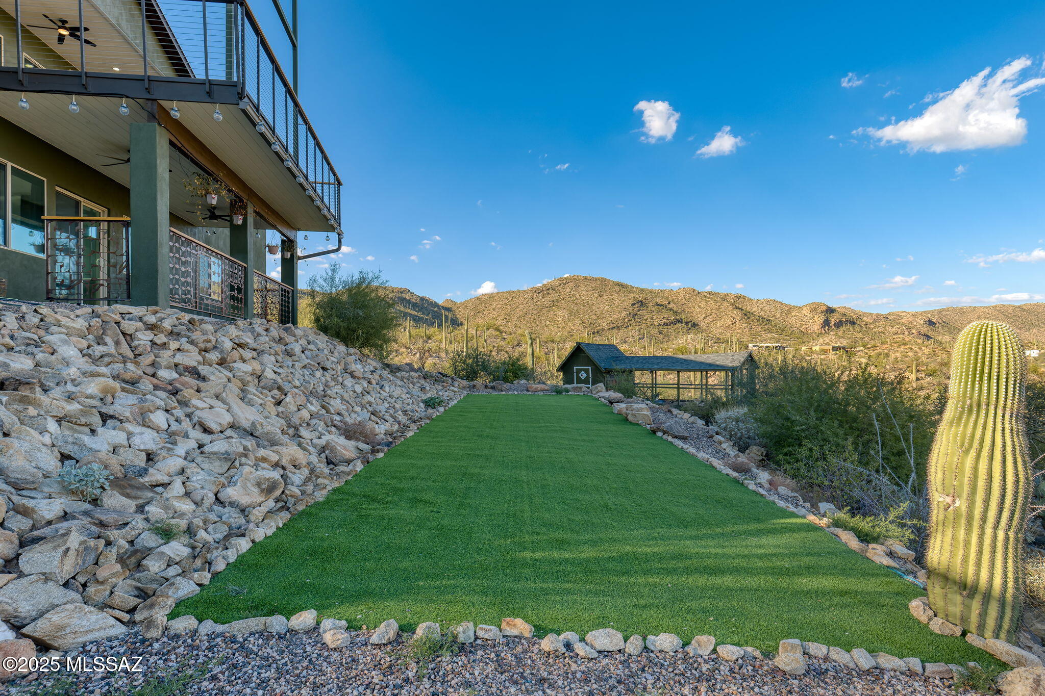 Outdoor living is abundant and takes full advantage of the surrounding beauty. The generous eastern facing upper deck and lower patio provide space for outdoor dining and lounging. Sitting lower, a large turf area abuts the open desert. Ample space is available to add a swimming pool or additional structures. The parcel is zoned for horses and residents could ride from the property.